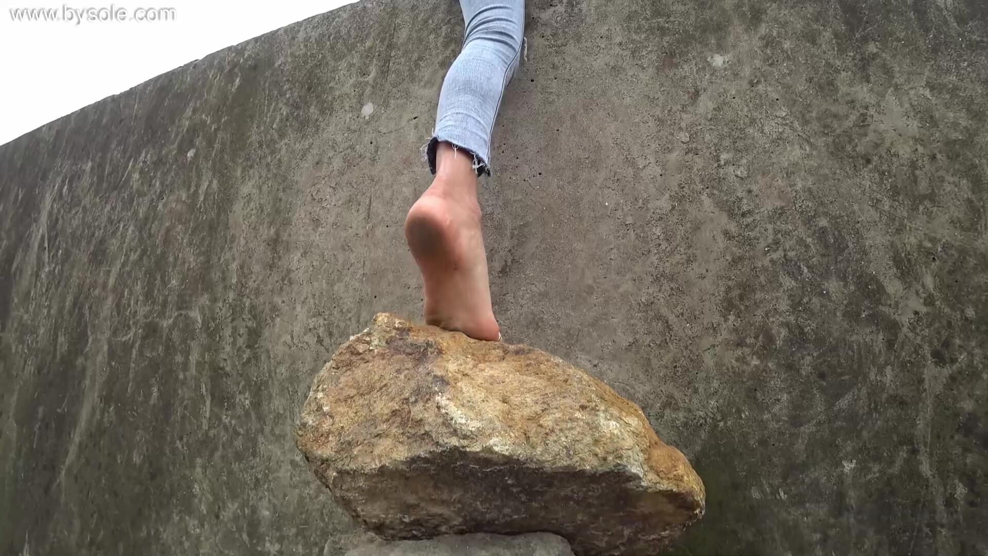 菲菲赤脚在海堤捉螃蟹,很兴奋。共拍摄视频16分钟,供赤脚运动爱好者参考学习。