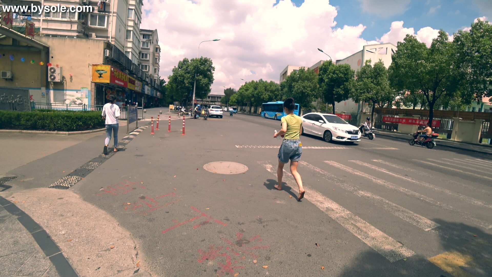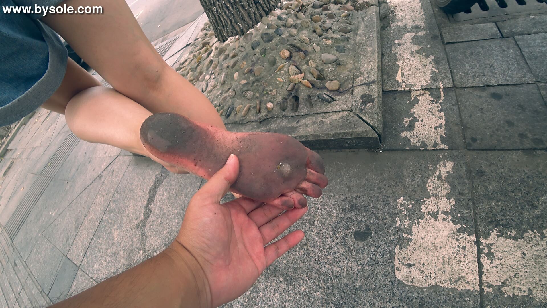 姗姗(珊珊)在城中村附近办事,便赤脚走了起来,随着太阳越来越高,地面也越来越烫,走的也越来越远,找不到回去的路了,只能当迷宫走!由于鞋子没在身边,姗姗(珊珊)的脚被烫的很痛,走路一瘸一拐,地面碎石子也多,跑起来脚更痛。姗姗(珊珊)的脚热的出了很多汗,脚底又黑又红还带着汗水。夏天的城市地面很烫,各位赤脚爱好者请谨慎出行,注意安全!共拍摄视频13分钟,供赤脚运动爱好者参考学习。