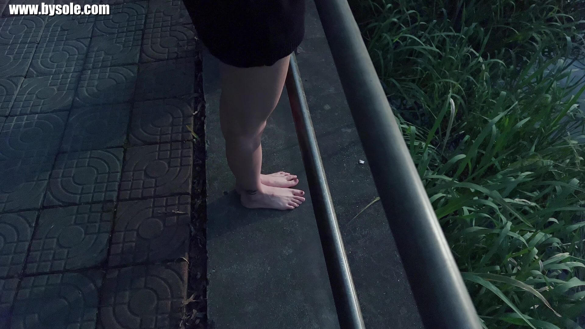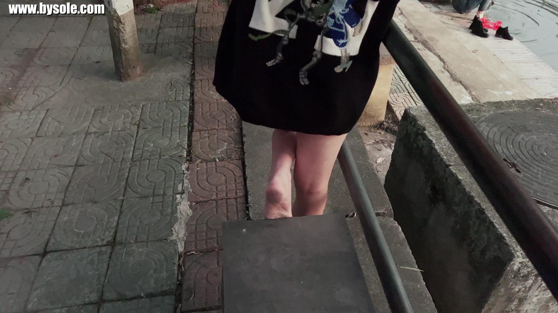 发现生活中的玉足,分享户外赤脚街拍