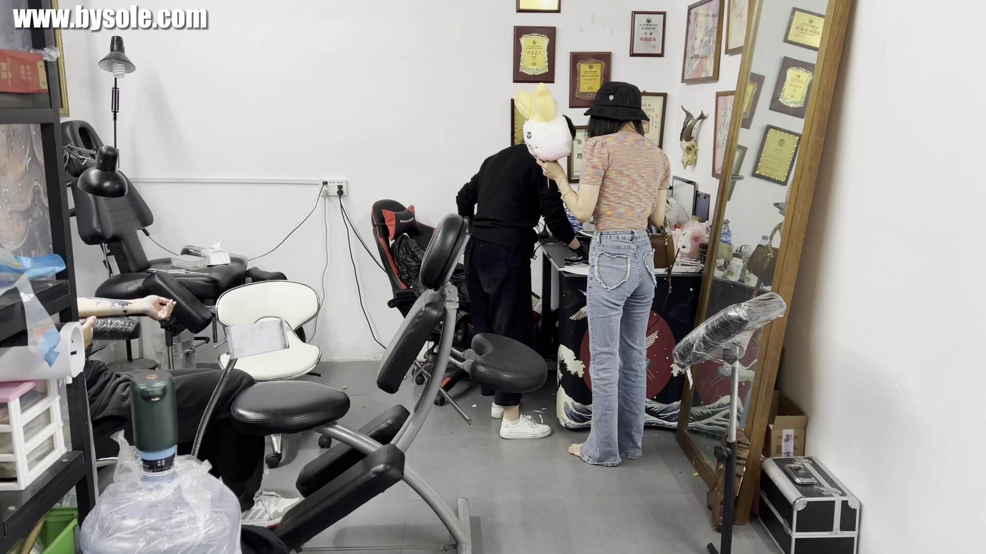 菲菲晚上赤脚出门散步,心血来潮,想去美甲店做个脚趾甲。菲菲散步往美甲店走去,路过纹身店看了看,咨询了一些事情,然后去了美甲店,选择指甲颜色,便上了二楼坐下,准备开始做美甲了。共拍摄视频13分钟,供赤脚运动爱好者参考学习。