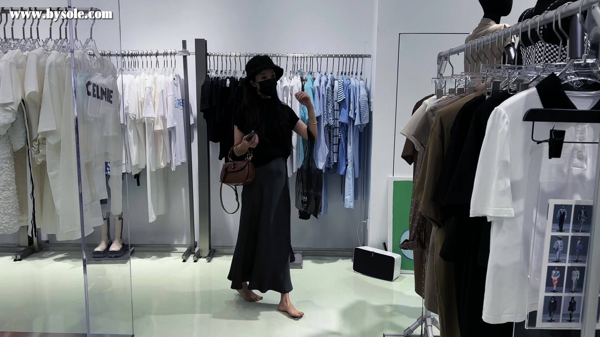 菲菲赤脚逛商场。继续逛了一会儿,就出了商场在街上走了起来,外面太阳没那么烈了,地面依然很烫,菲菲说对比烟头,地面甚至更烫,作为赤脚爱好者,她觉得很刺激,这是赤脚的生活态度。共拍摄视频18分钟,供赤脚运动爱好者参考学习。