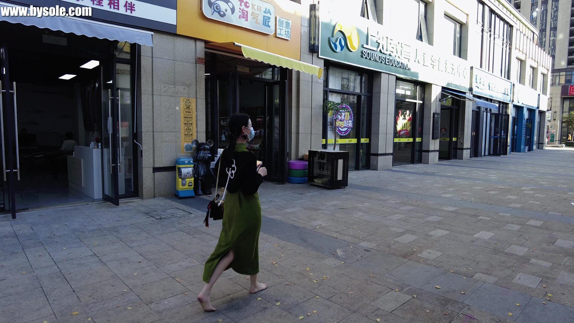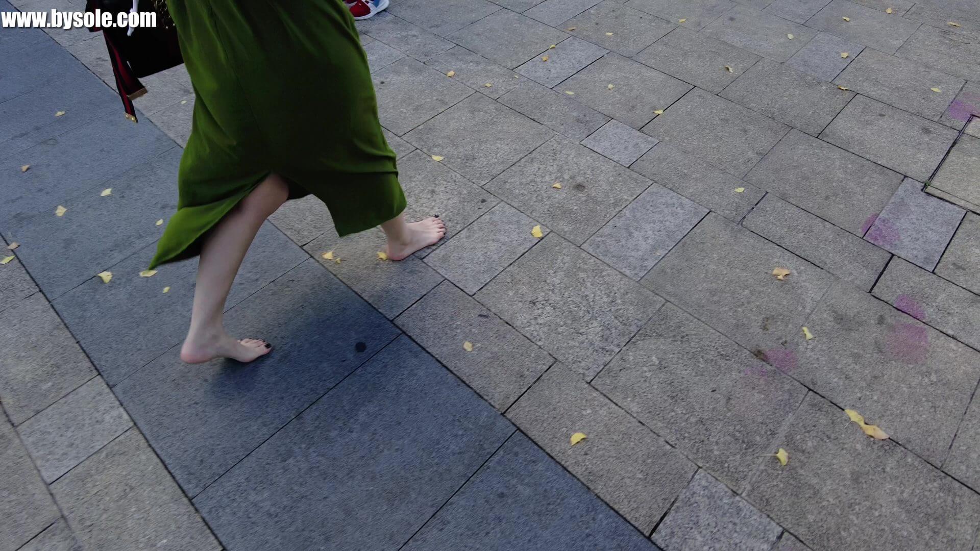绵绵在广场赤脚逛街。共拍摄视频11分钟,供赤脚运动爱好者参考学习。
