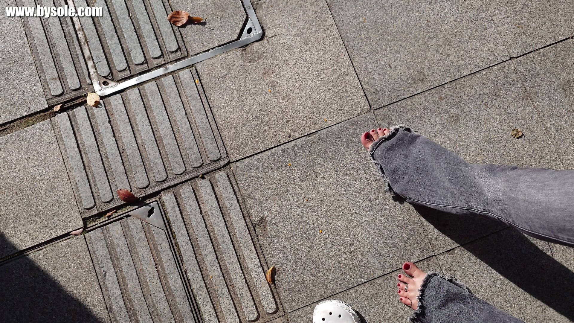 菲菲嵊州逛街,特意选择了赤脚行走,她想真正地融入这片土地,感受它的温度。共拍摄视频9分钟,供赤脚运动爱好者参考学习。