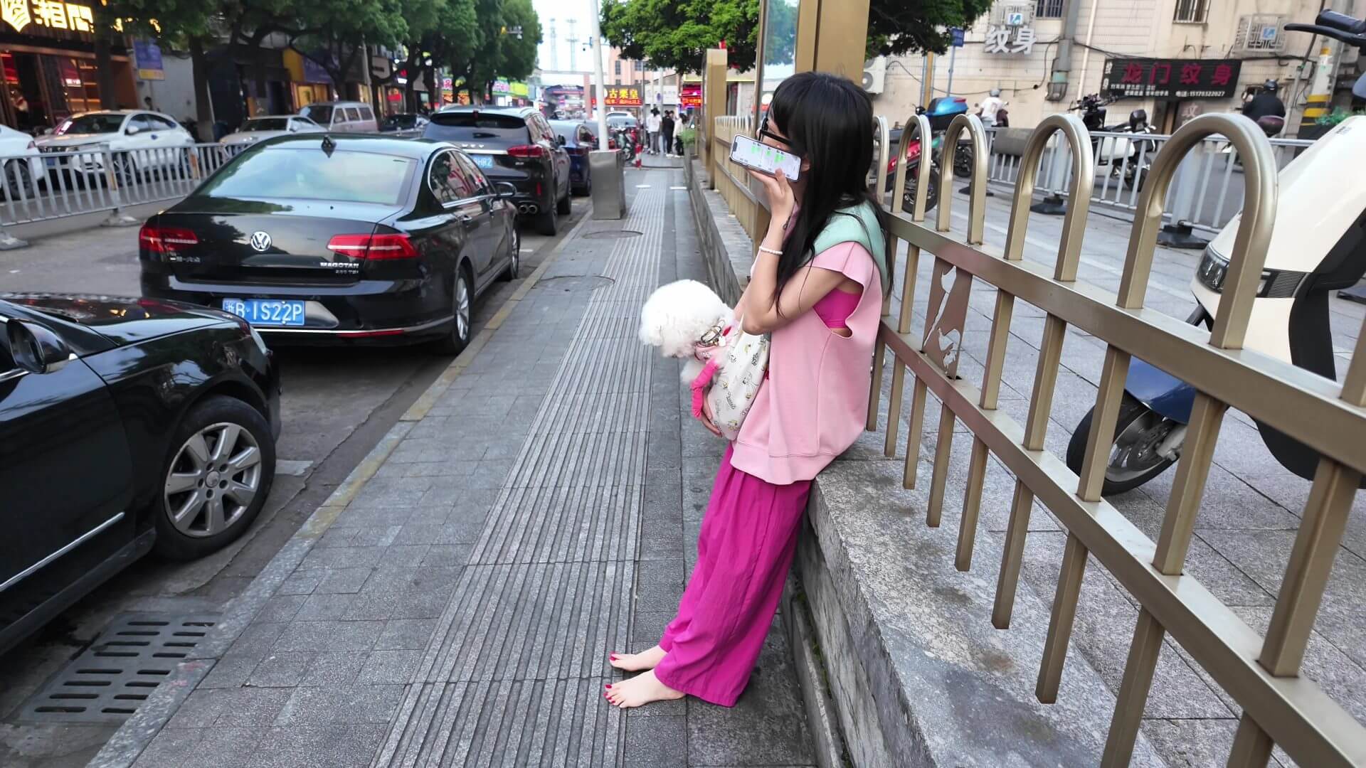 黄昏,果果带着爱犬赤脚逛街。共拍摄视频15分钟,供赤脚运动爱好者参考学习。