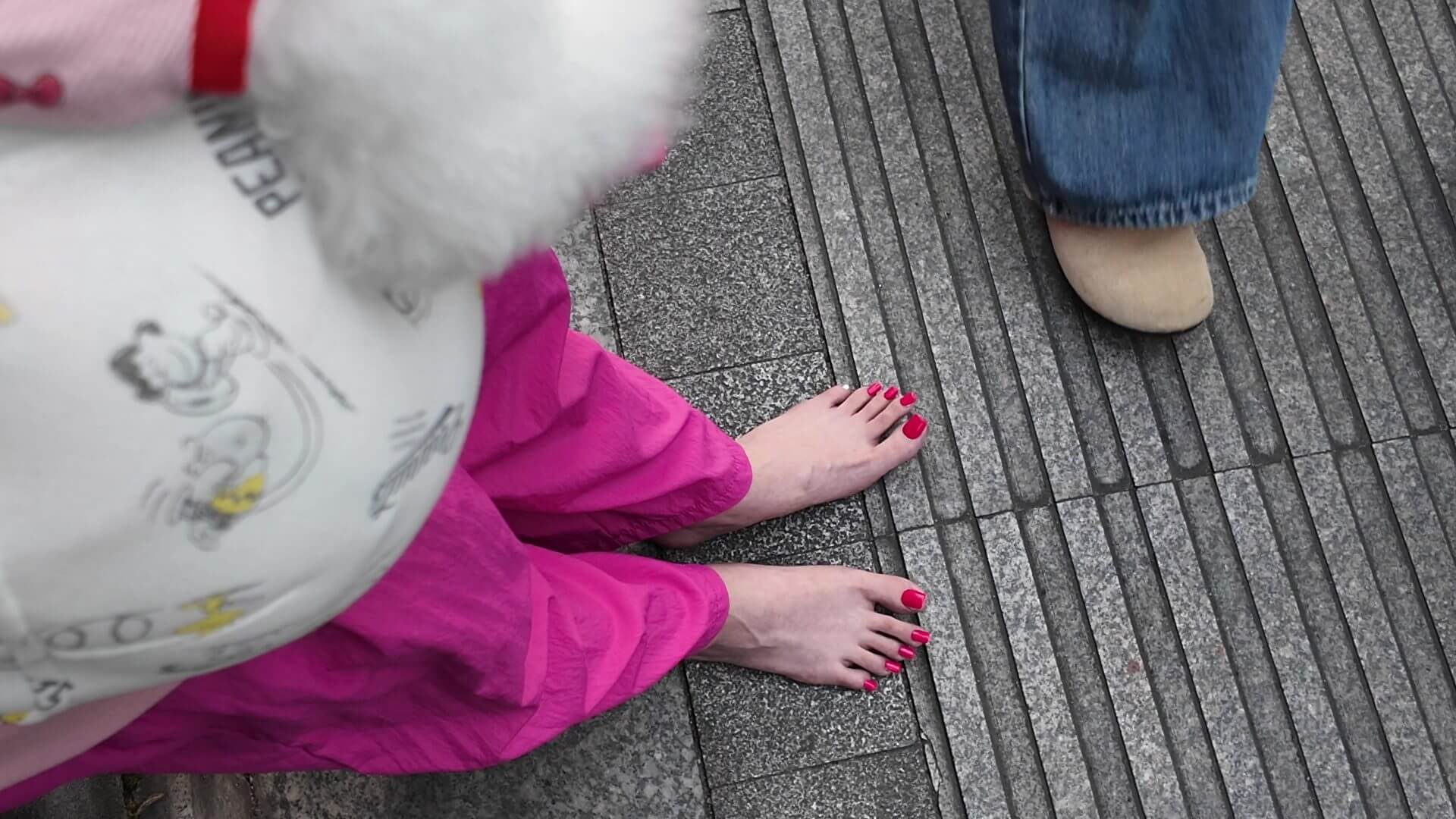 发现生活中的玉足,分享户外赤脚街拍