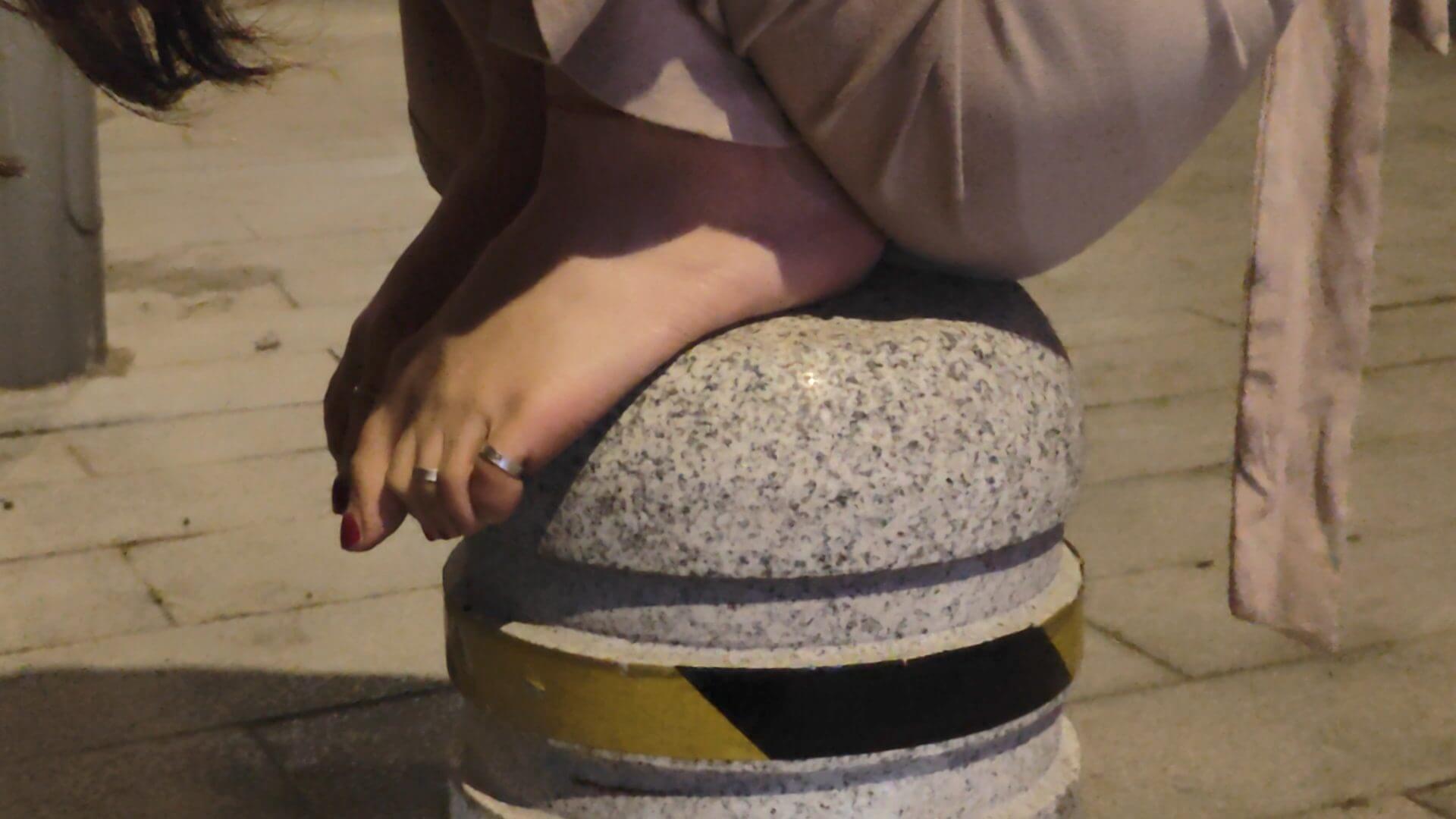 发现生活中的玉足,分享户外赤脚街拍