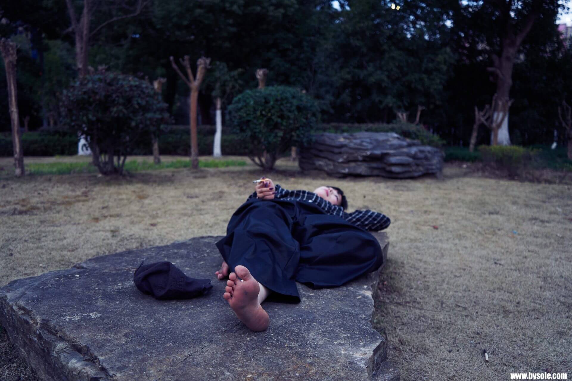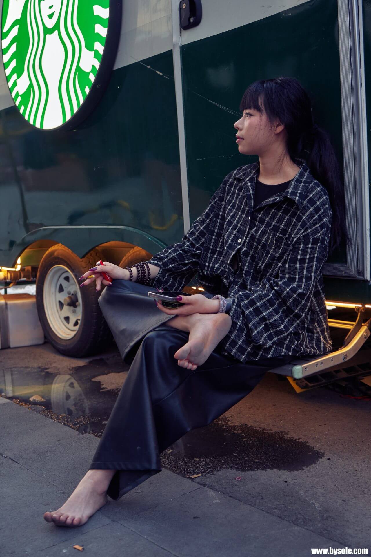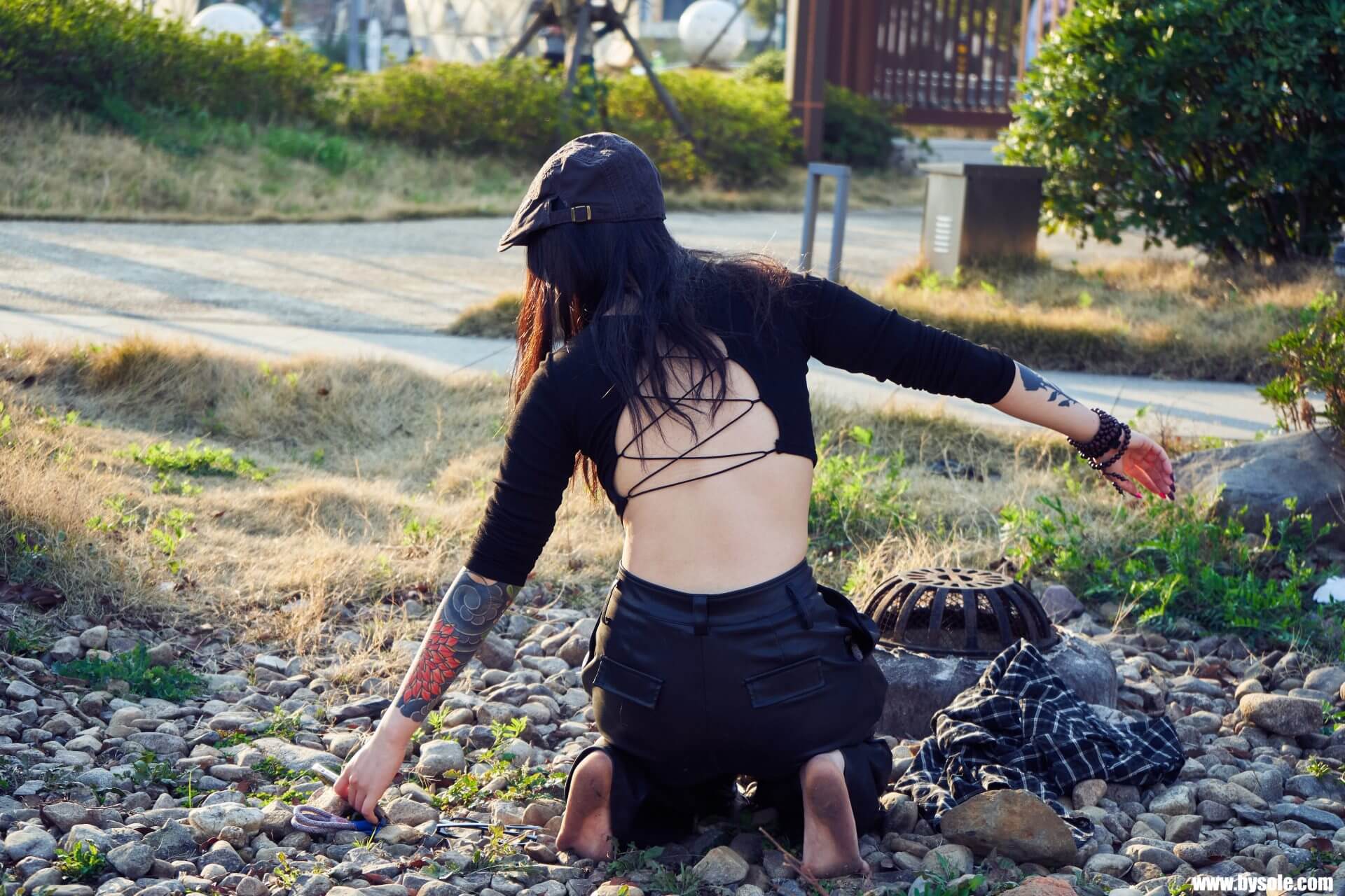 拍照片的时候,姜老师让我在一块大石头上摆 Pose。我先是站着,脚尖点地,皮裤配上赤脚,感觉自己有点酷酷的。然后我又坐下来,把脚伸直,故意露出脏兮兮的脚底。平时我爱看其他女孩子的脚丫,喜欢那种骨感和脚背上的筋,今天看着自己的脚,突然觉得也挺好看。阳光打在脚上,暖洋洋的,我忍不住用手摸了摸脚背,感受着皮肤的温度。