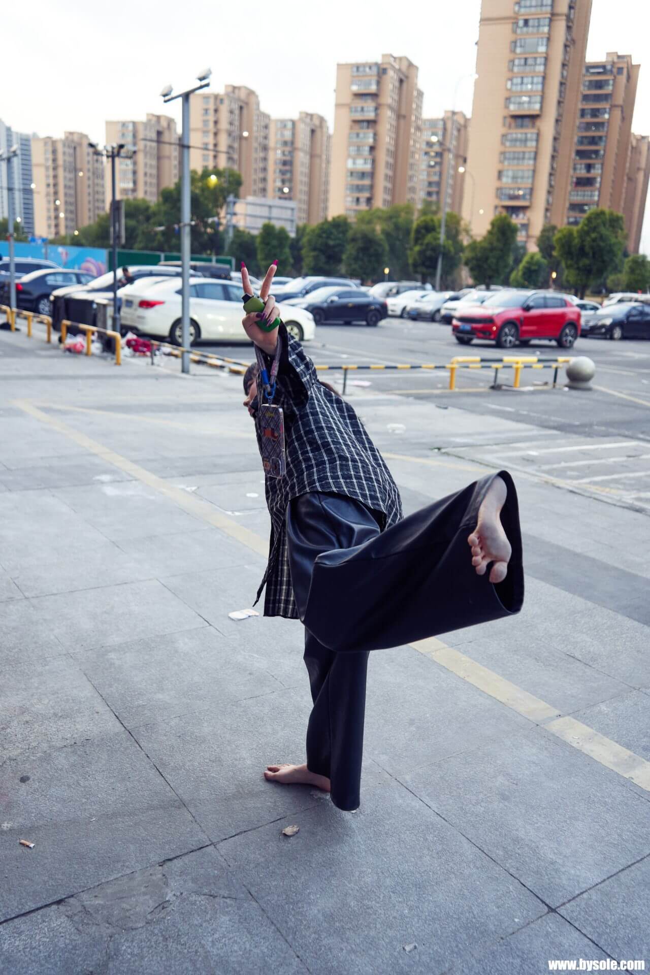 中午,我穿着黑色的宽松皮裤,脚上啥也没穿,直接把鞋子扔在姜老师的车后座上。他瞅了我一眼,笑得一脸贼:“三水,你这是真敢啊!”我翻了个白眼,假装不在乎:“不就是光脚吗?多大点事儿!”可刚踩上马路,心跳还是有点加速。初春的地面还有点凉,路面的纹理硌得脚底有些痒痒的,但我喜欢这种真实的触感。过马路的时候,我故意放慢了步子,感受着斑马线的凹凸和地面的颗粒。路边的行人偶尔会瞄我一眼,但我发现,他们也就是好奇一瞥,然后就忙自己的去了。嘿,担心啥?看来是我多虑了。