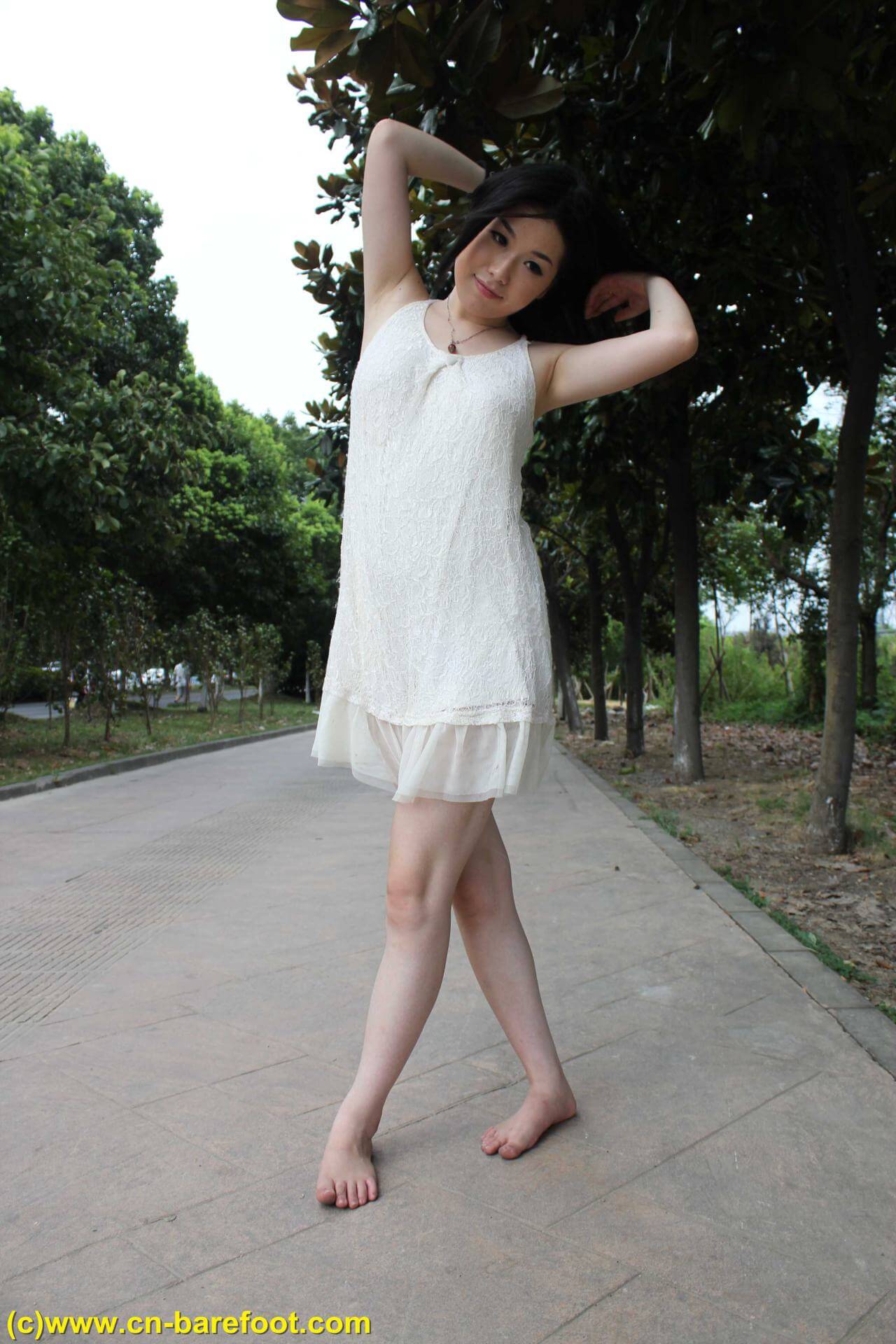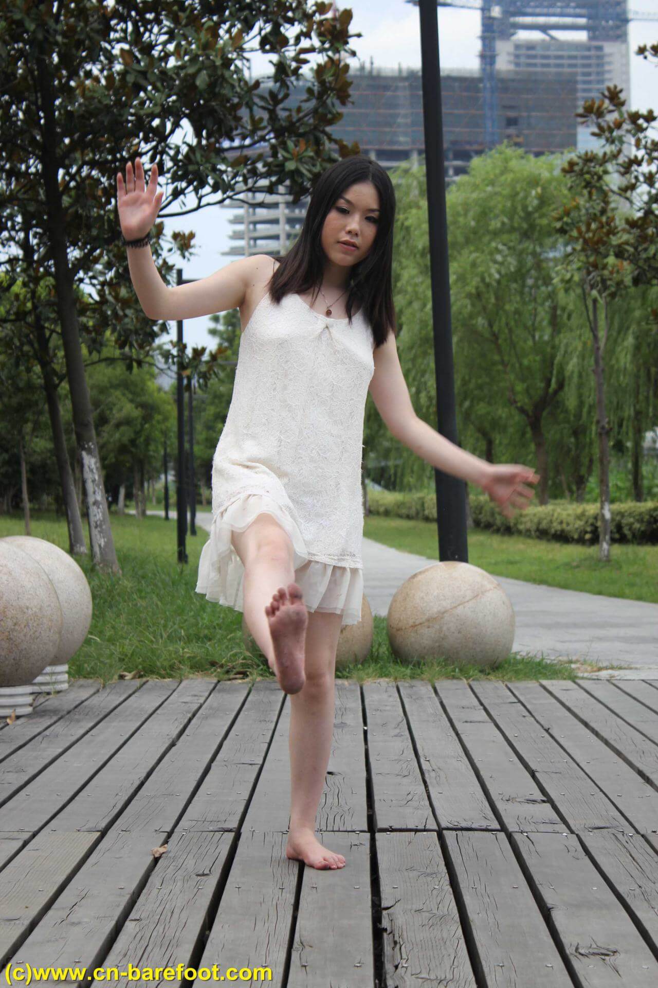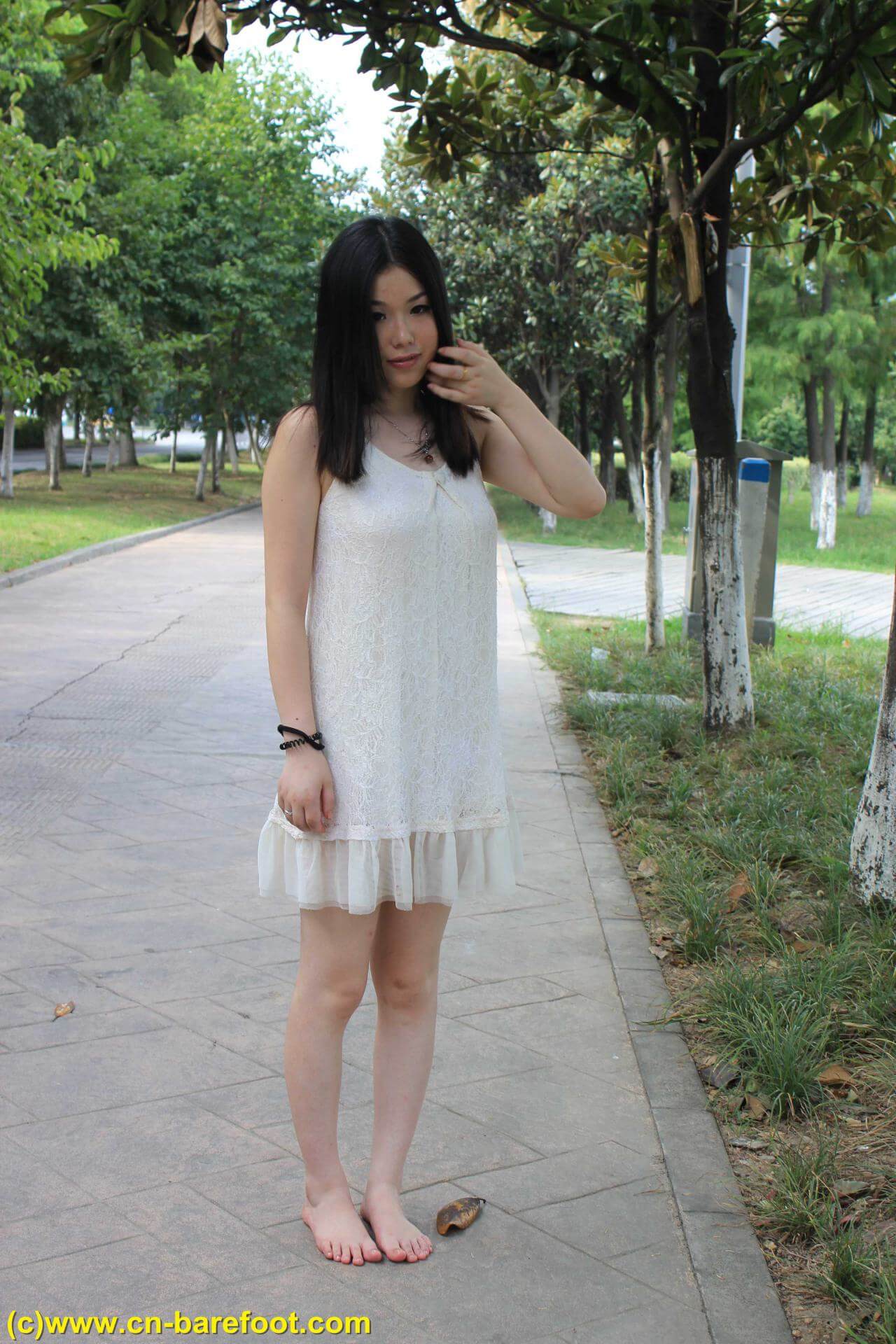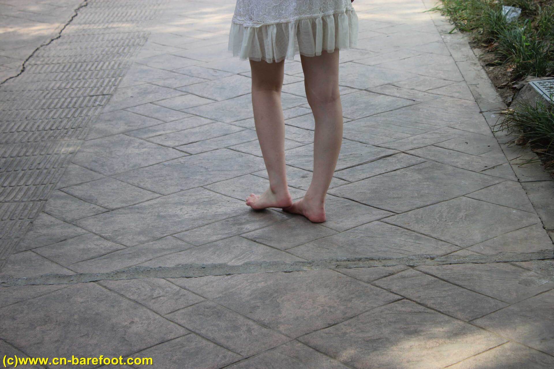 莹莹在夏日的阳光下赤脚行走,脚底与地面接触的瞬间带来阵阵凉意,让她在炎热中找到了一丝清凉的慰藉。