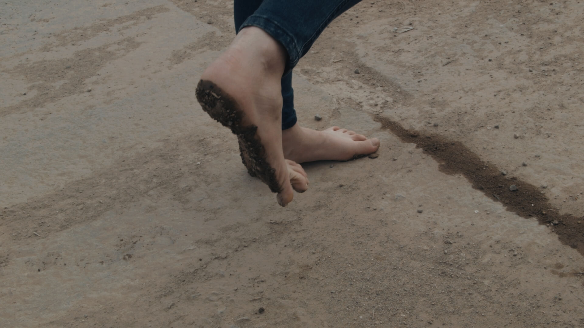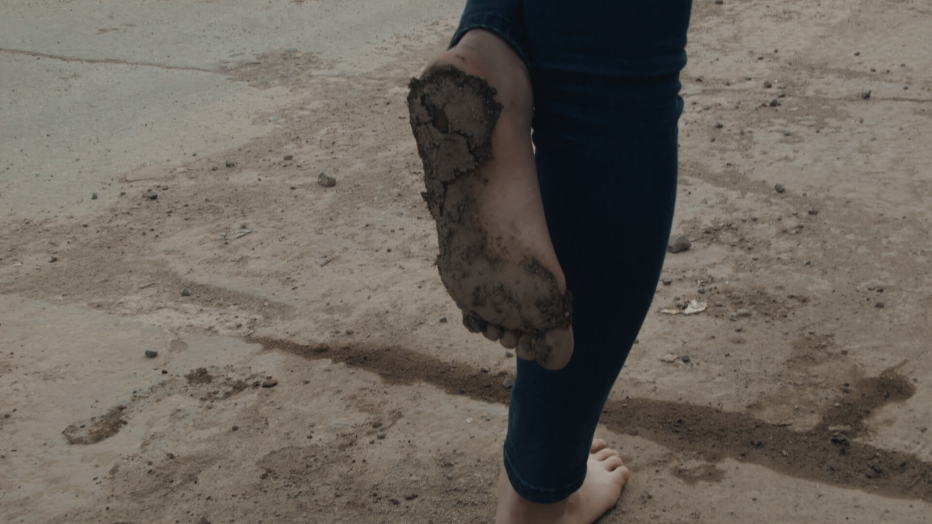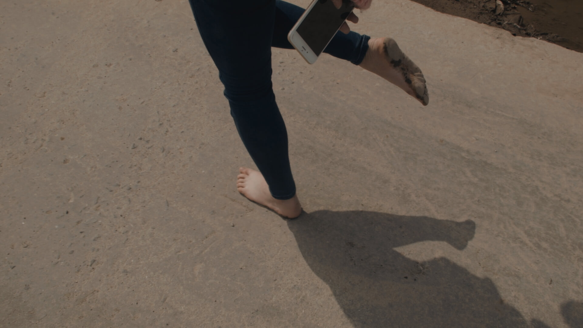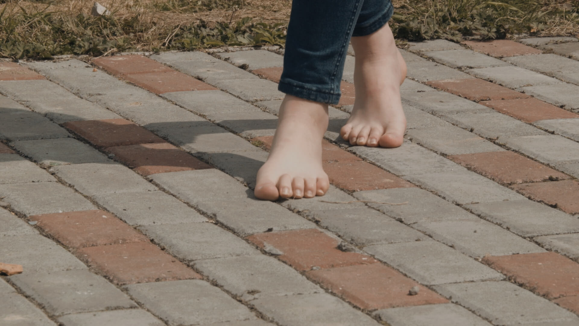 萌萌还是很自然,没有太过紧张,我就给她安排了“踩泥”、“走碎砖块”等任务,她完成的不错,很有赤脚天分。而且她的脚趾很漂亮,尤其是踩在地上动的时候。