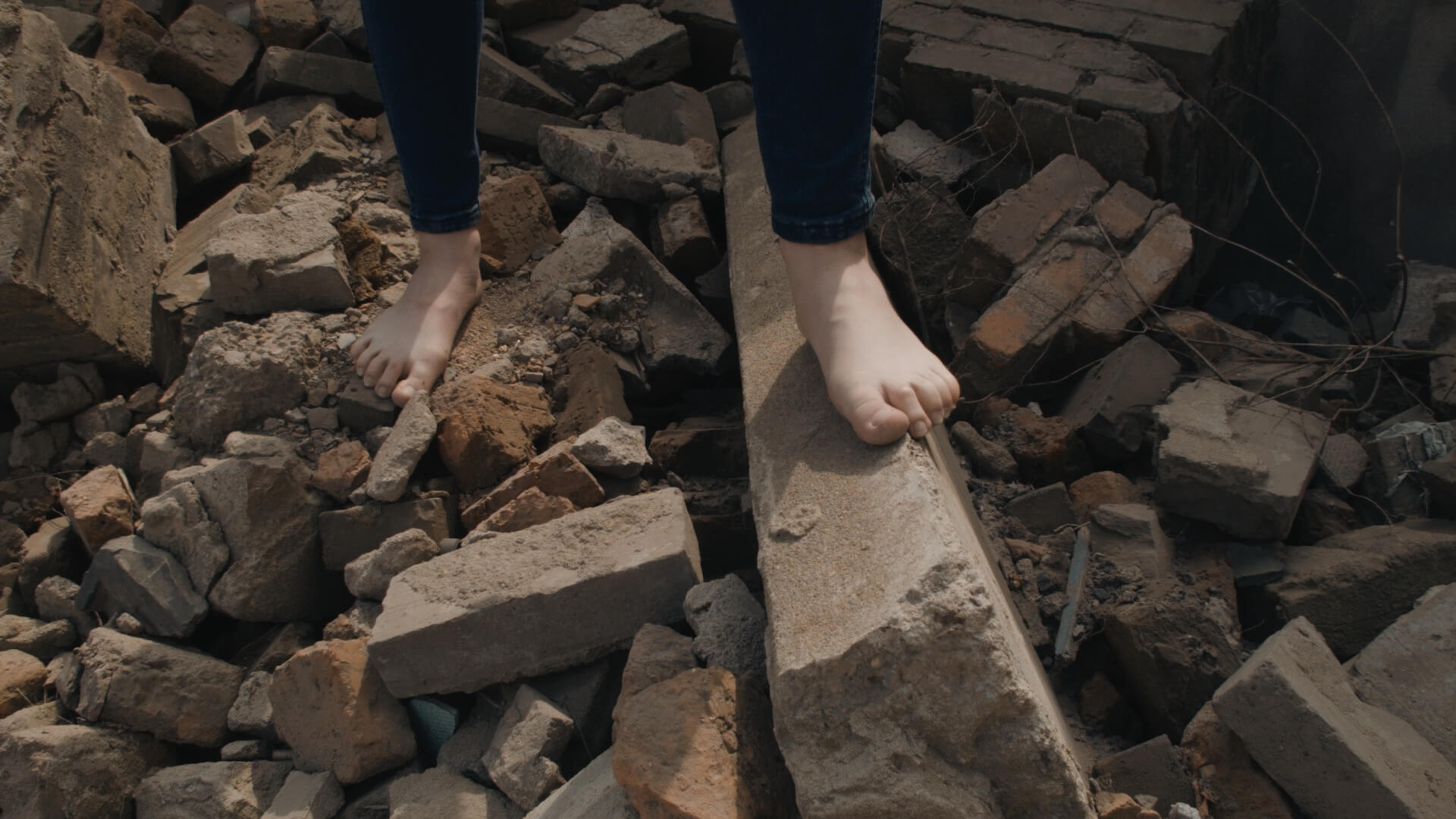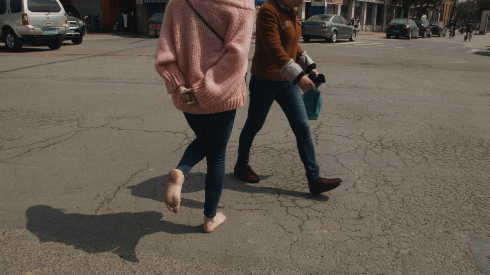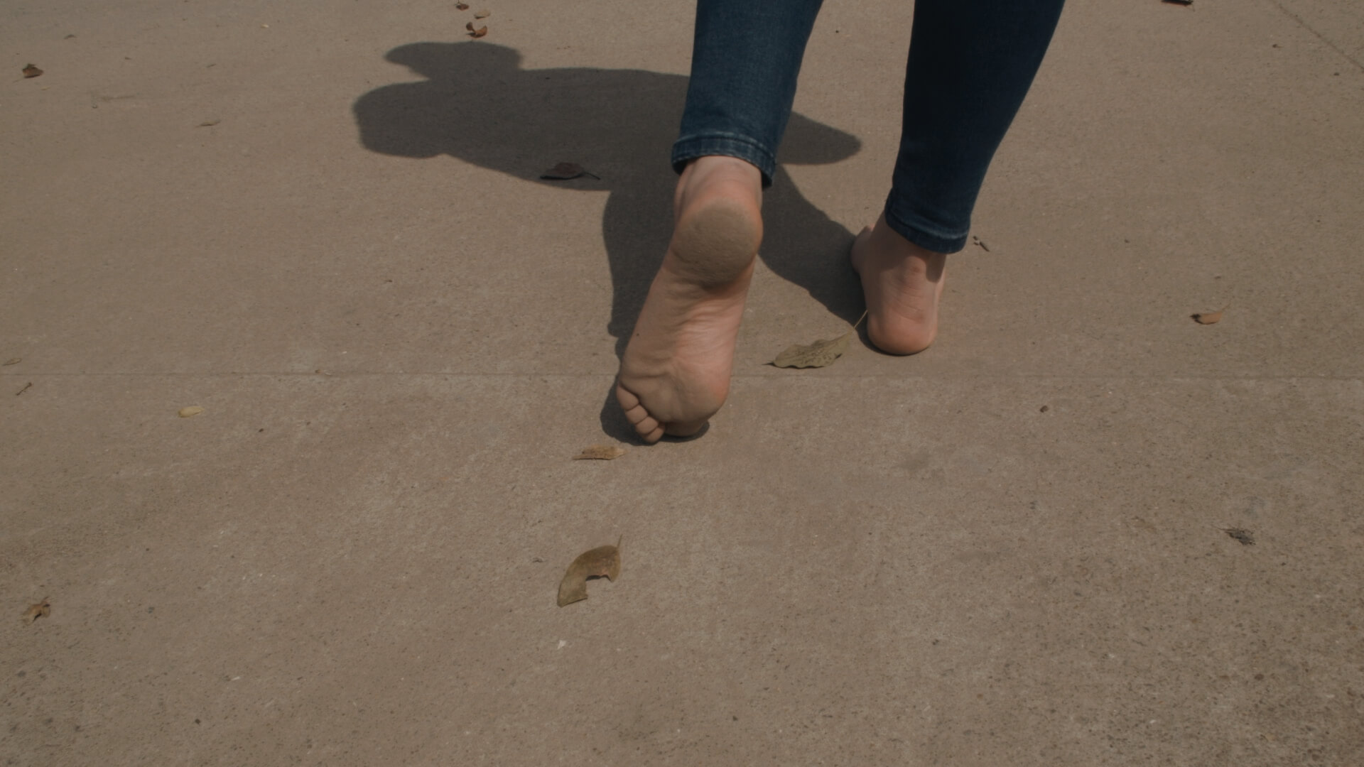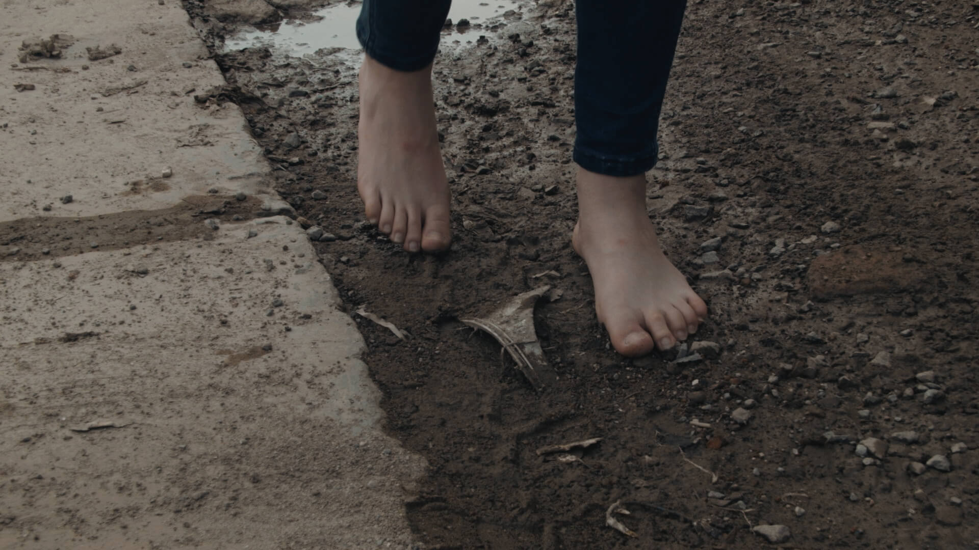 萌萌还是很自然,没有太过紧张,我就给她安排了“踩泥”、“走碎砖块”等任务,她完成的不错,很有赤脚天分。而且她的脚趾很漂亮,尤其是踩在地上动的时候。