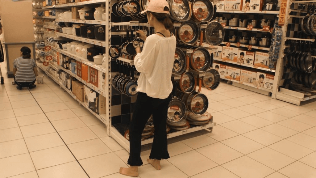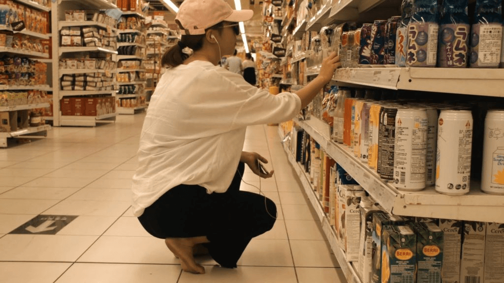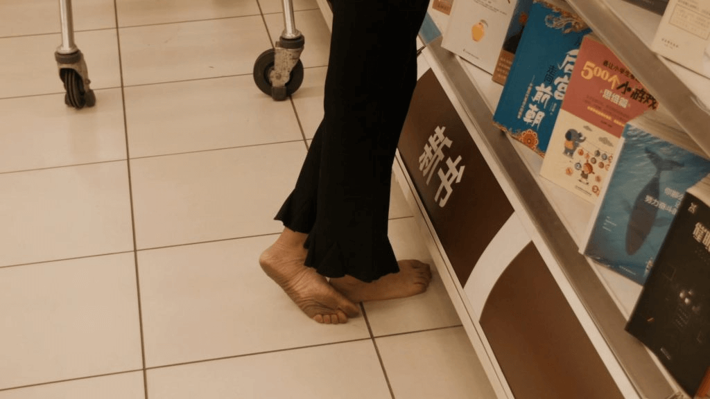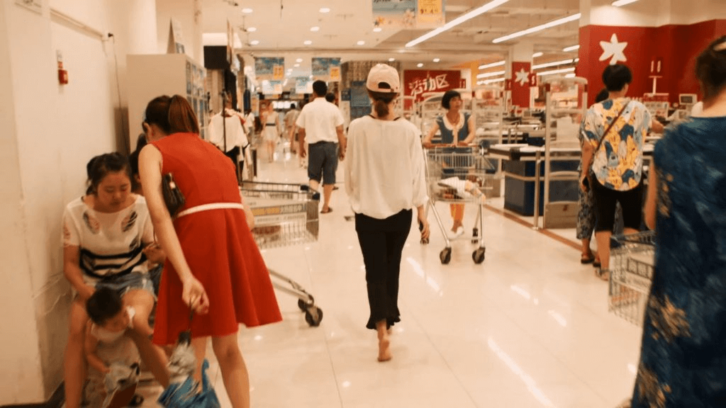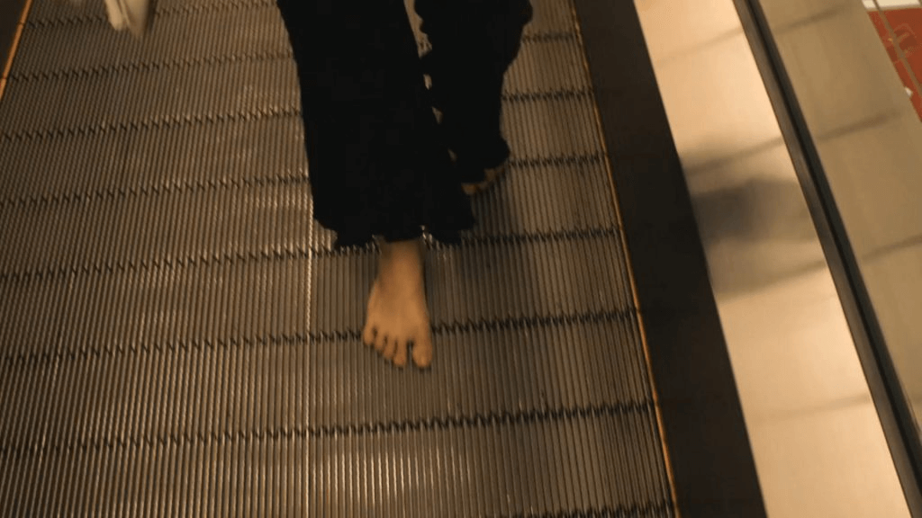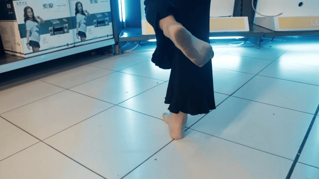 荧荧一直不太敢在人多的地方尝试赤脚,为了克服这一点,我决定先带她去超市逛逛,超市人多,地板粘滑,是个锻炼赤脚心理的好地方。荧荧要求戴着墨镜,这样她更能放得开一些。
