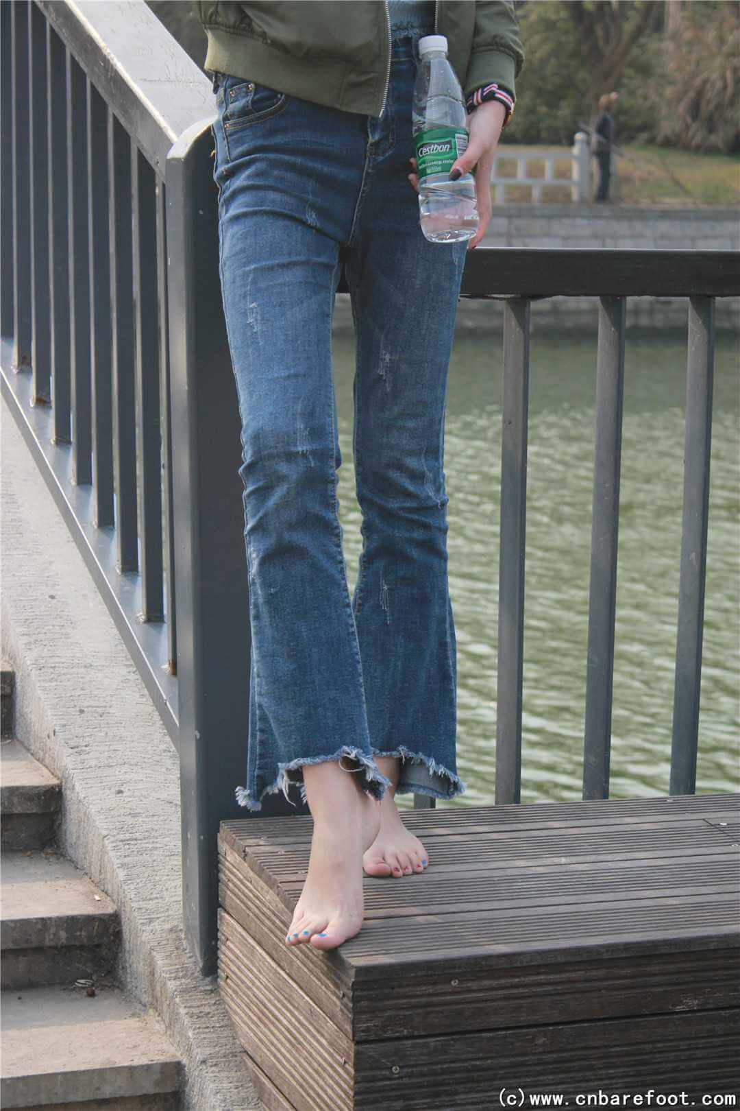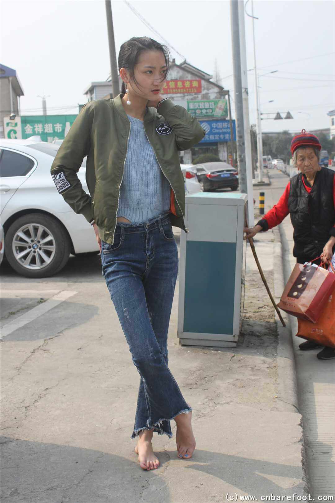 静静第一次尝试赤脚出门,虽然心里有些忐忑,但她仍然勇敢地走上了街头。