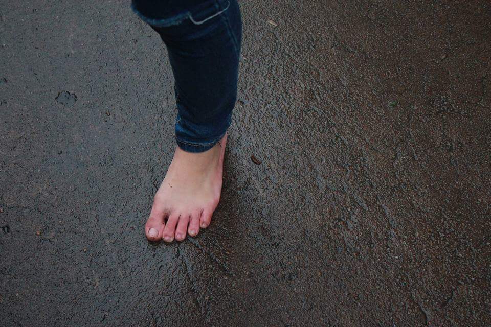 当天的温度只有四摄氏度,下着小雨。我们吃完午饭开车去了旁边的小村子,继续享受赤脚。芳芳(花意瑶)很开心,虽然脚丫冻的通红,但还是说不冷。红红的脚趾和她周整的趾甲相配,在加上趾缝间的带土雨水,非常美丽,很是动人。