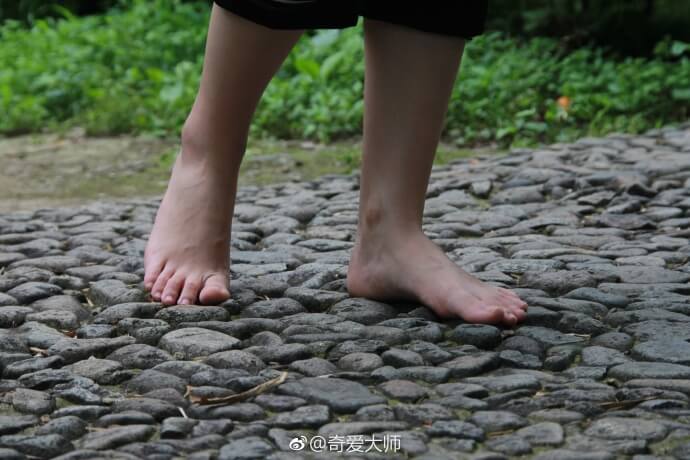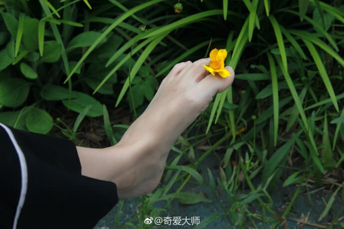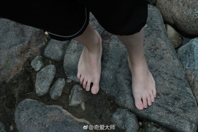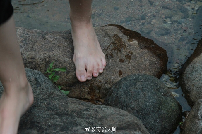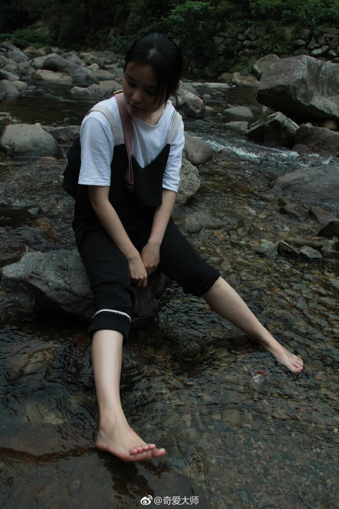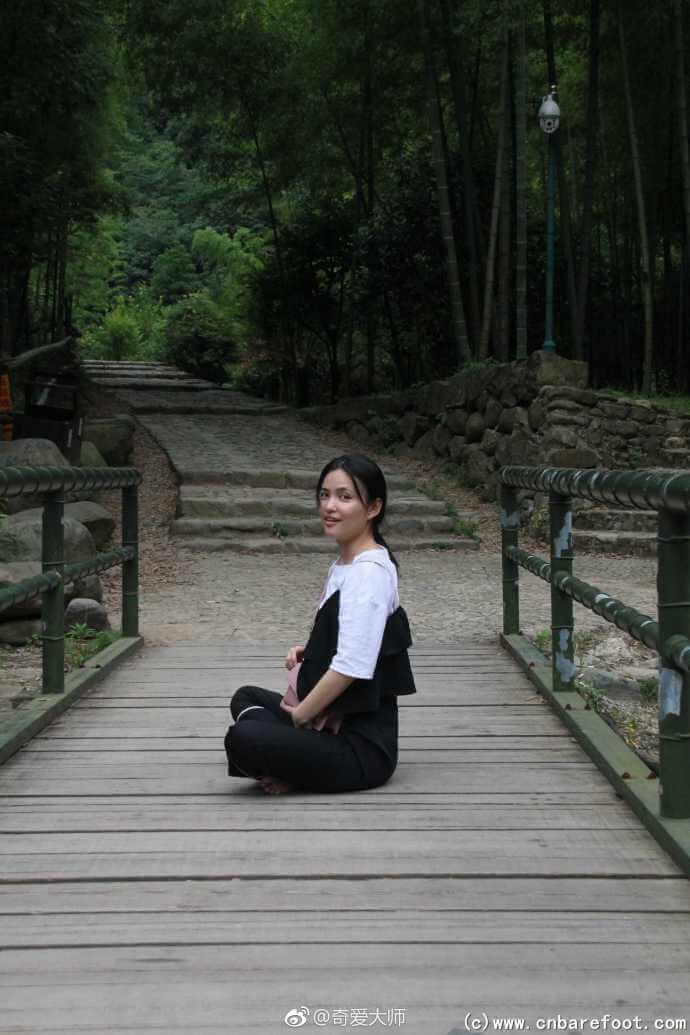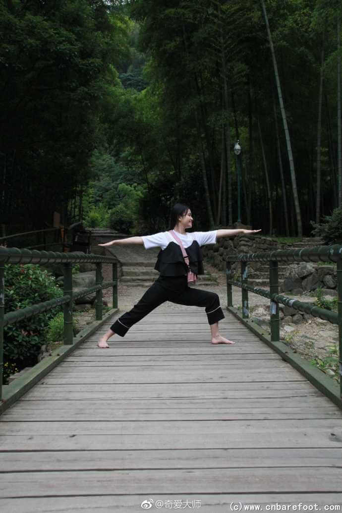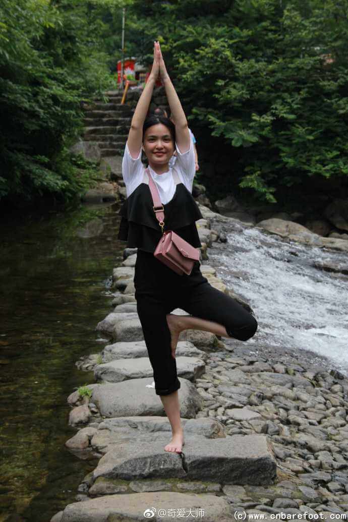 芳芳(花意瑶)光脚去景区游玩,在山间练起了瑜伽。