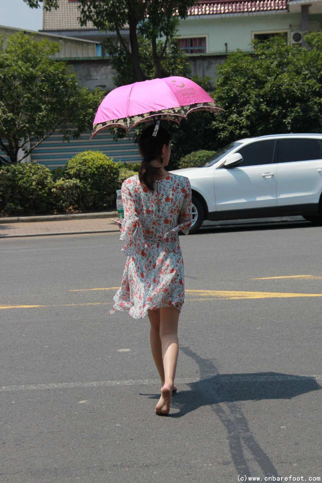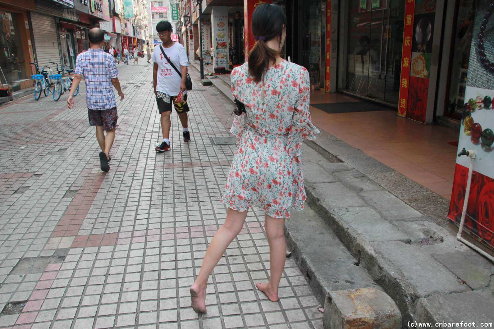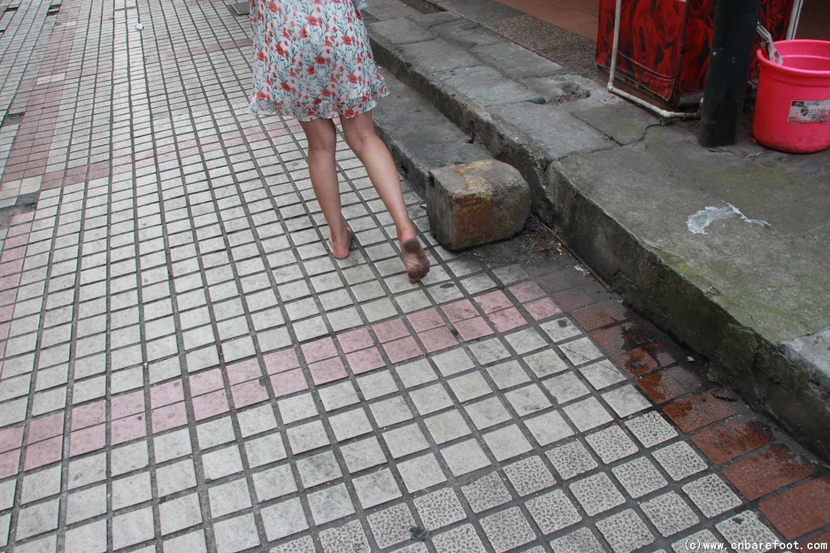 夏天晌午,绵绵直接从家中赤脚出门逛街,地面很烫。