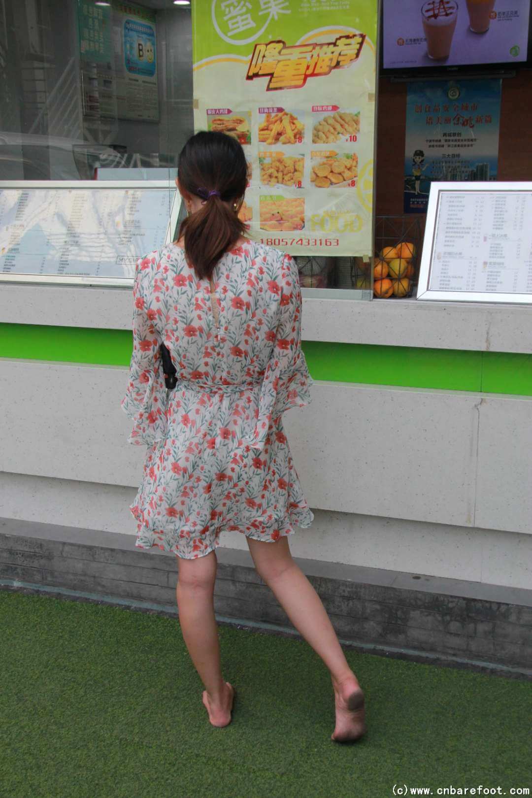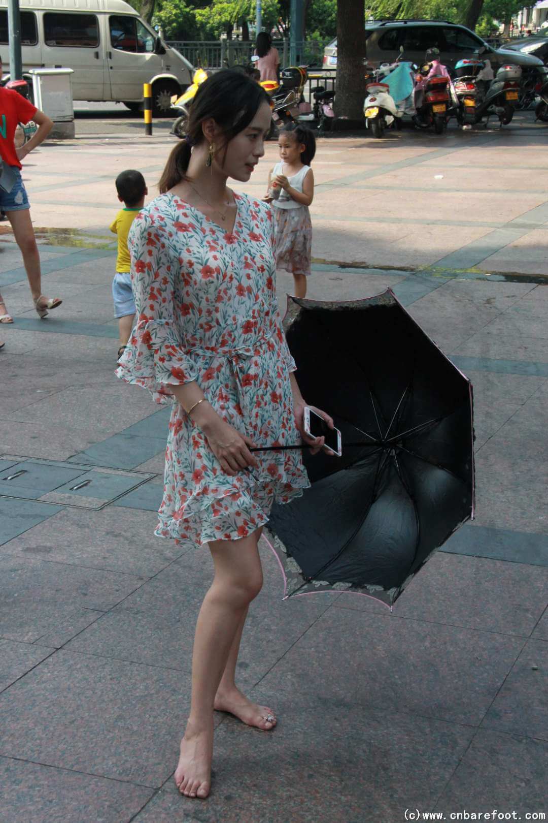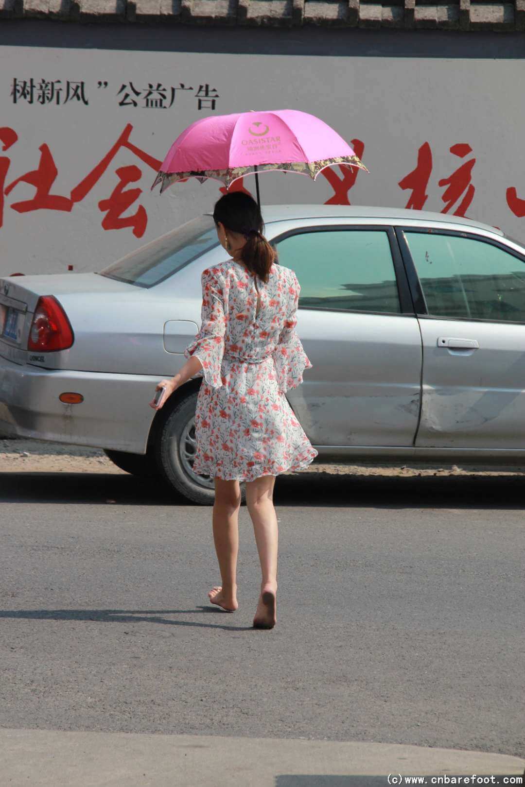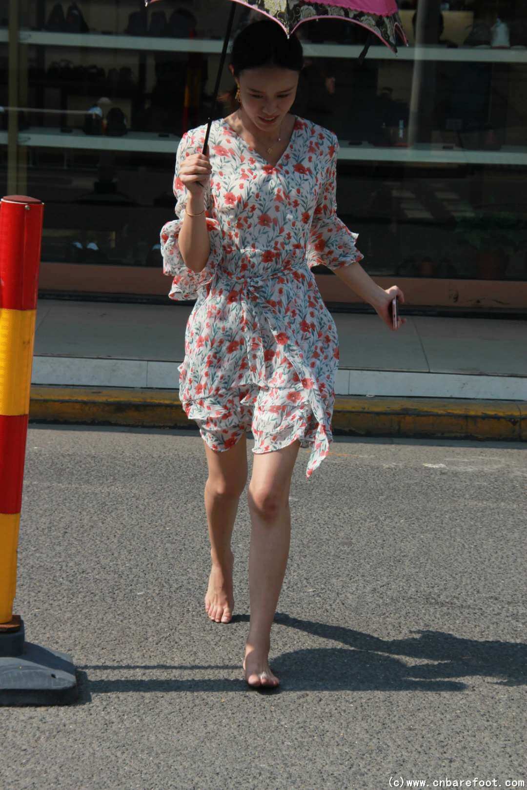 夏天晌午,绵绵直接从家中赤脚出门逛街,地面很烫。