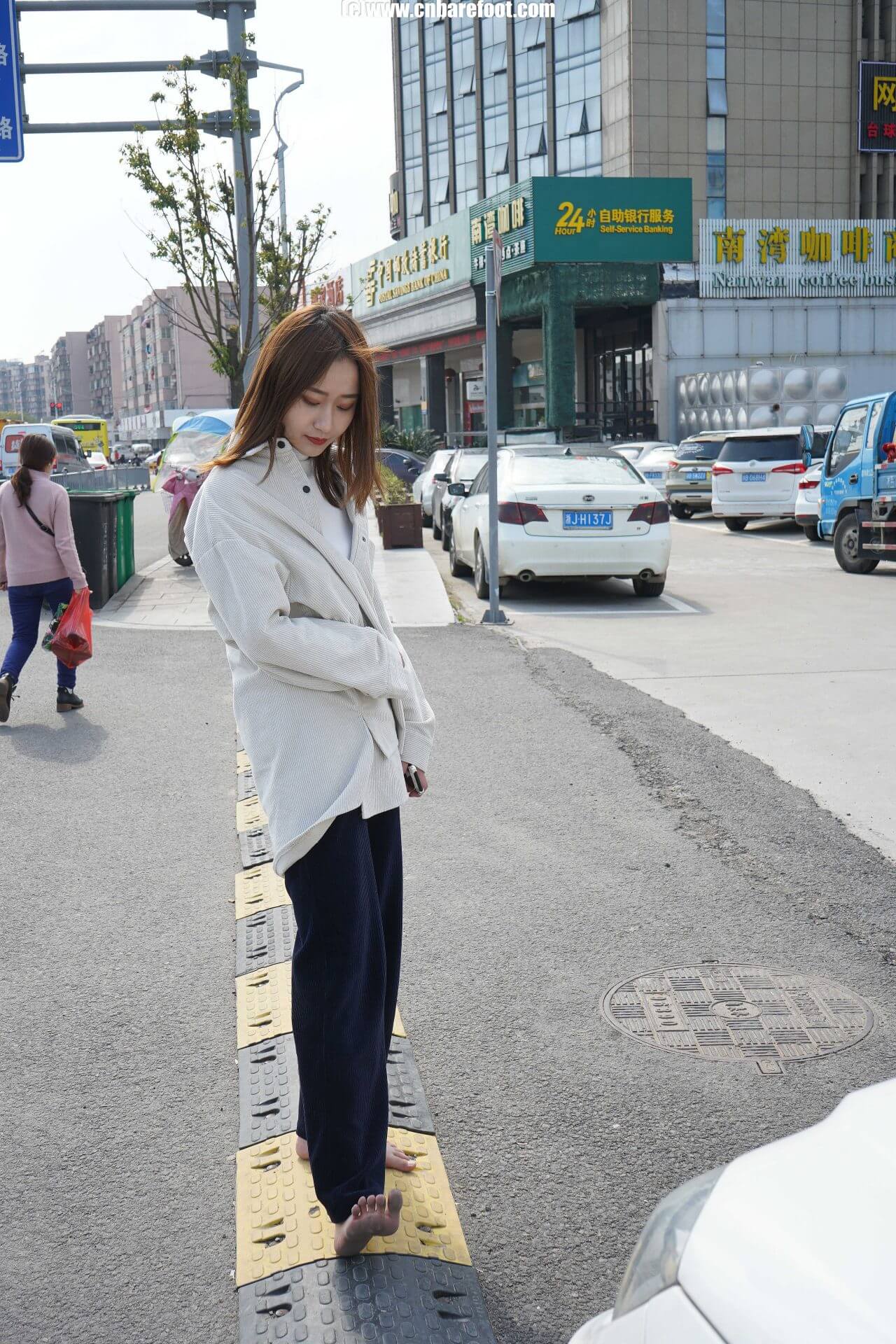 姗姗·地铁站旁赤脚散步