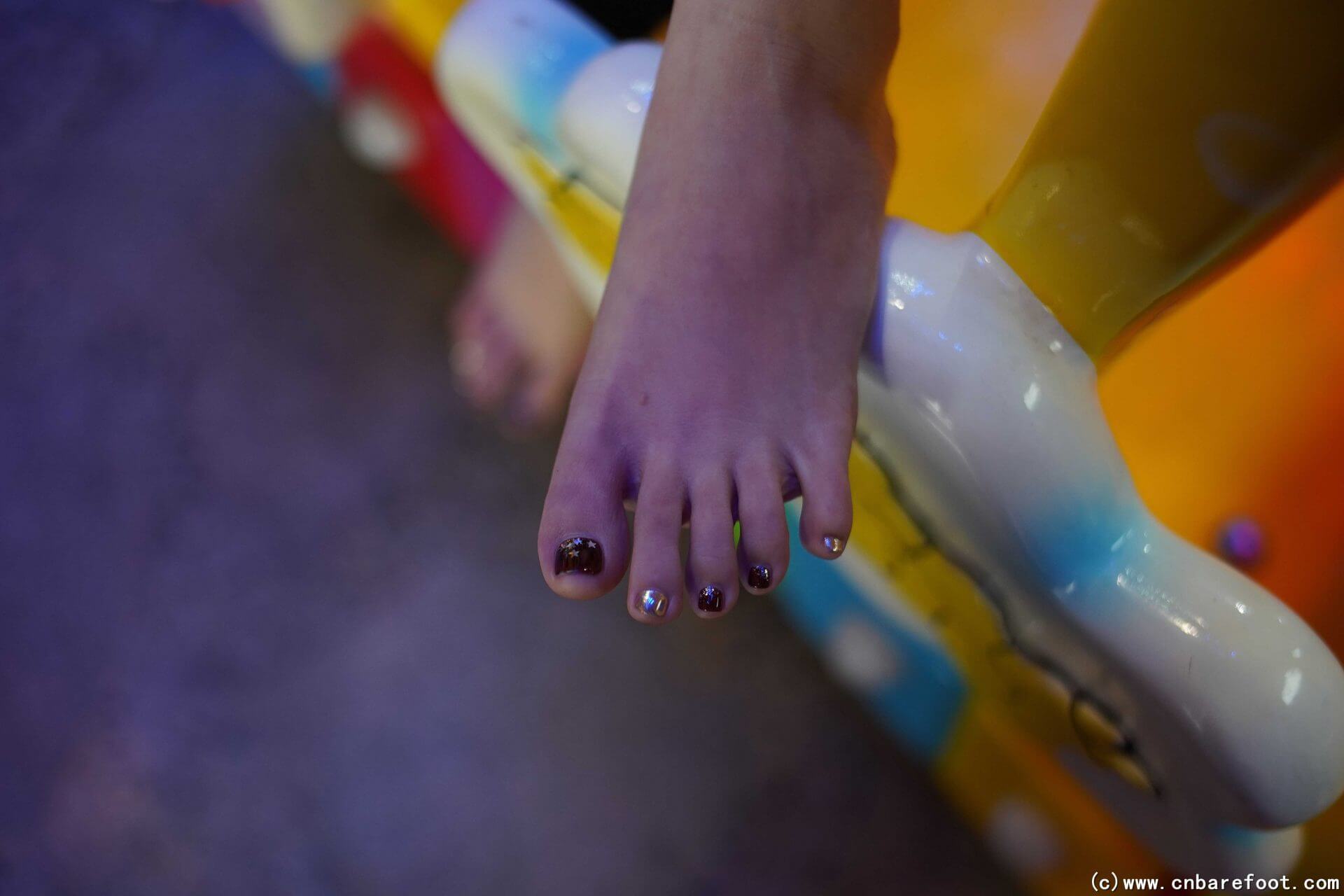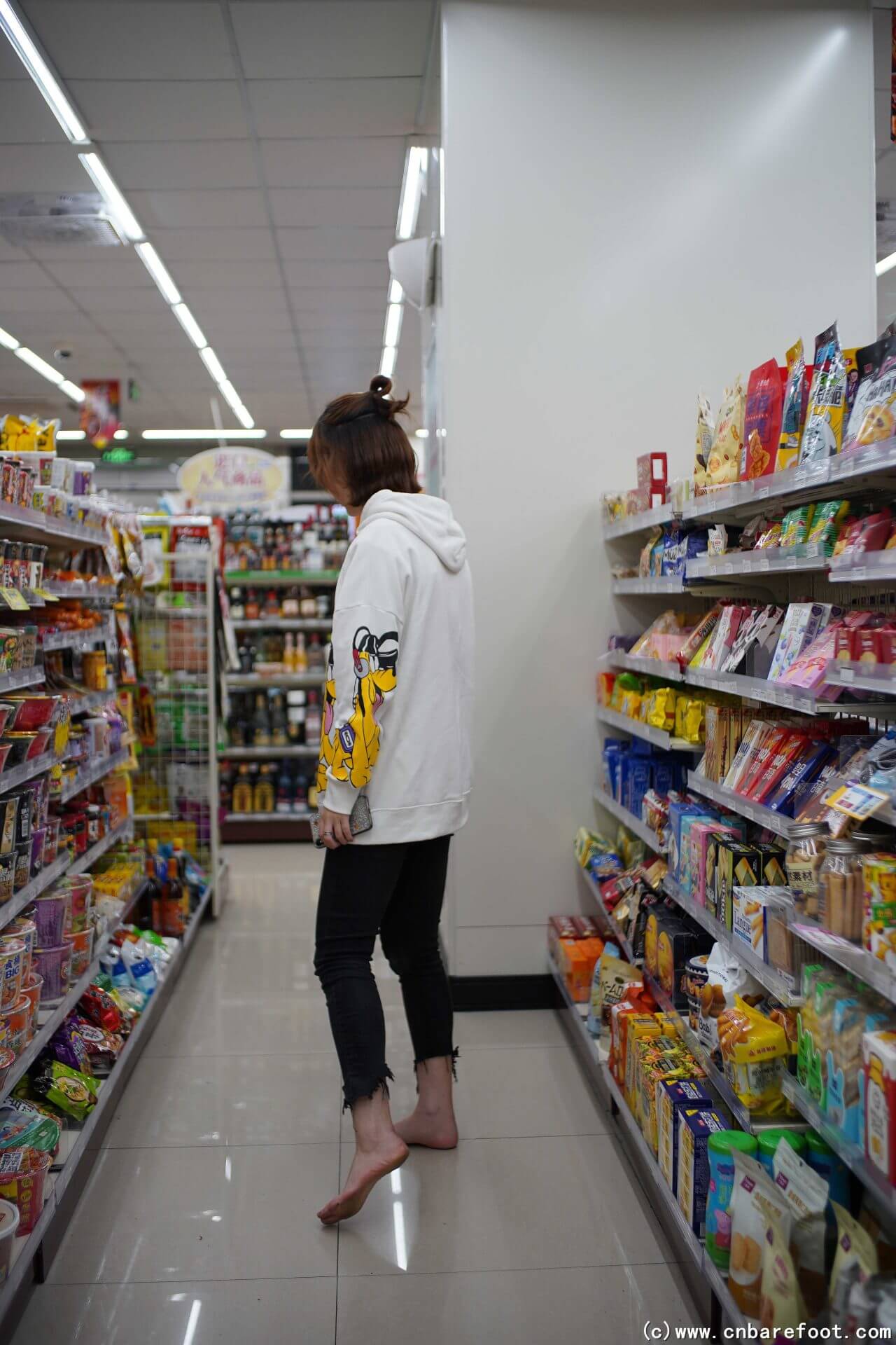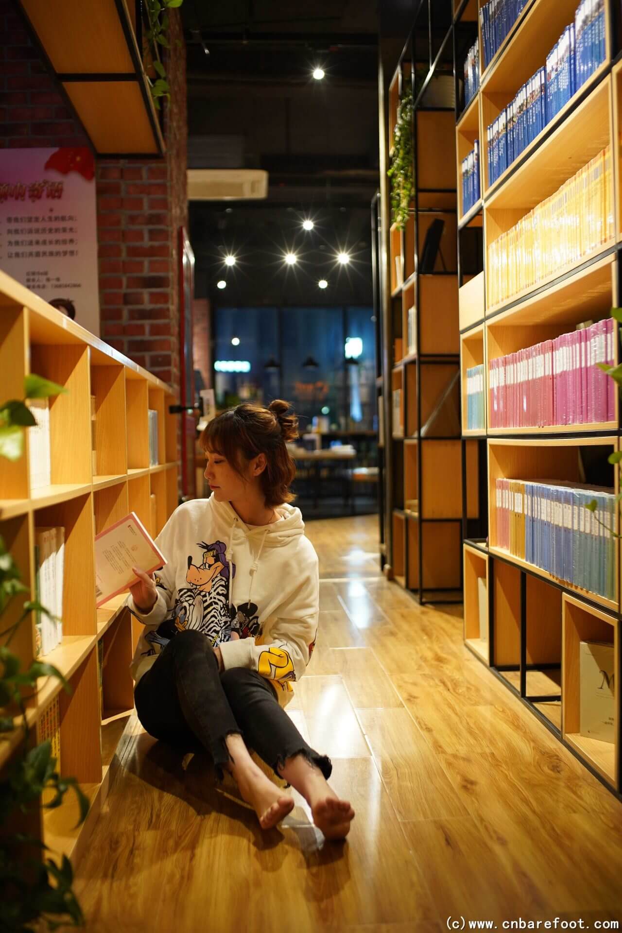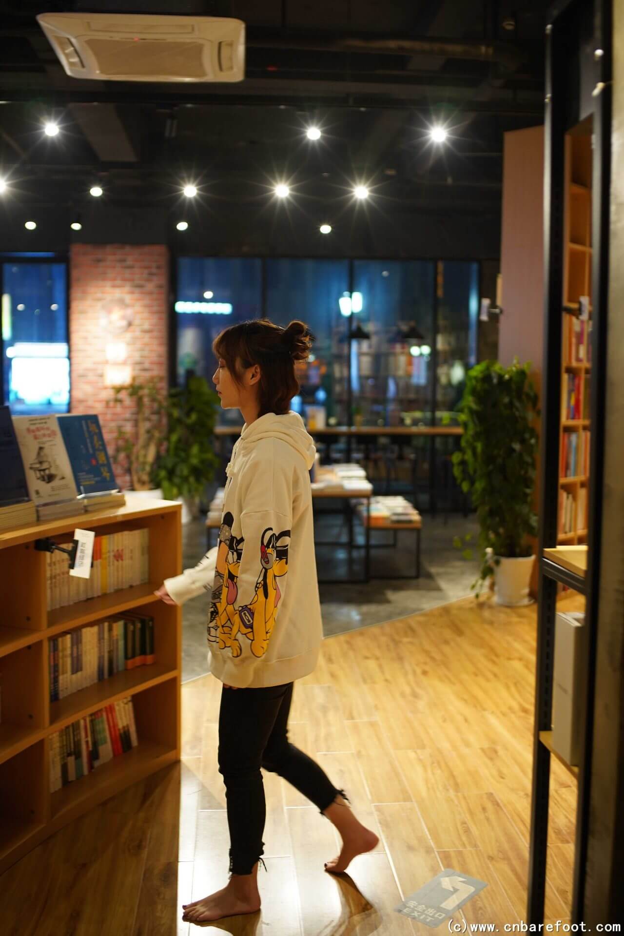 夜晚,果果赤脚漫步在城市的书店、广场和商店之间。她走进安静的书店,脚步轻柔,感受着书香的温馨与宁静。离开书店后,她穿过广场,夜风轻拂,广场上灯光柔和,映衬着她的身影。最后,她走进一家商店,冷硬的地板与她的脚底形成鲜明对比,但她依然从容自如,不被任何目光打扰,在这个宁静的夜晚里享受独特的自由。