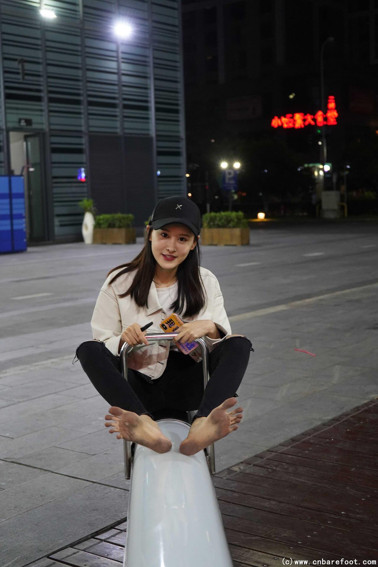 发现生活中的玉足,分享户外赤脚街拍