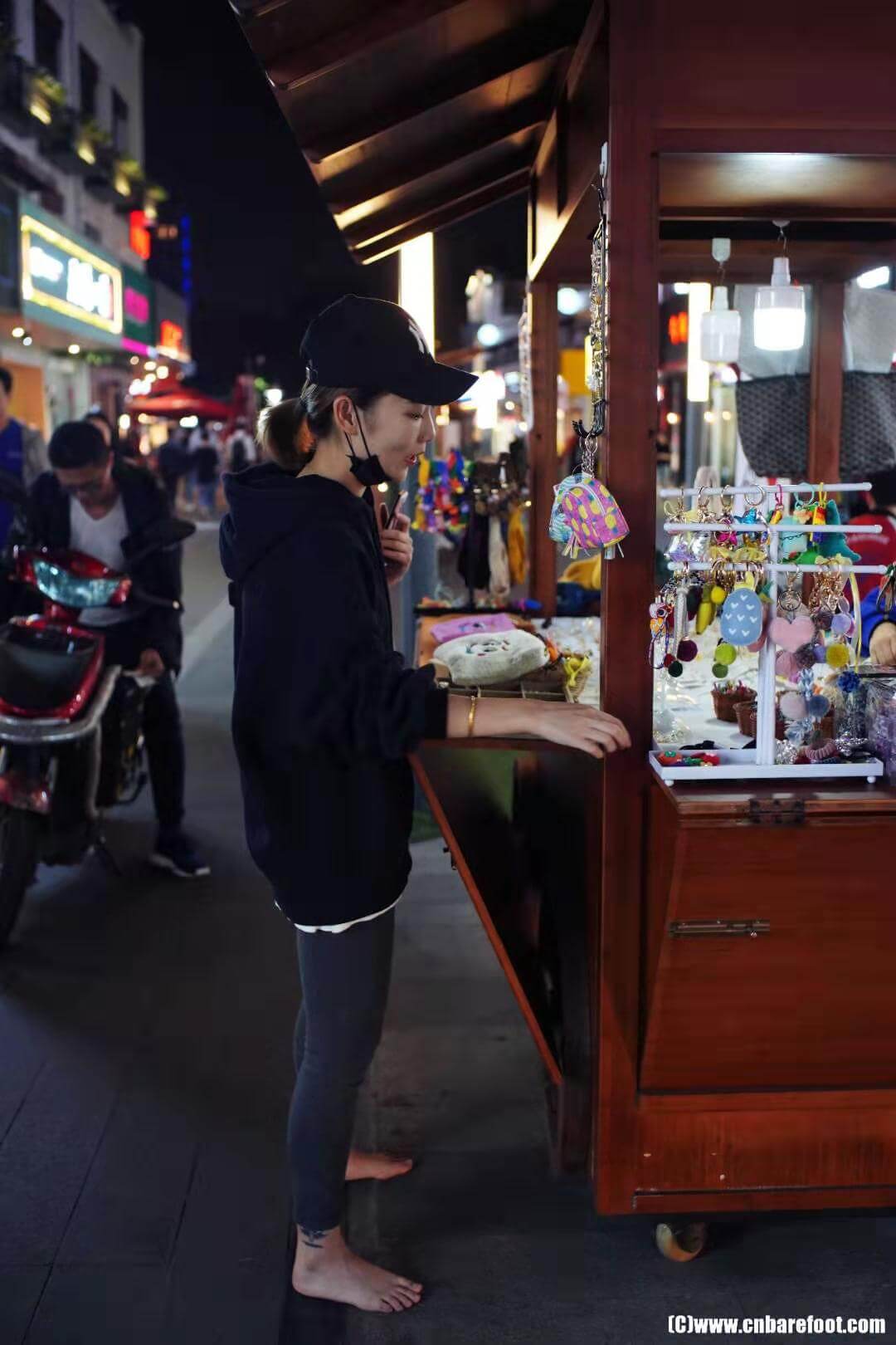 果果在夜晚的大学城里赤脚漫步,街道上的灯光映照出她轻盈的步伐。她悠然自得地走进路边的小店,不在意他人投来的目光。夜色中,她享受着脚底与地面接触的微妙感觉,整个城市仿佛只属于她一人。