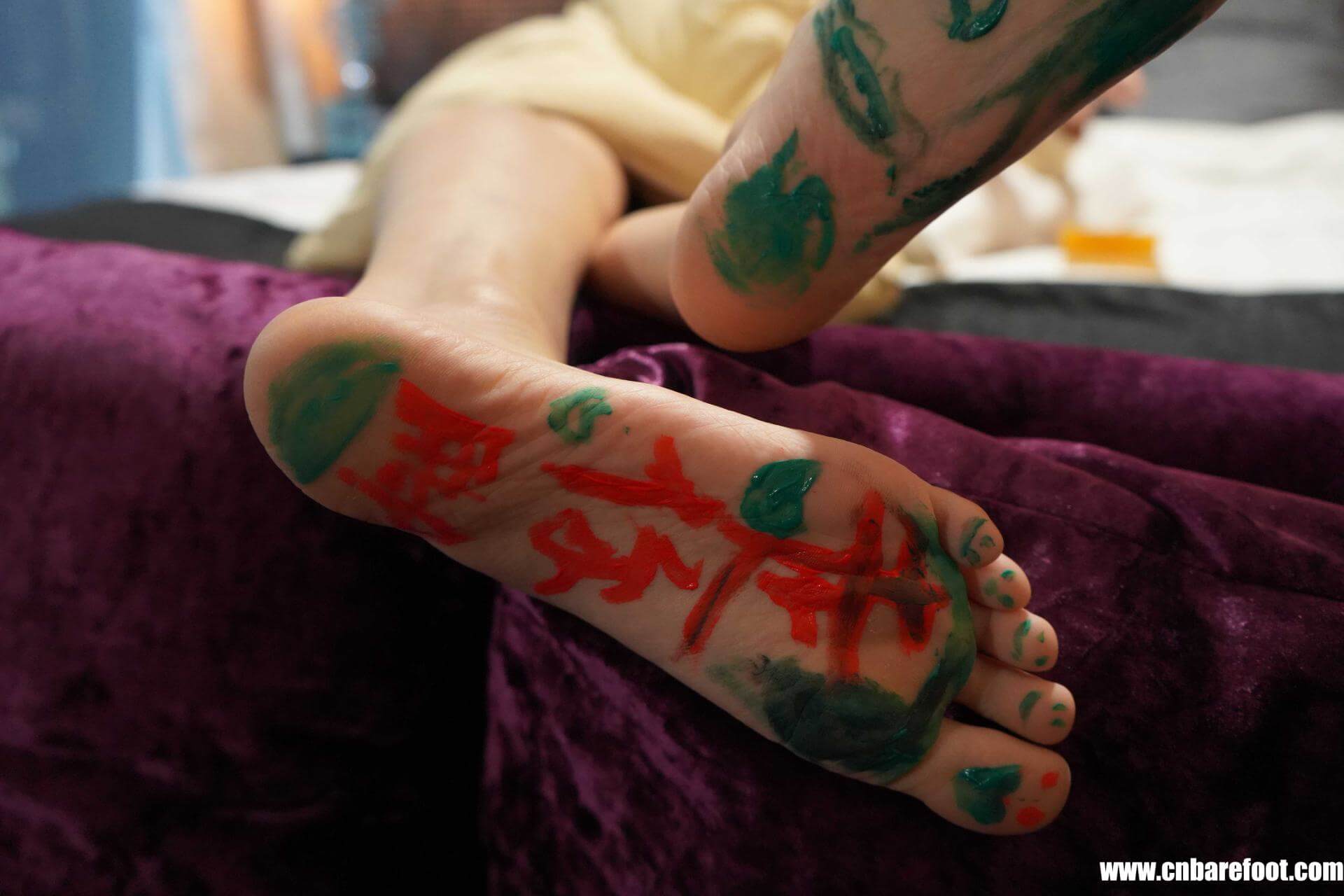 珊珊(姗姗)在酒店里赤脚玩耍,轻轻踩踏香蕉和各种水果,感受果肉的柔软与冰凉。之后,我用水彩颜料以她的脚底作为画板作画,色彩在她的足底蔓延开来,形成了一幅独特的艺术作品。