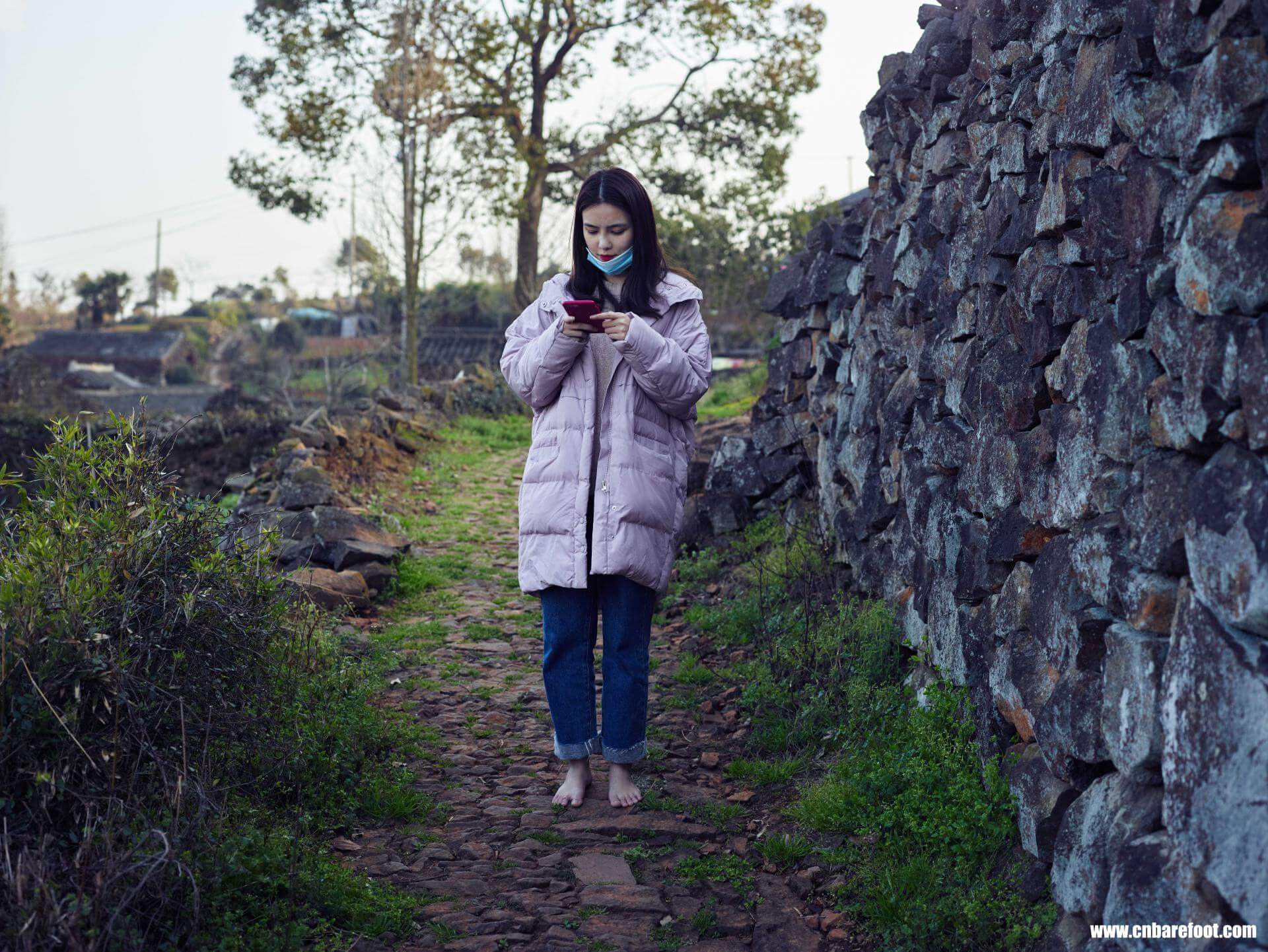 At the beginning of the year, Fang (Hua Yi Yao) went out to play in Stone Village. The weather had not yet warmed up, and it was early spring for an outing. She played barefoot, liberating her feet. This set includes 280 photos, provided for barefoot enthusiasts to reference and learn from.