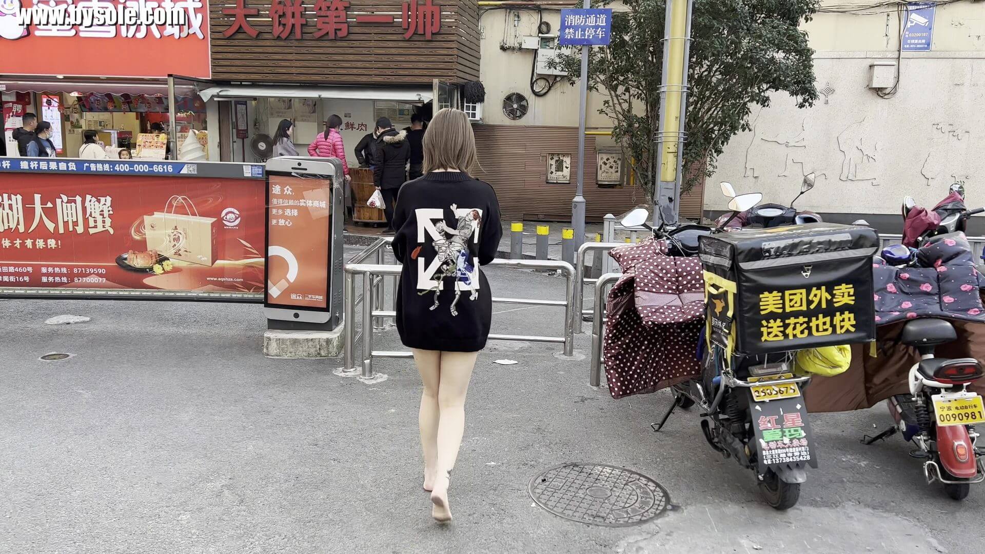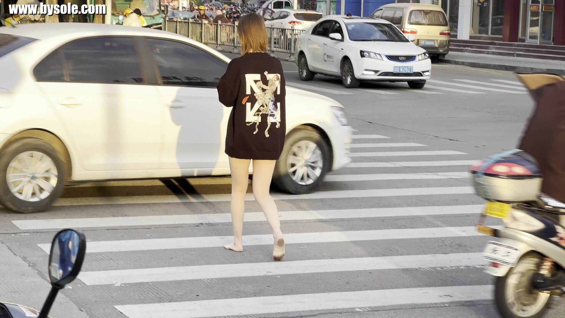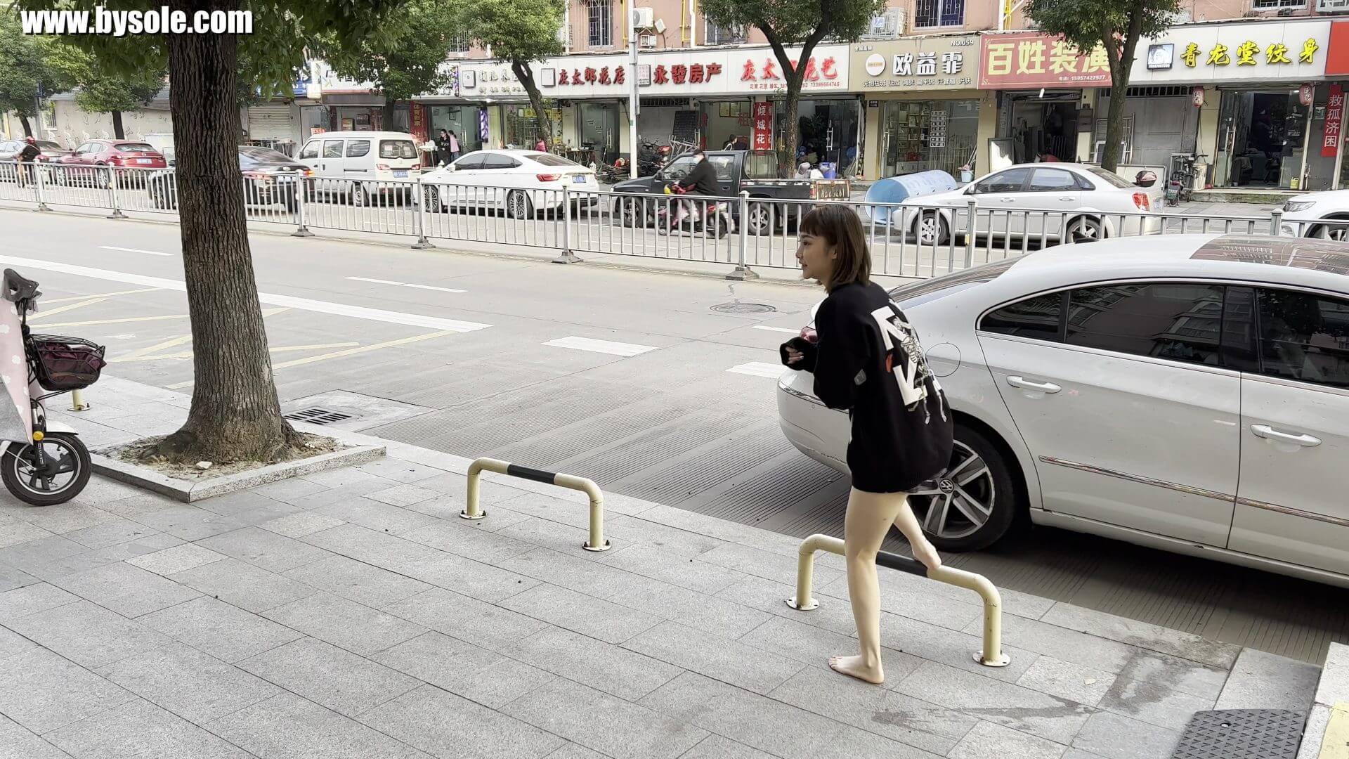 Guo got up in the morning and decided to go for a barefoot stroll, first going to have breakfast. A few days ago, both of Guo's big toes were stepped on by someone, and the toenails turned amber. This set includes 13 minutes of video, provided for barefoot enthusiasts to reference and learn from.