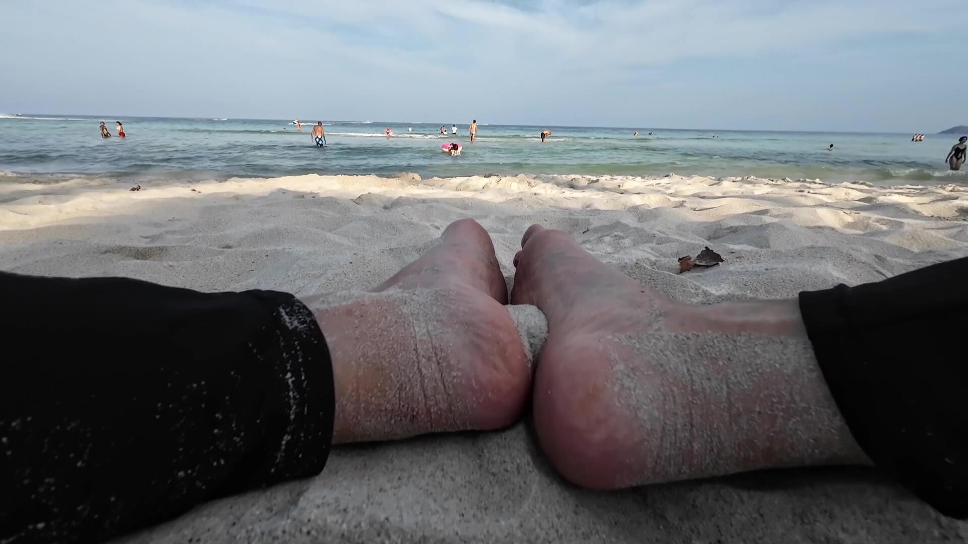 Ying traveled to Thailand with friends and went barefoot to the seaside. She bought a sports camera and hung it on her chest, which perfectly captured her bare feet, truly living up to the name “foot travel recorder”. This set includes 10 minutes of video, provided for barefoot enthusiasts to reference and learn from.
