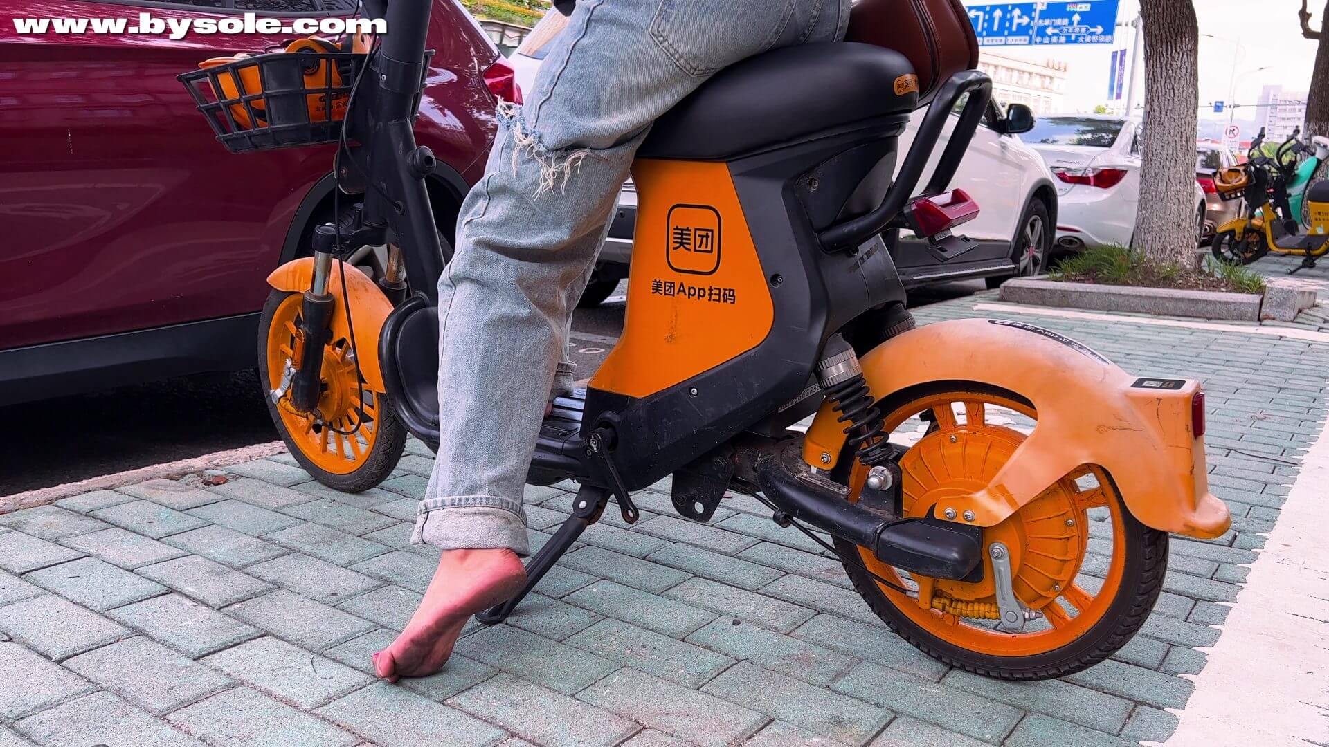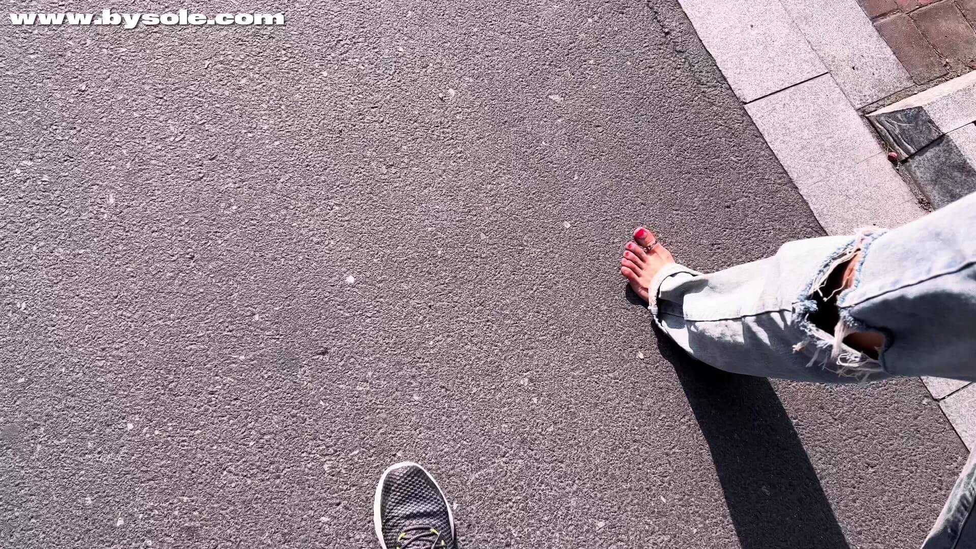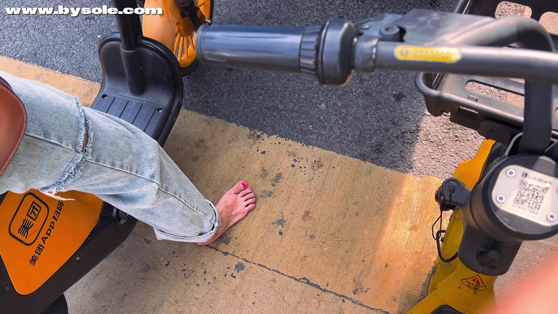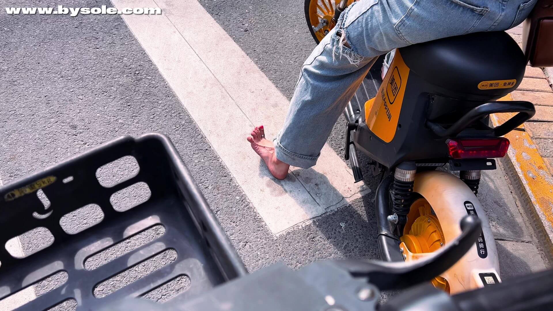 Fei-Fei chose to go out shopping barefoot on a summer afternoon, wanting to challenge her own barefoot endurance. After crossing the overpass, because the ground was simply too hot, she began to feel timid. I promised to treat her to Starbucks if she persevered, but it was a 30-minute walk to Starbucks. Finally, a clever idea struck, and we rode a shared electric scooter there. This set includes 30 minutes of video, provided for barefoot enthusiasts to reference and learn from.