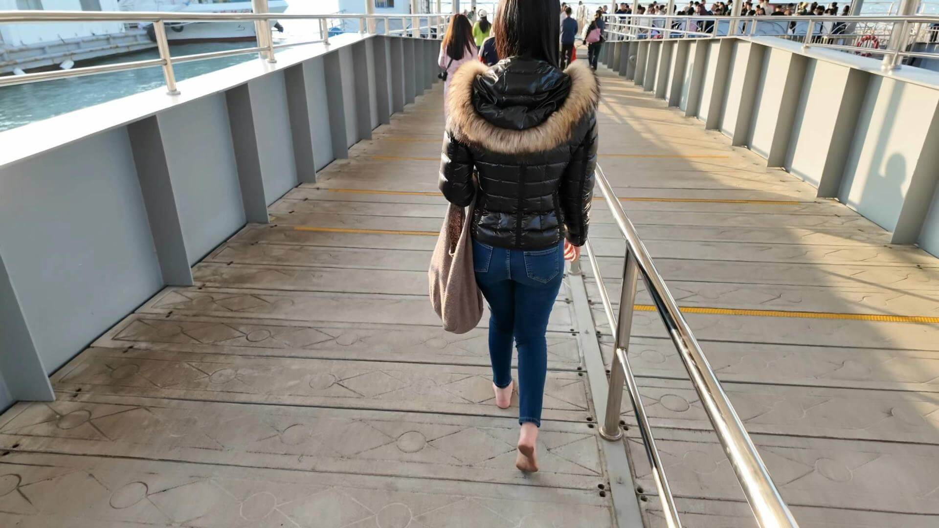 Mian challenged herself to travel to Xiamen barefoot. Unfortunately, she caught a cold during the high-speed rail journey. The winter in the south is also very cold, but she persisted nonetheless. This set includes 96 minutes of video, provided for barefoot enthusiasts to reference and learn from.
