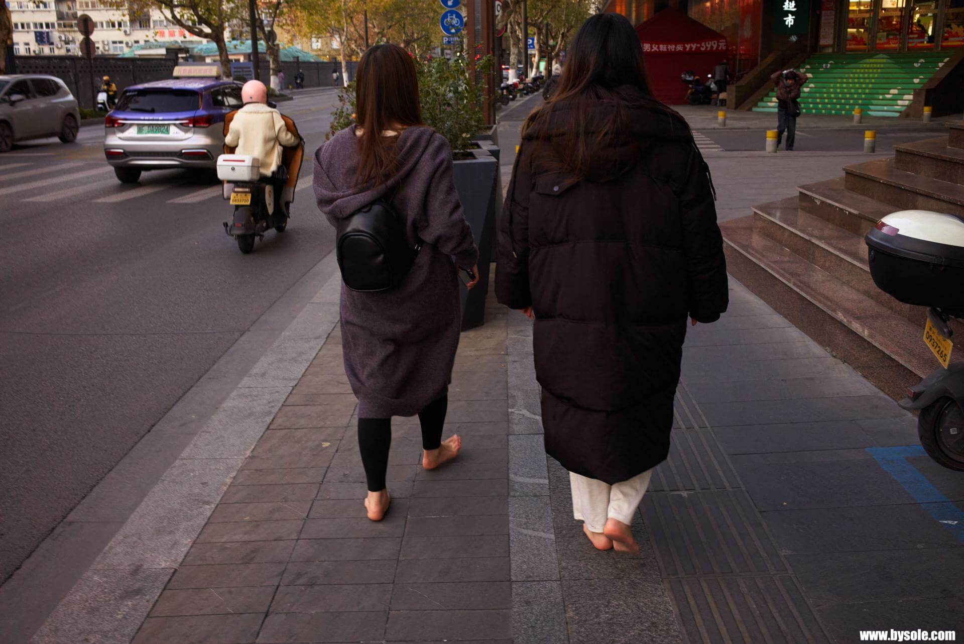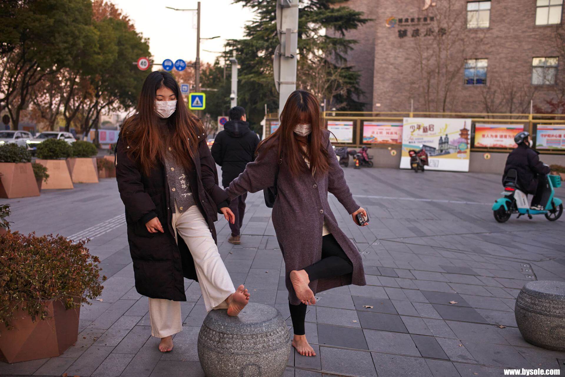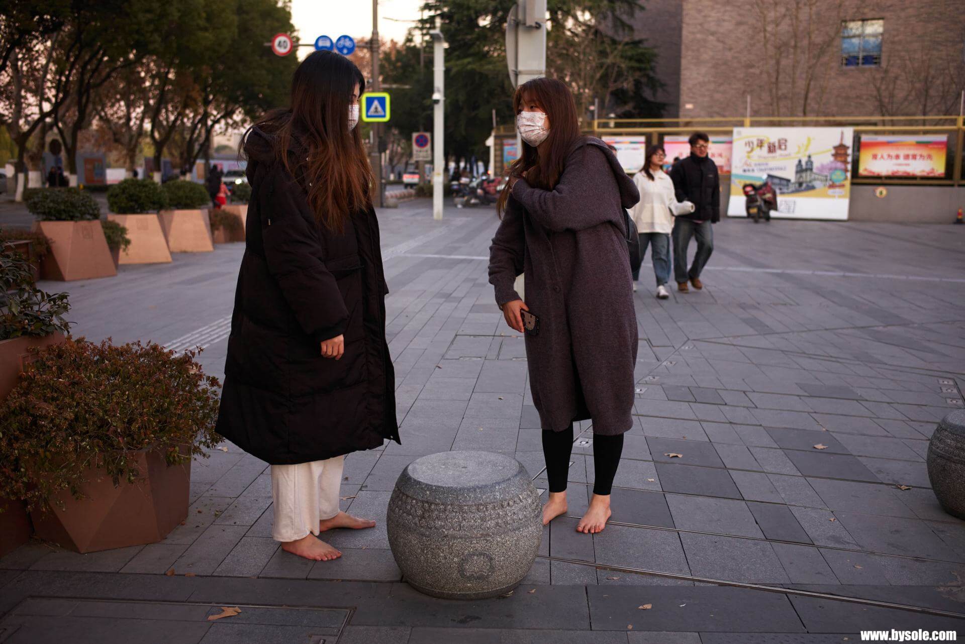 In winter, January, Mi-Mi and her bestie went for a barefoot stroll in Jiaxing. This set includes 76 photos, provided for barefoot enthusiasts to reference and learn from.