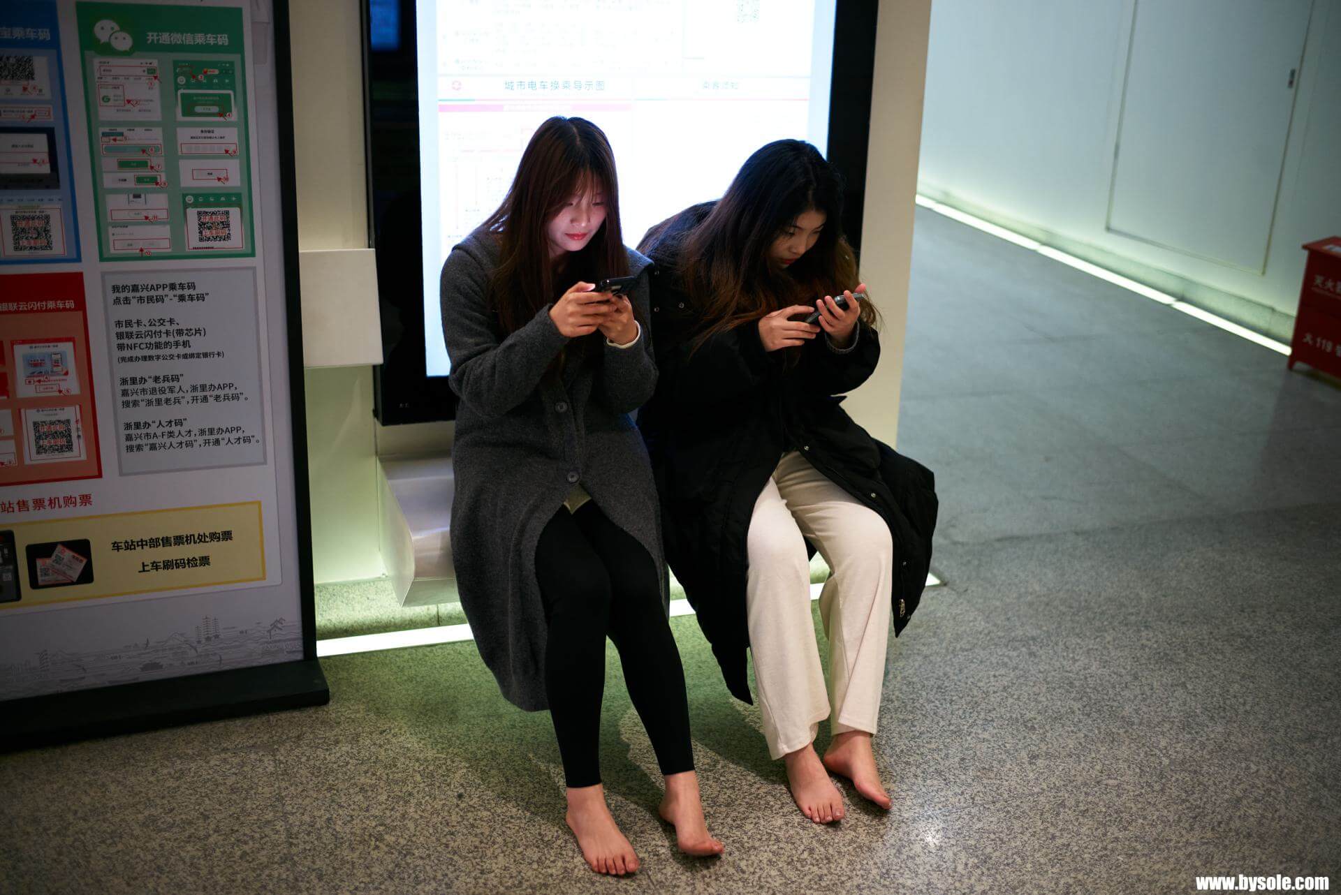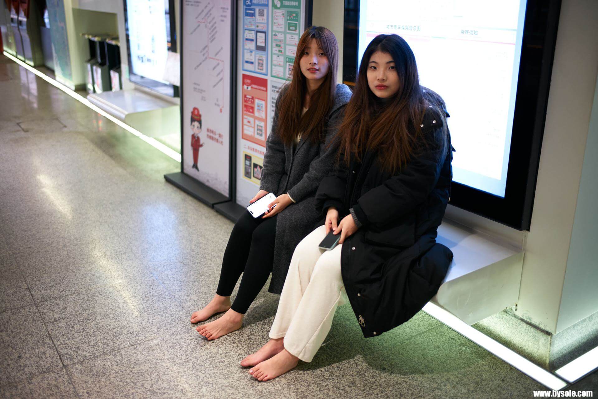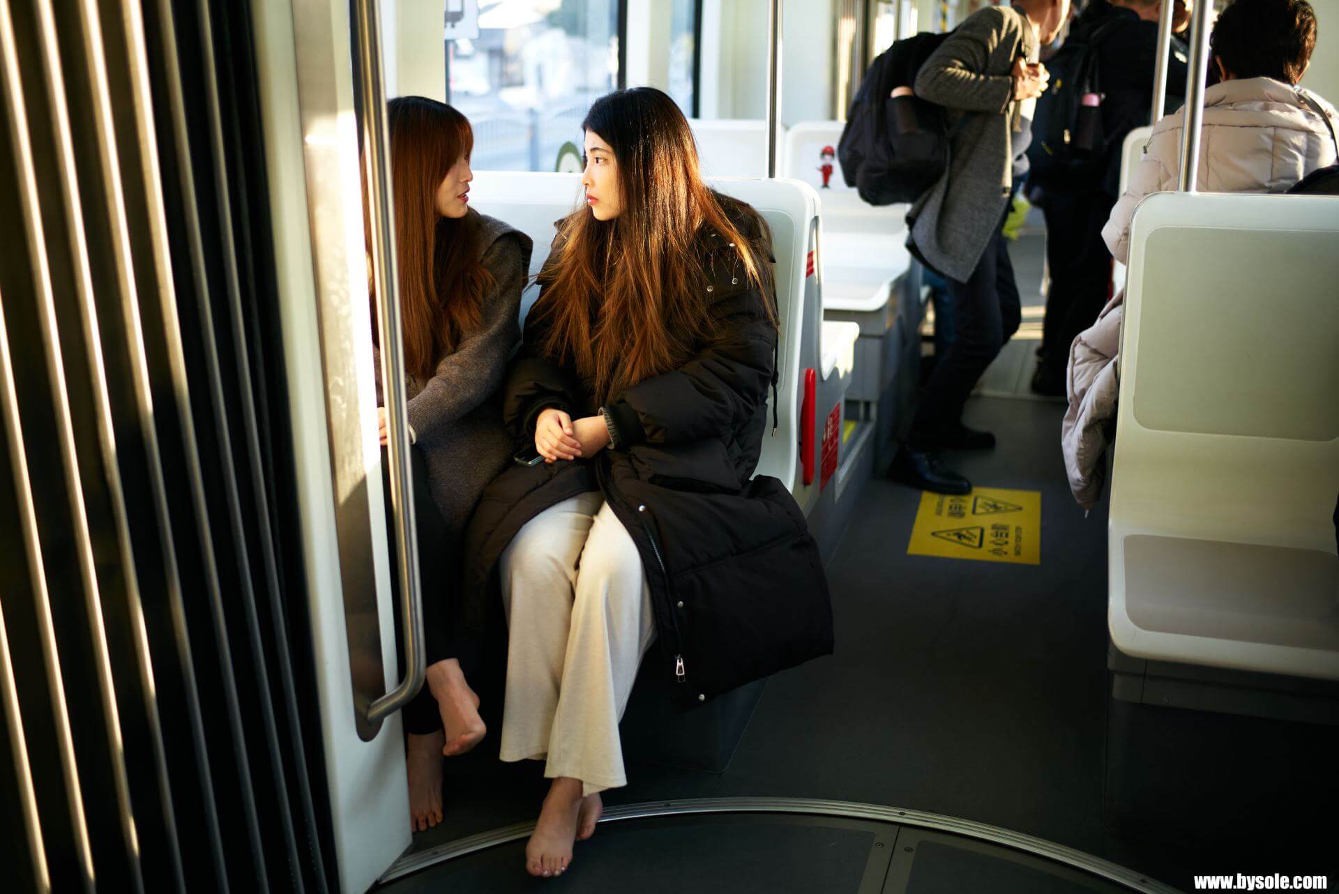 In winter, January, Mi-Mi and her bestie went for a barefoot stroll in Jiaxing. This set includes 76 photos, provided for barefoot enthusiasts to reference and learn from.