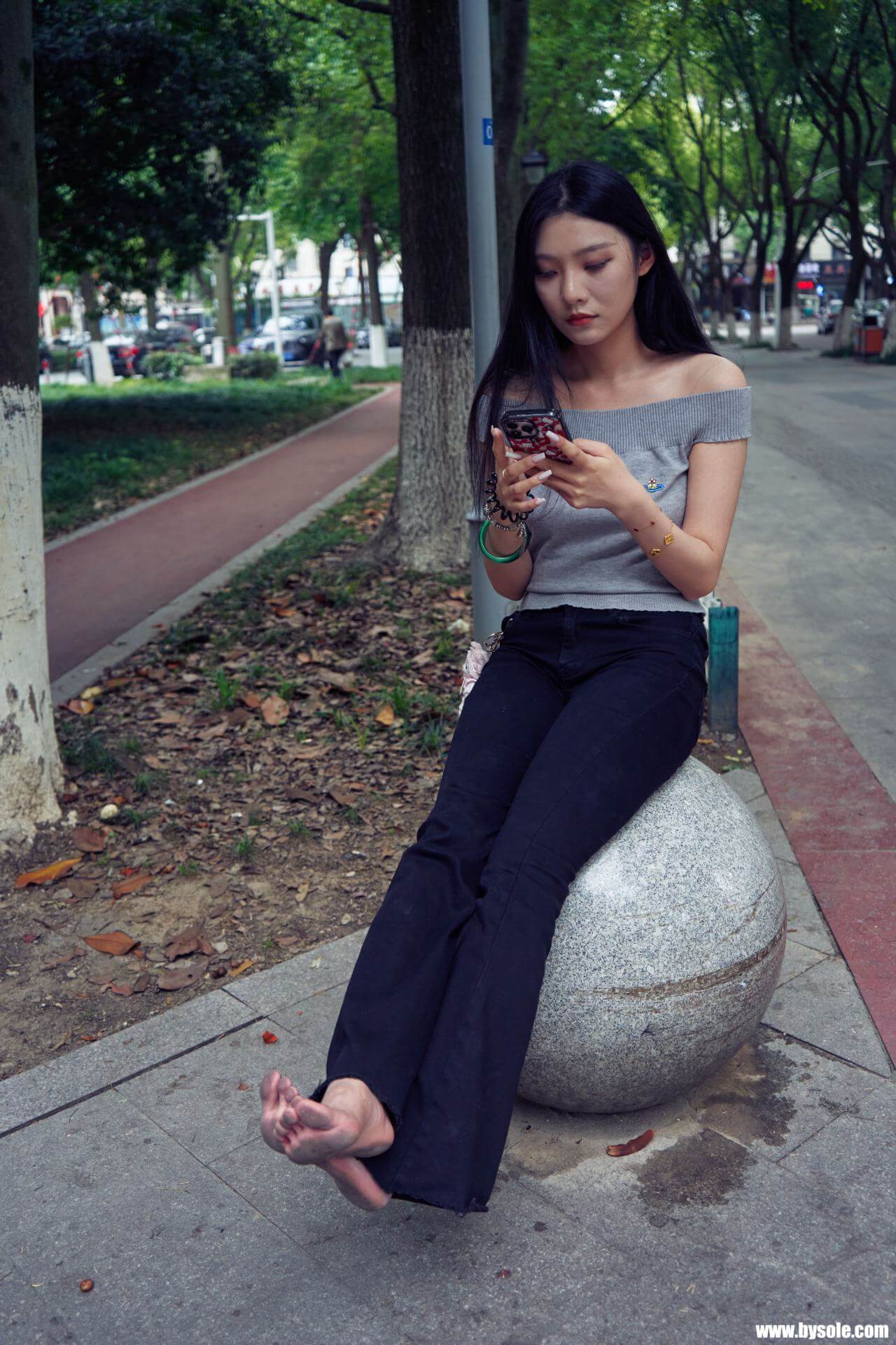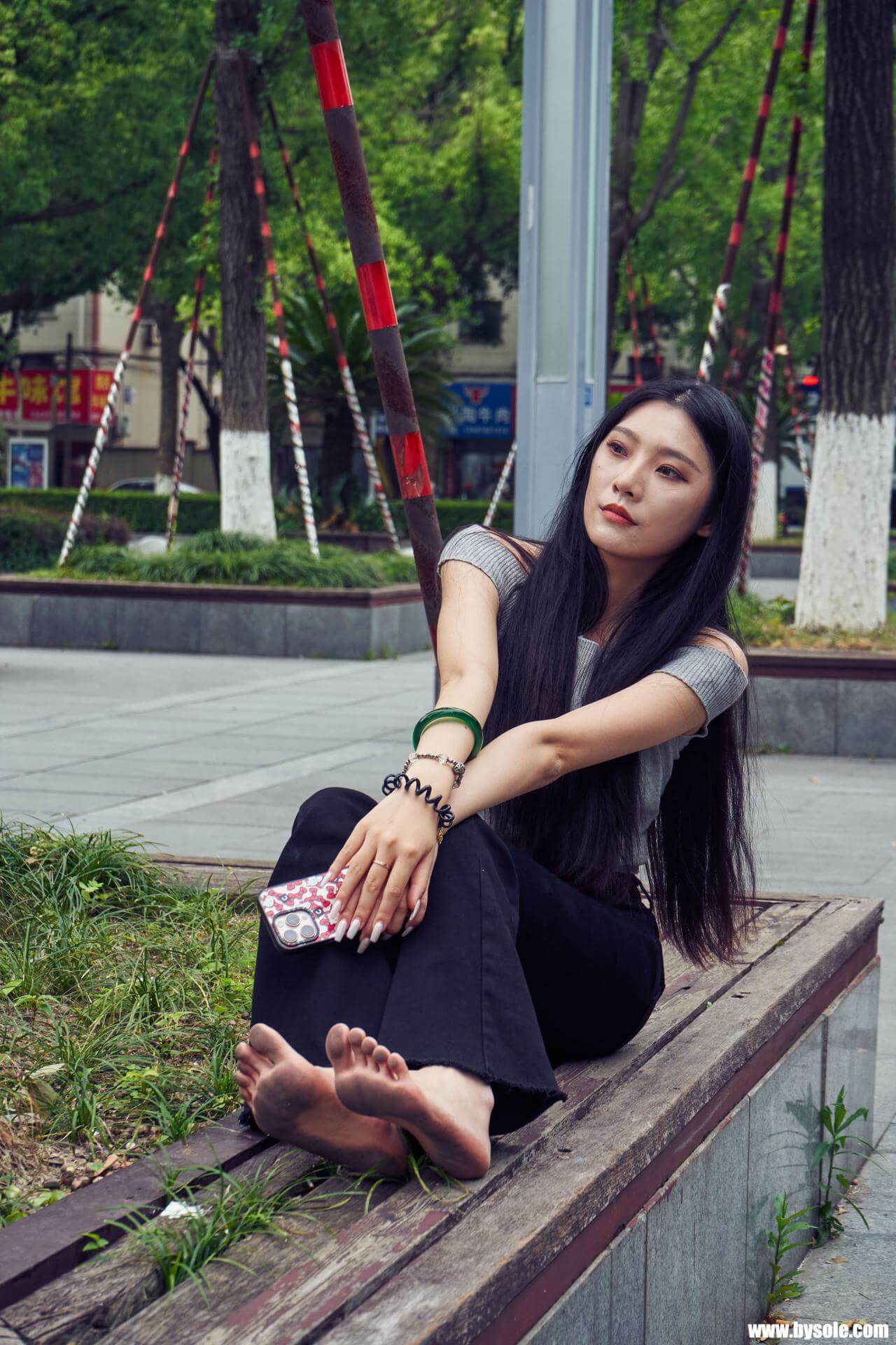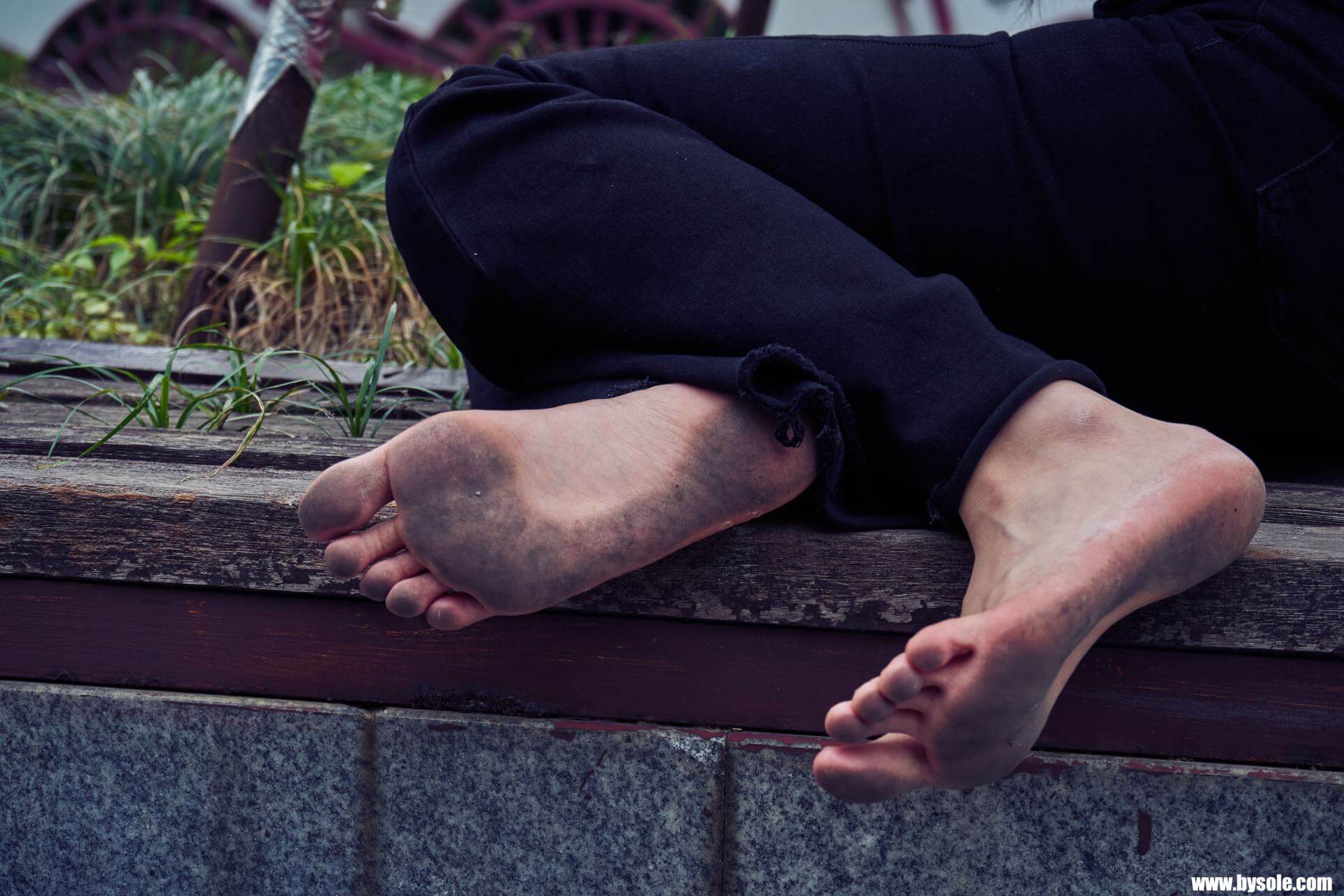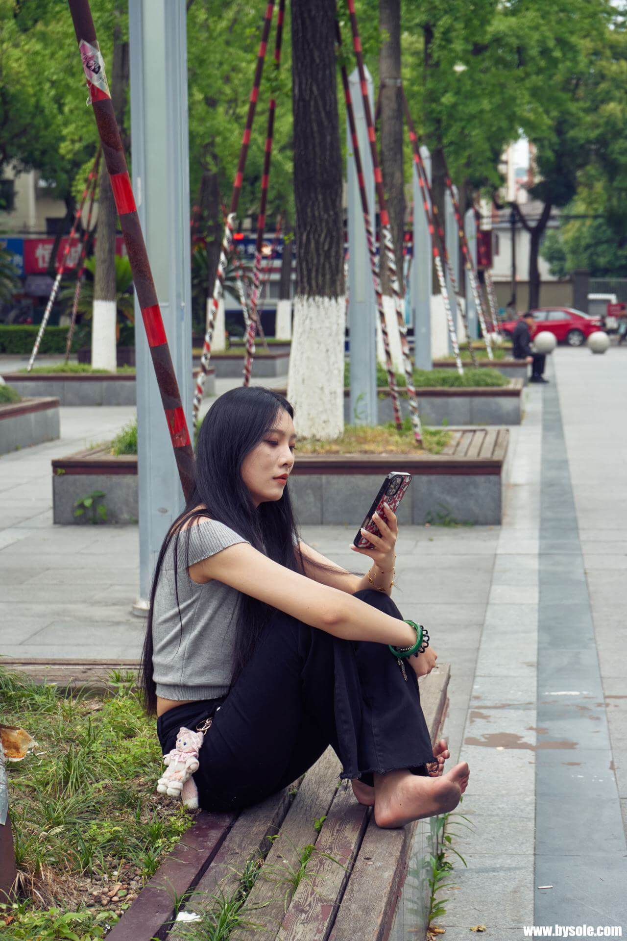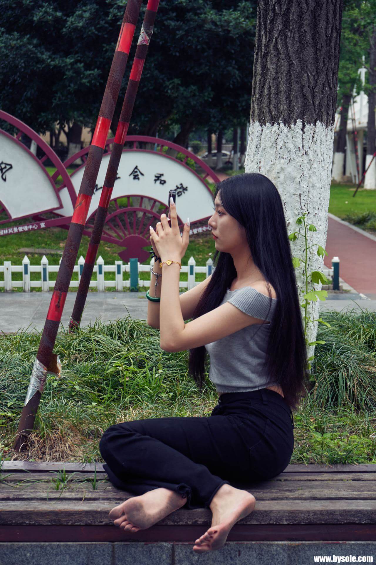 Zuan exercises barefoot by the park. This set includes 264 photos, provided for barefoot enthusiasts to reference and learn from.