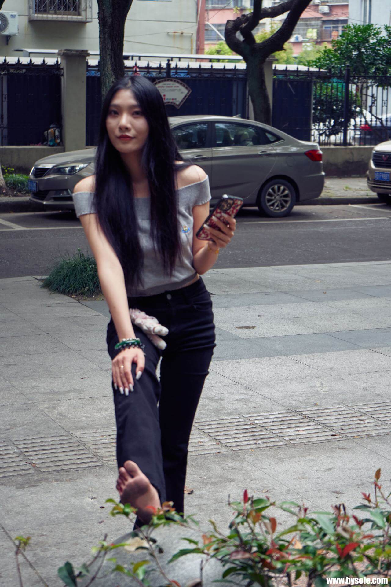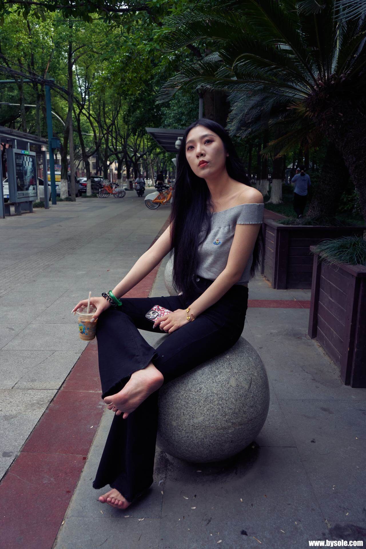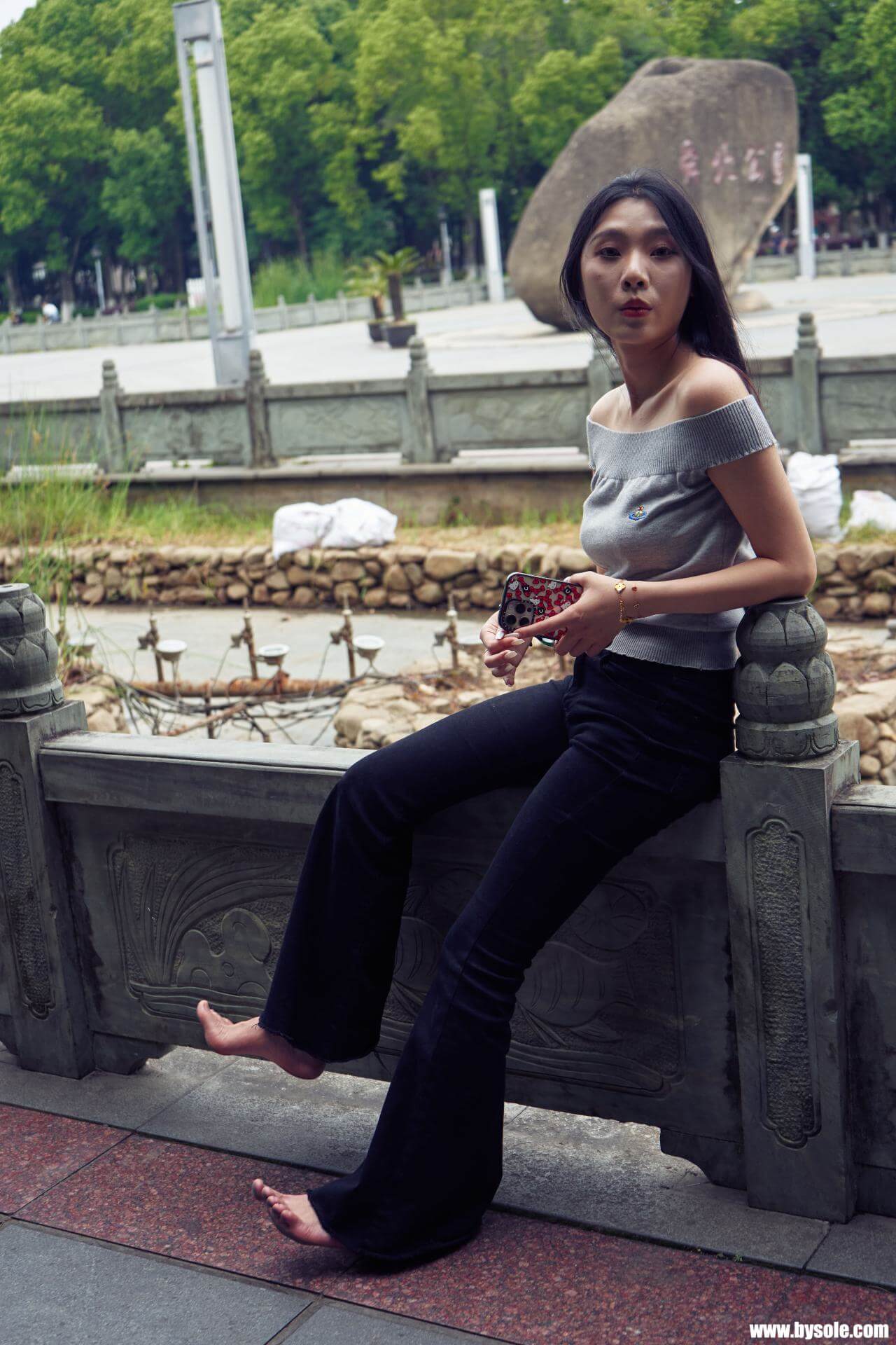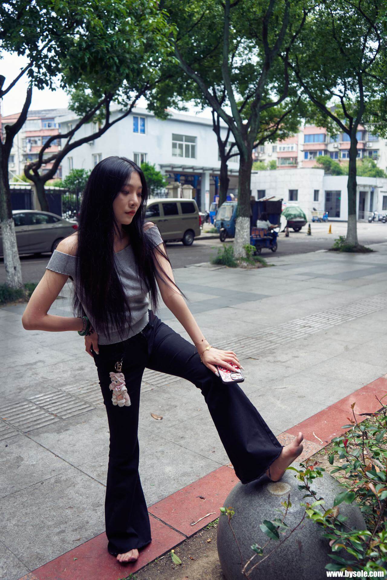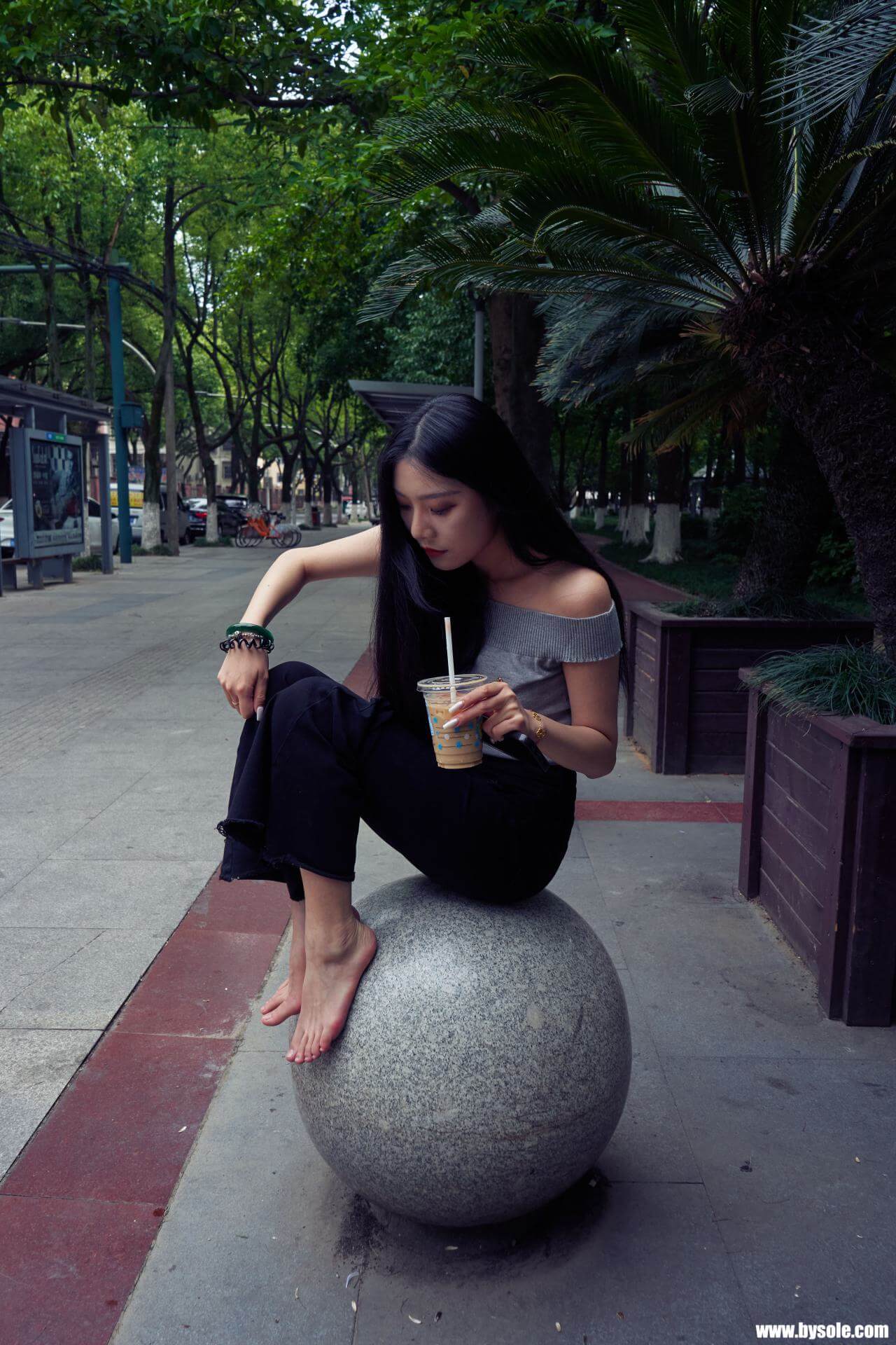 Zuan exercises barefoot by the park. This set includes 264 photos, provided for barefoot enthusiasts to reference and learn from.