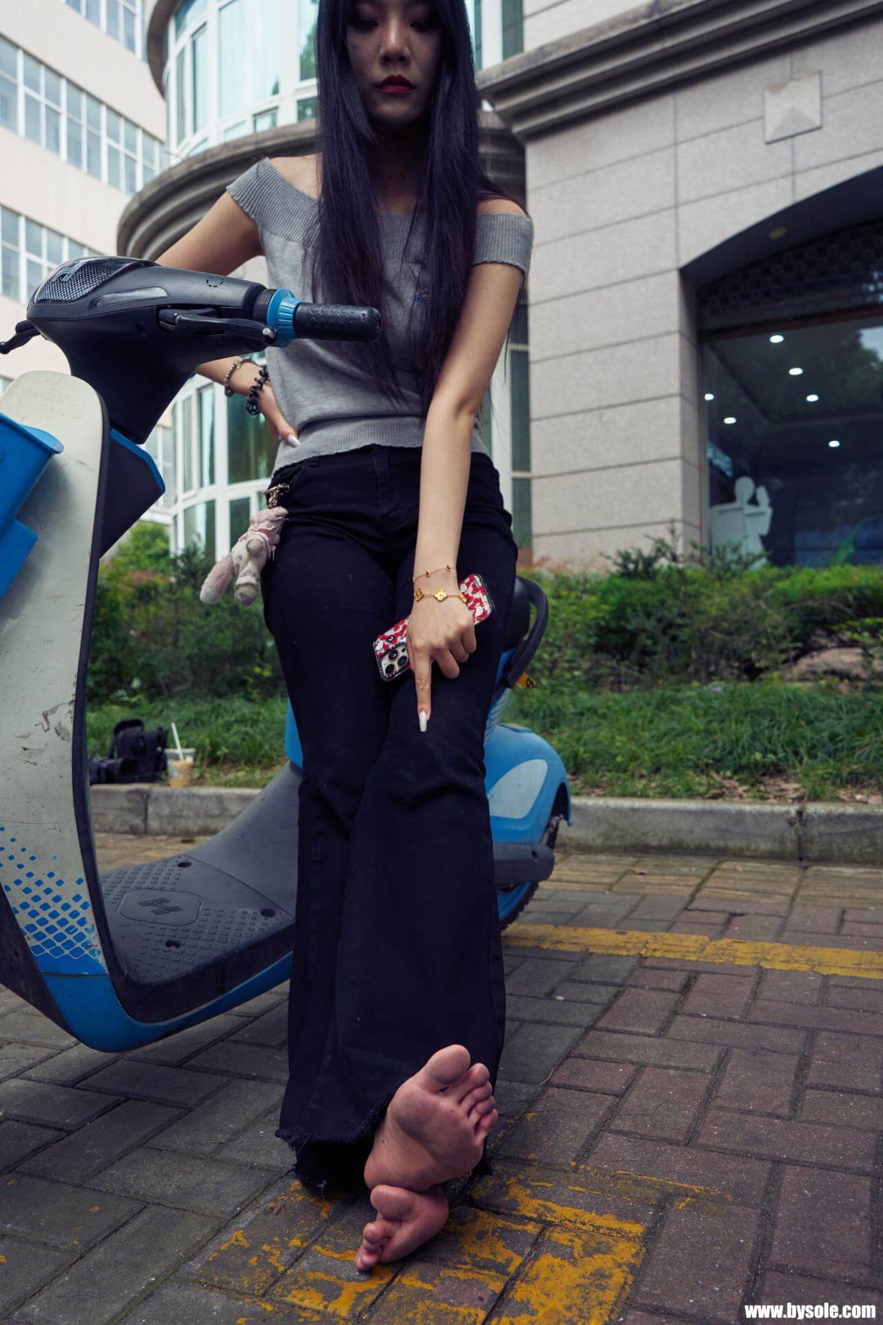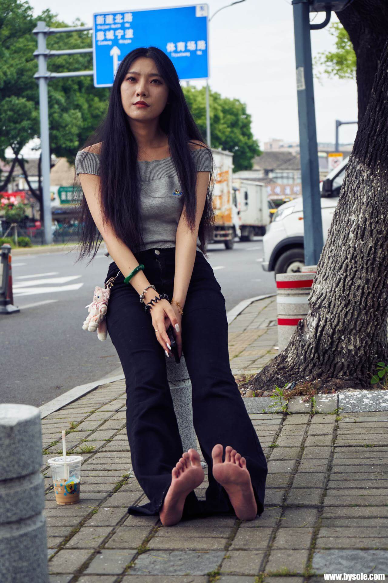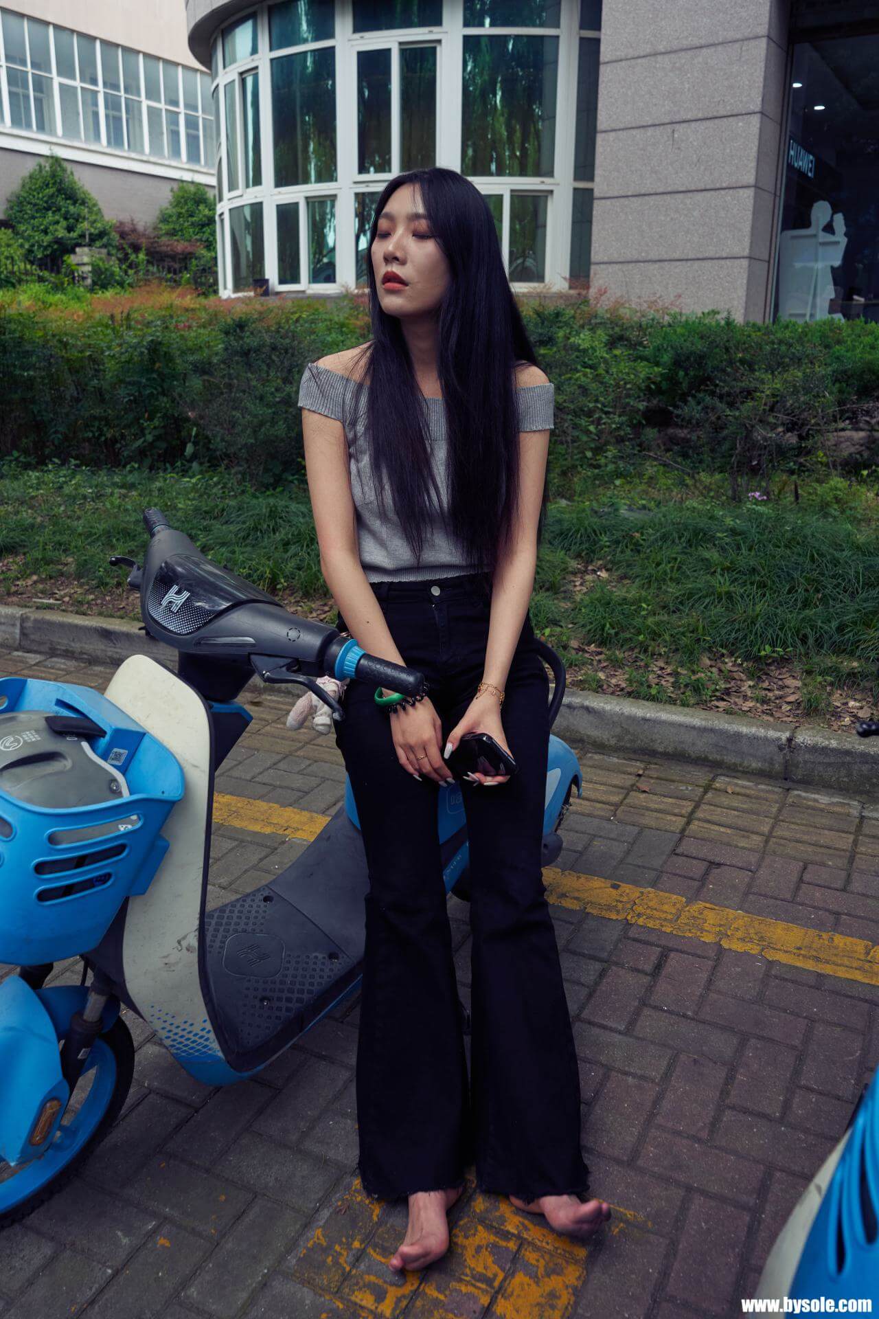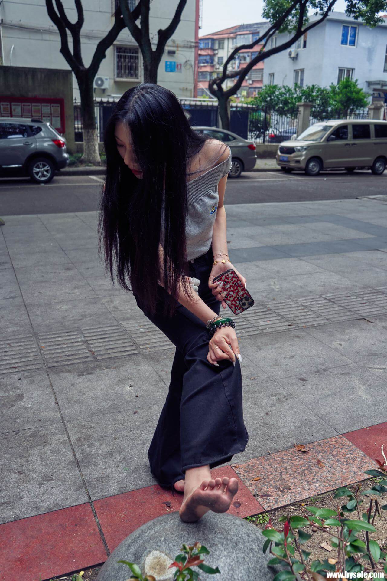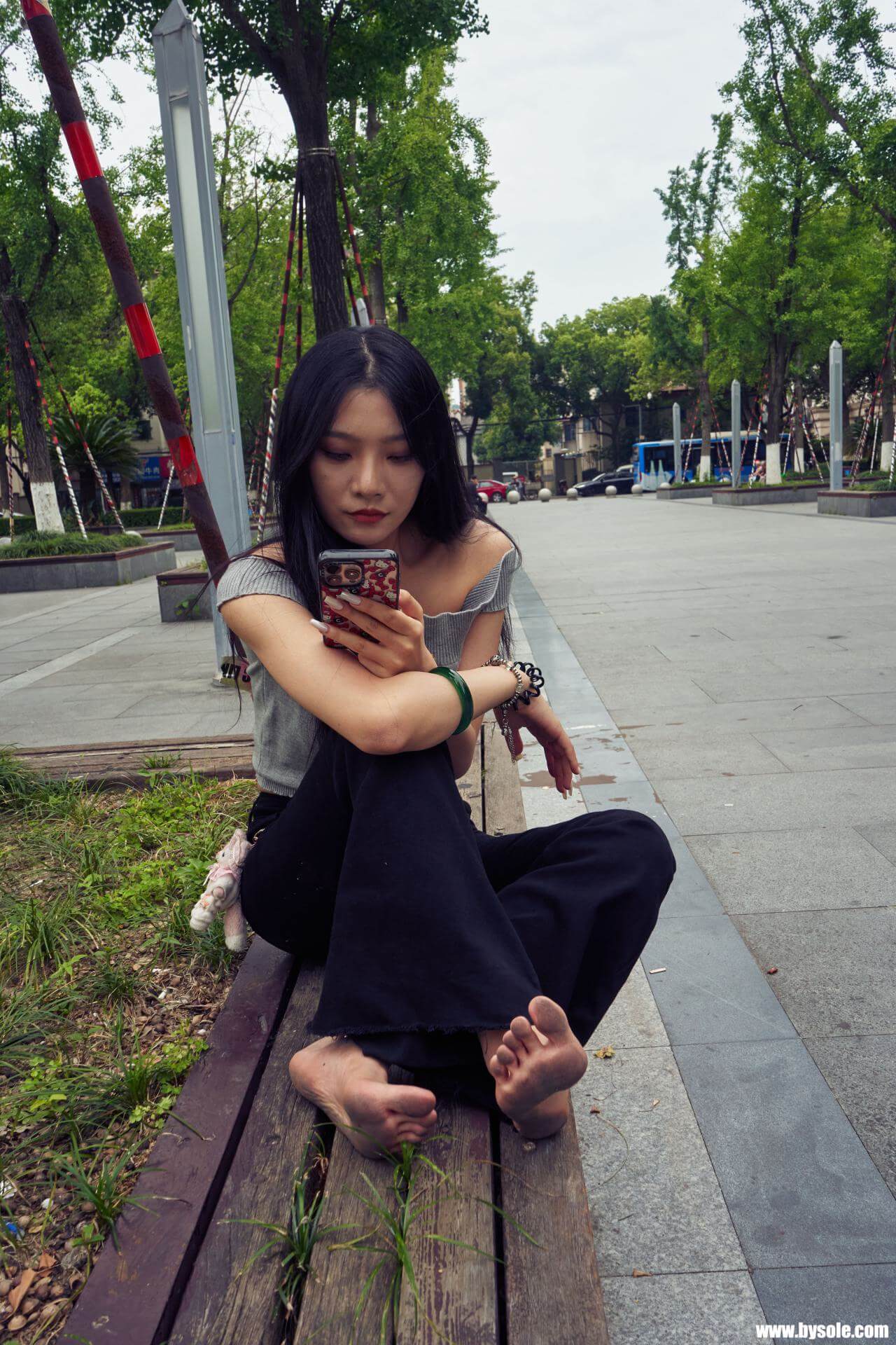 Zuan exercises barefoot by the park. This set includes 264 photos, provided for barefoot enthusiasts to reference and learn from.