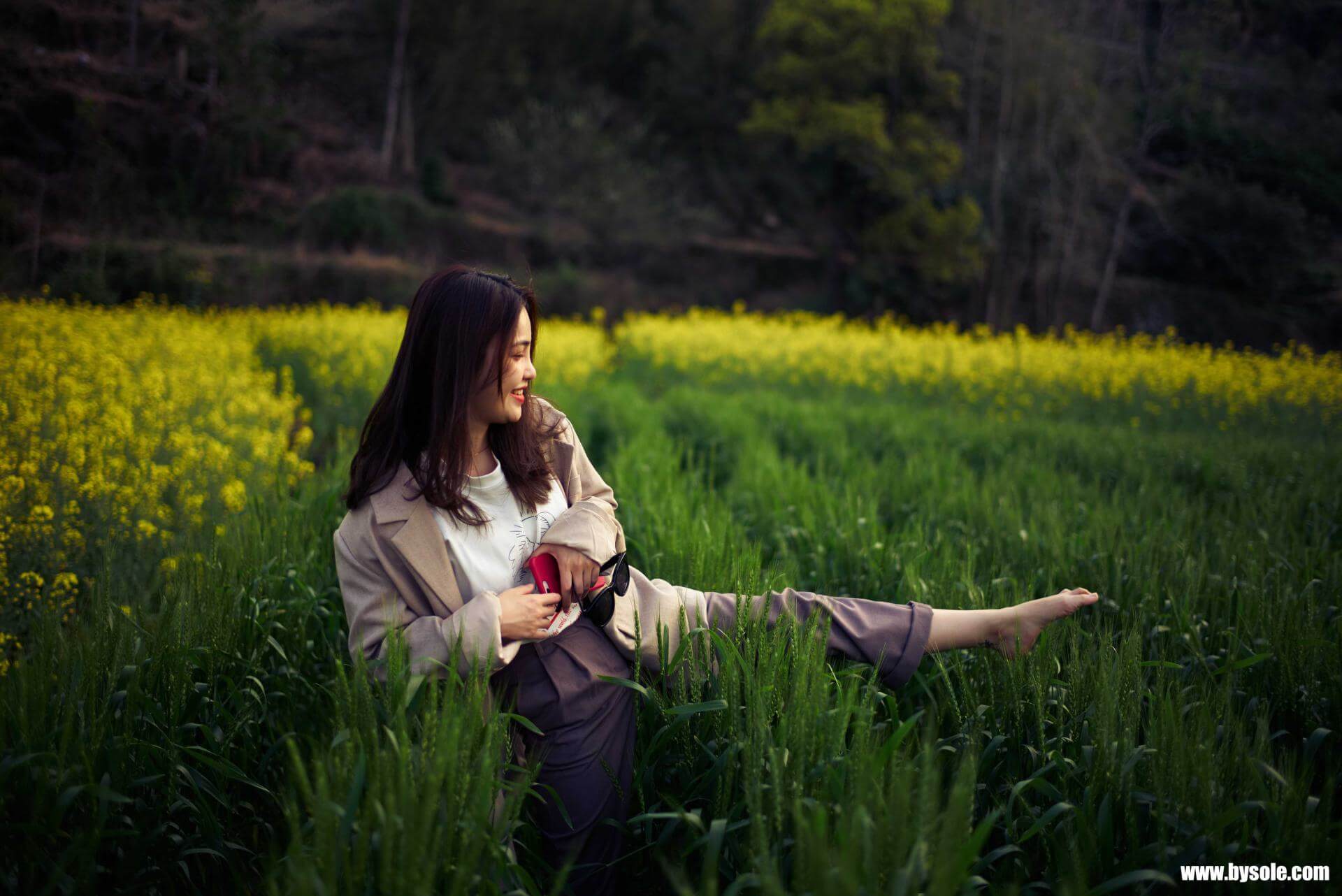 コロナ禍が緩和し、外出して活動できるようになりました。芳芳は待ちきれずに家を出て、ちょうど春の訪れとともに菜の花を鑑賞しました。やはりコロナ禍のため、今は人の多い通りでは裸足になるのは良くないので、風通しの良い山の上に着くと、彼女は待ちきれずに靴を脱ぎ捨て、菜の花畑に足を踏み入れました。合計写真254枚を撮影しました。裸足運動愛好家の皆様の参考になれば幸いです。