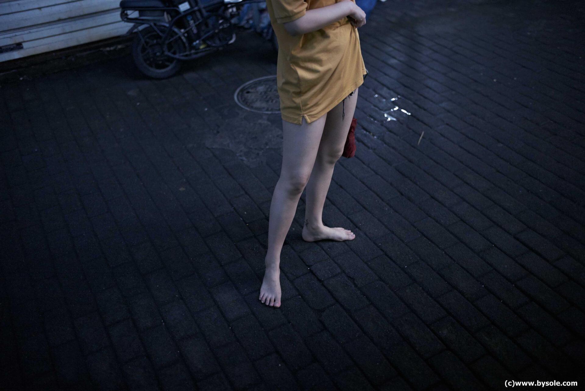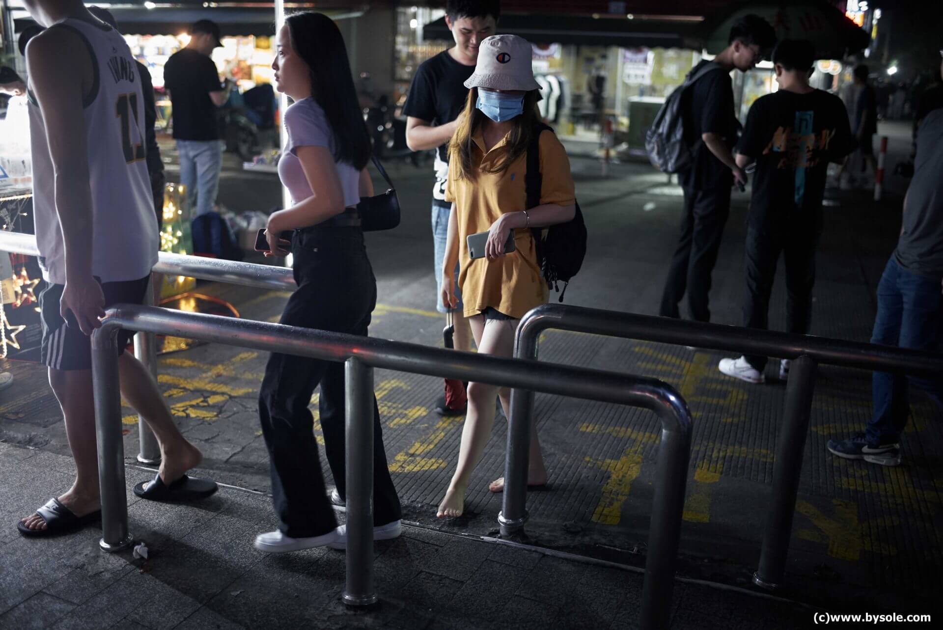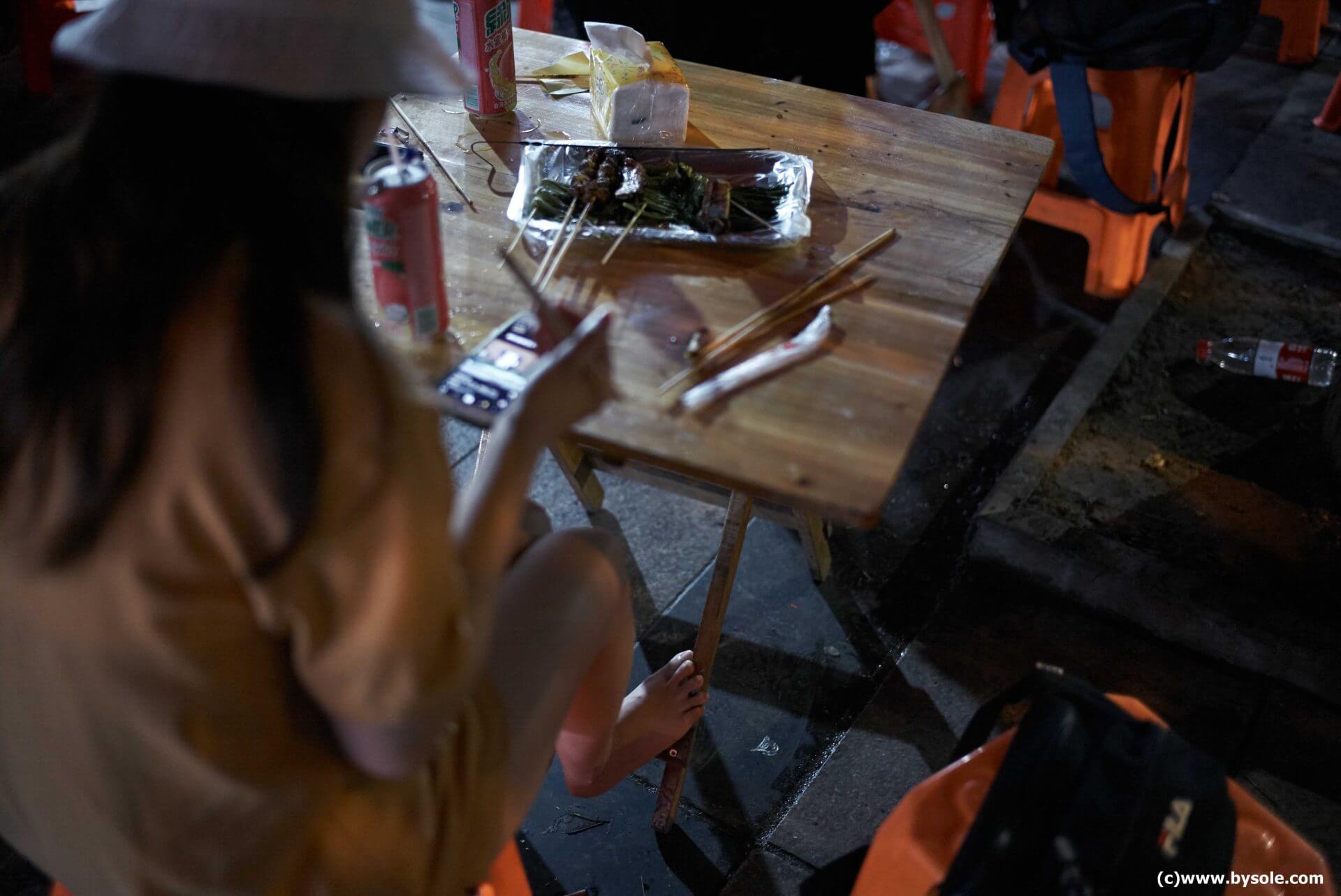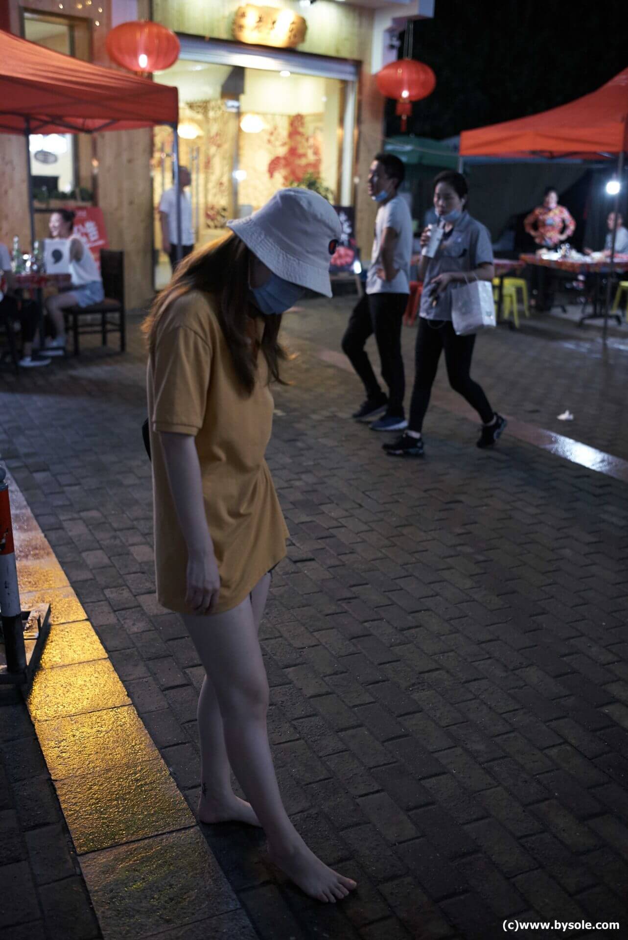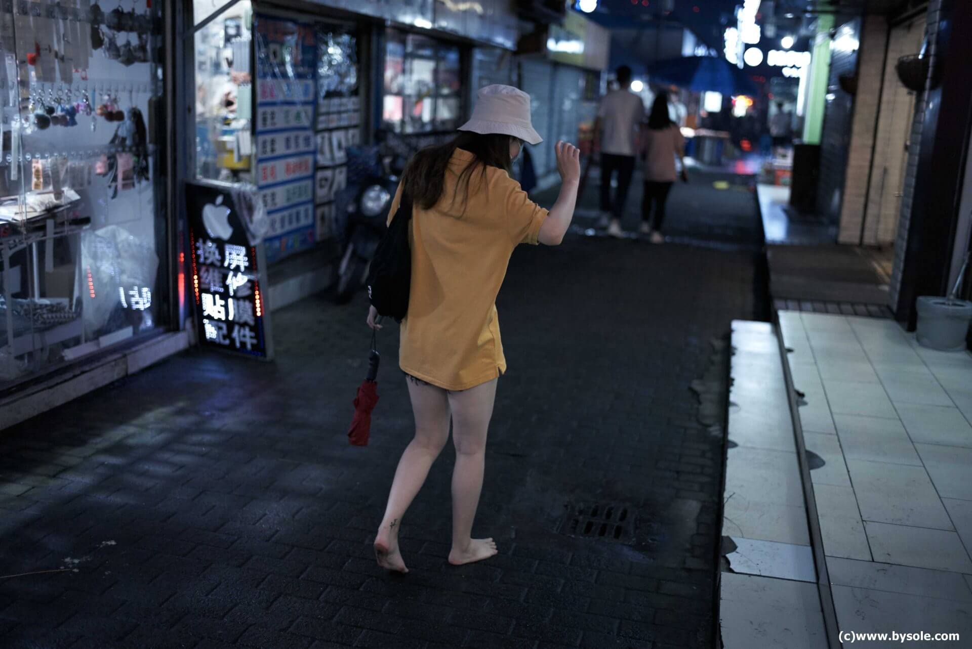 芳芳・裸足で小吃街を散策 (写真)
