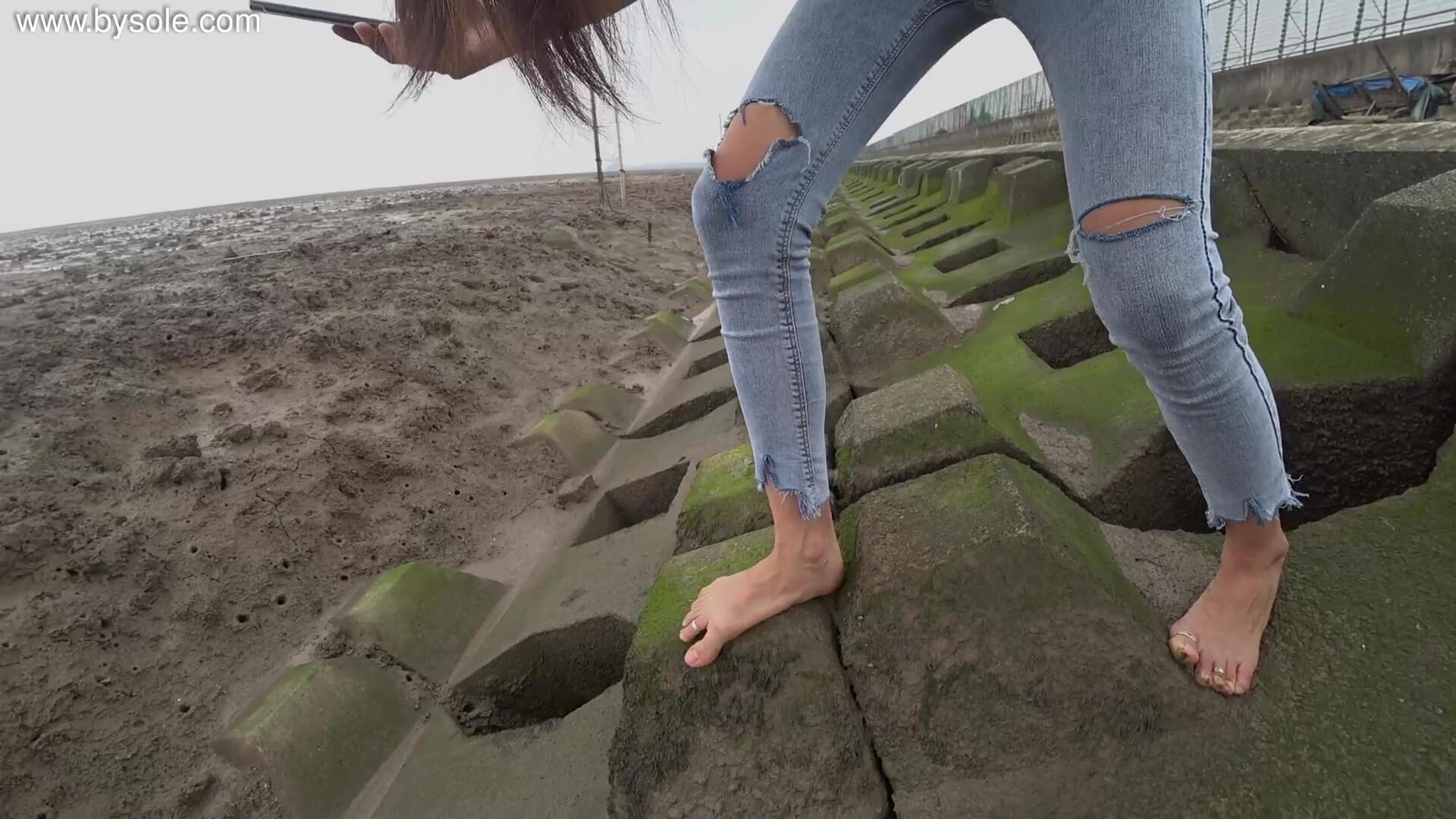 菲菲が裸足で海堤でカニを捕まえ、とても興奮しています。合計動画16分を撮影しました。裸足運動愛好家の皆様の参考になれば幸いです。