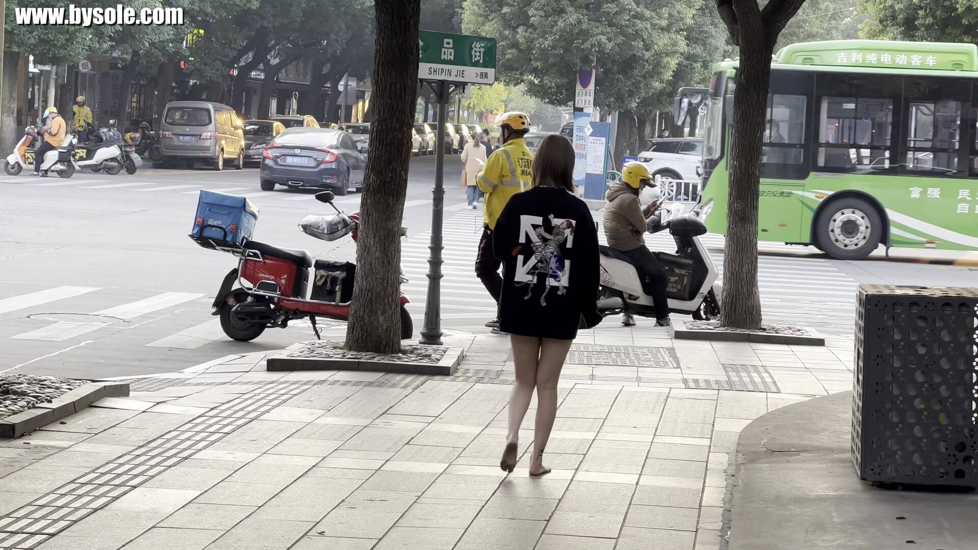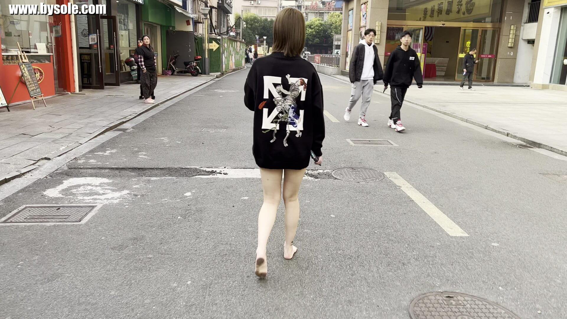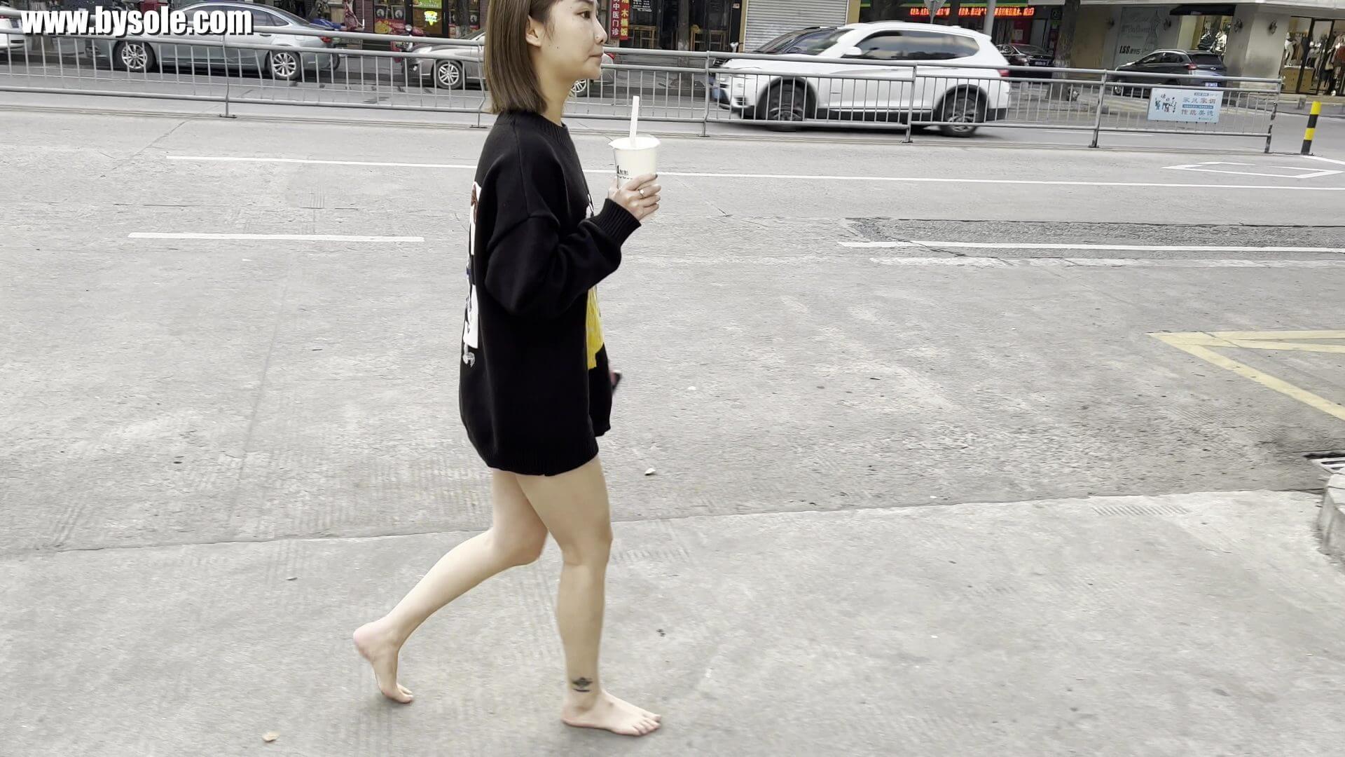 果果は朝起きて、裸足で散歩することに決め、まず朝食を食べに行きました。数日前、果果の両足の親指が人に踏まれて怪我をし、爪が琥珀色に変わりました。合計動画10分を撮影しました。裸足運動愛好家の皆様の参考になれば幸いです。