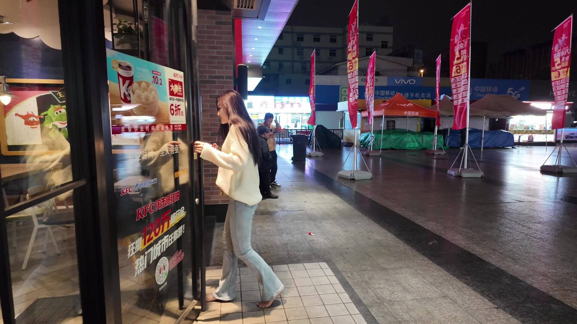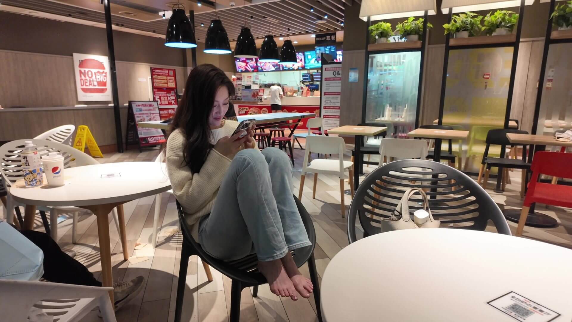 小聡が初めて裸足で外出を試み、スーパーマーケットを散策しました。彼女は少し潔癖症で、裸足での外出を終えた後、ケンタッキーフライドチキンで休憩し、足をきれいに拭きました。合計動画8分を撮影しました。裸足運動愛好家の皆様の参考になれば幸いです。