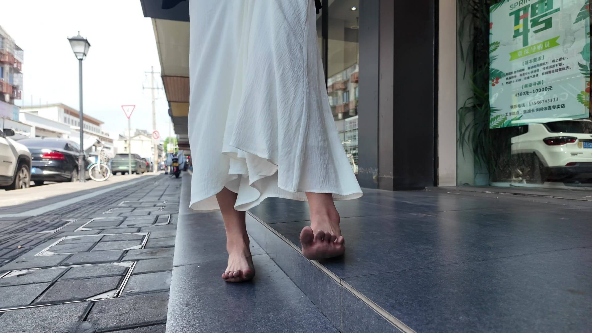 米米は裸足が大好きな妹で、夏休み期間中に連絡をくれ、裸足で街を歩くことに挑戦したいと言いました。彼女は以前からよくこっそり裸足になっていましたが、まだ街中を歩いたことはなく、夏の真昼には地面が熱くて足を踏み入れることができず、最後には歩幅も開かなくなってしまいました。靴は彼女の兄の車の中にあり、仕方なく兄に車で靴を届けてもらうしかありませんでした。これは貴重な裸足体験でした。合計動画69分を撮影しました。裸足運動愛好家の皆様の参考になれば幸いです。