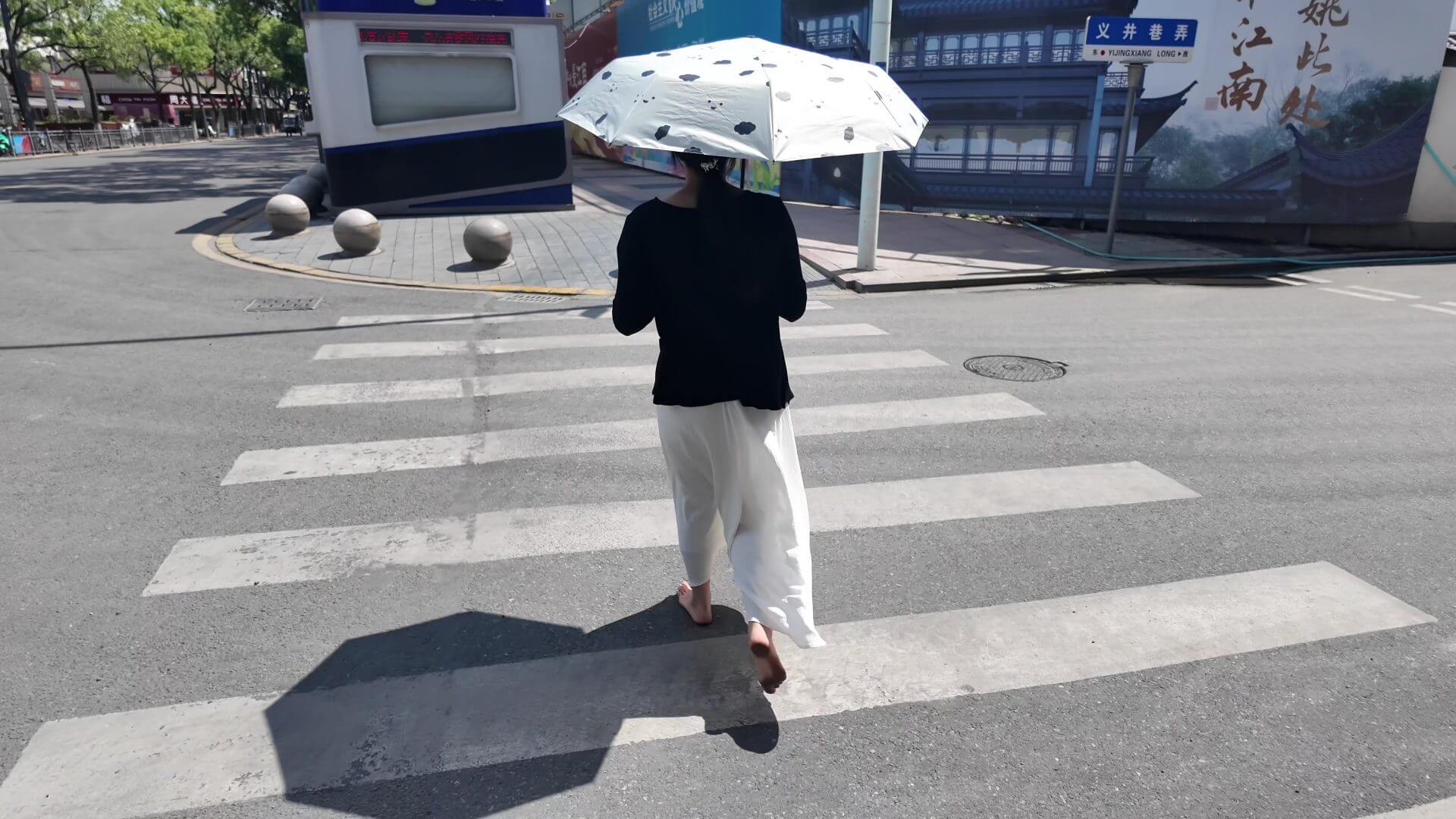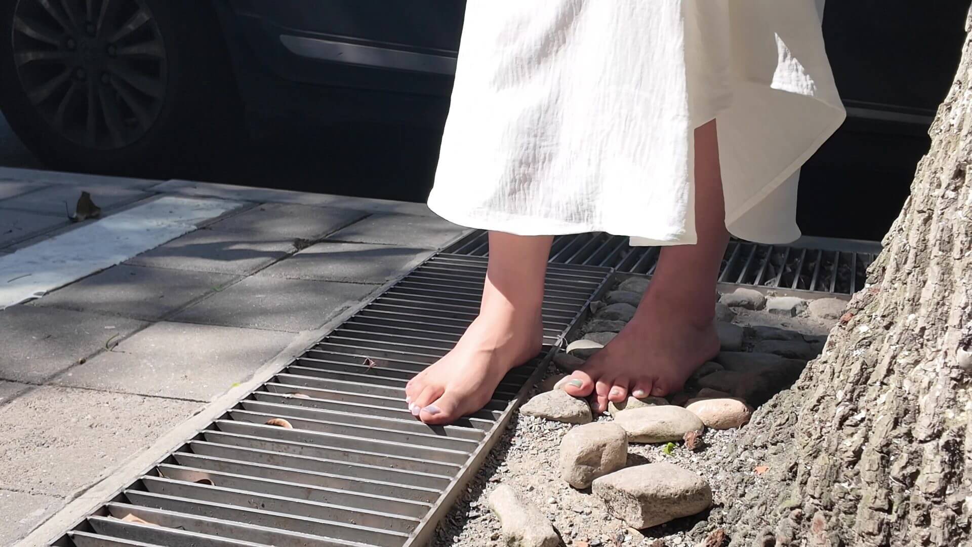 米米・初めての裸足路上散策