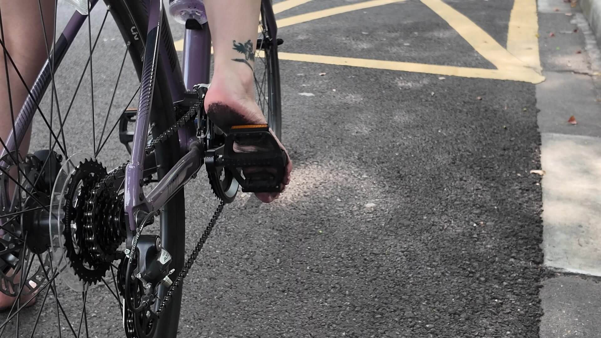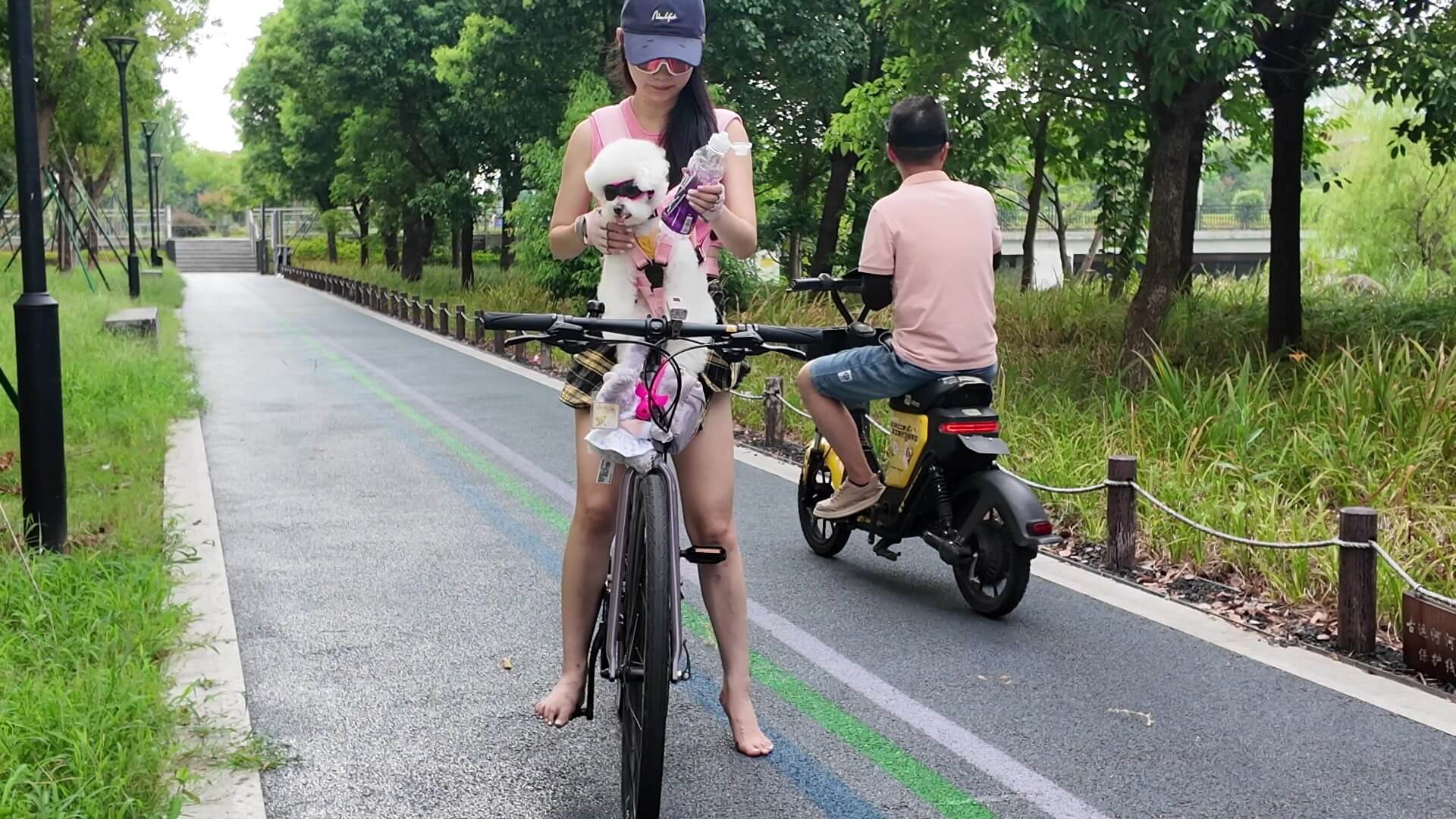 果果が自分の犬を連れて、裸足で街中をサイクリング。合計動画52分を撮影しました。裸足運動愛好家の皆様の参考になれば幸いです。