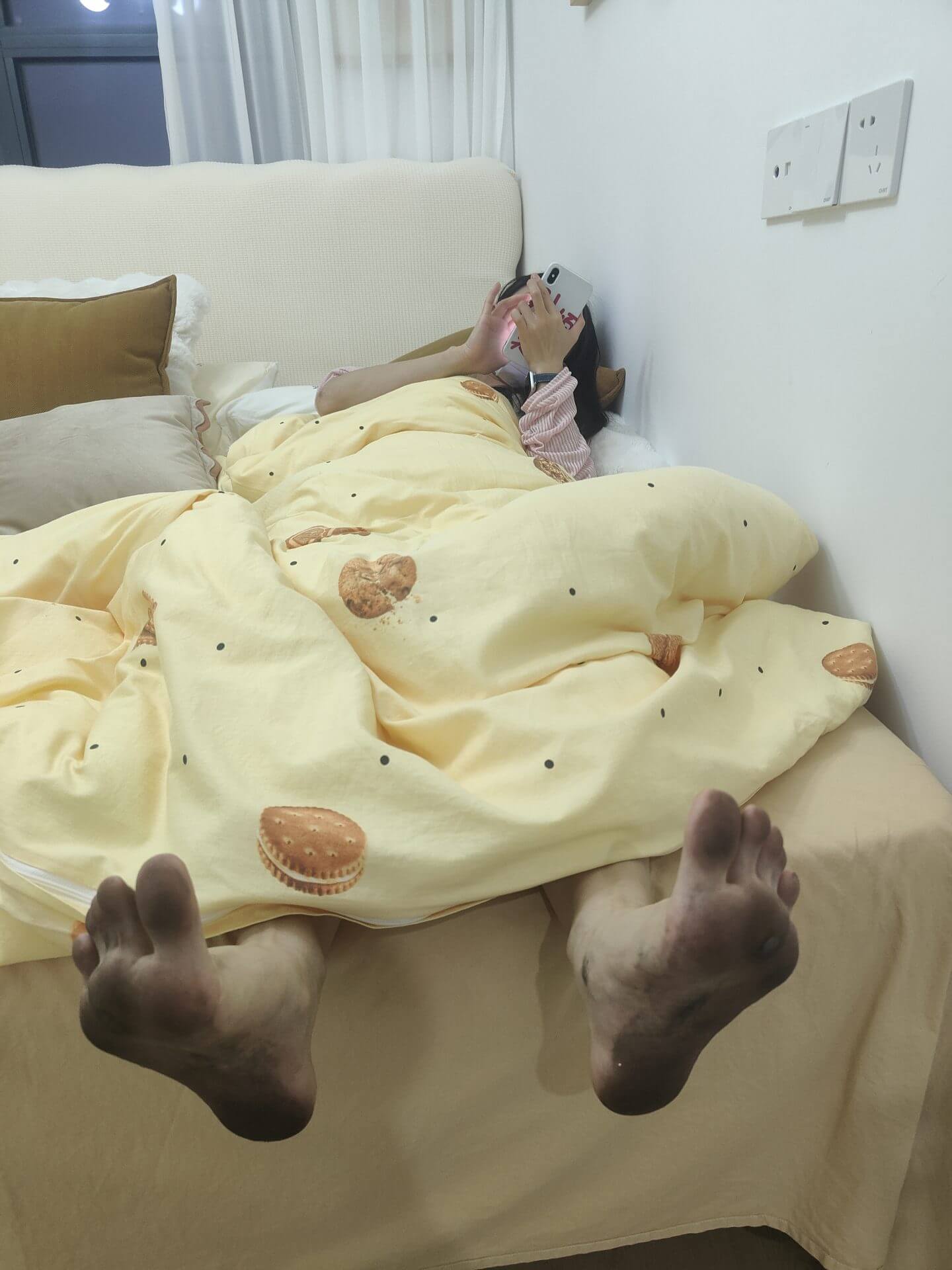 珊珊が裸足で家に戻り、家で休憩し、ネイルを塗り、出前を食べる。合計動画66分を撮影しました。裸足運動愛好家の皆様の参考になれば幸いです。