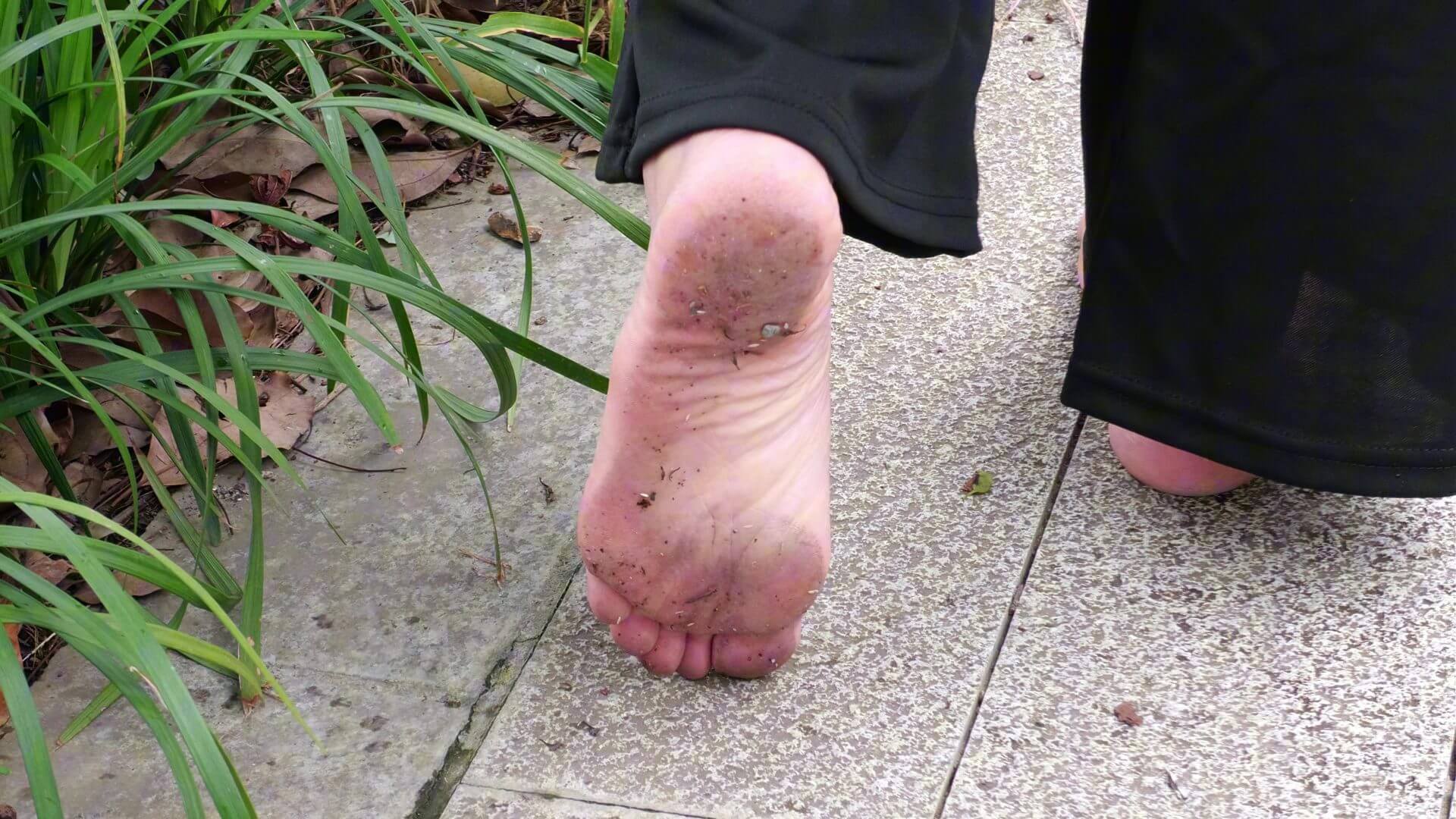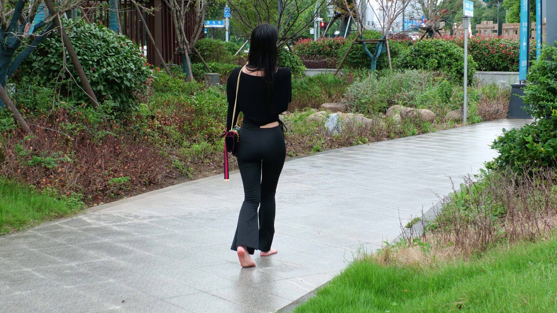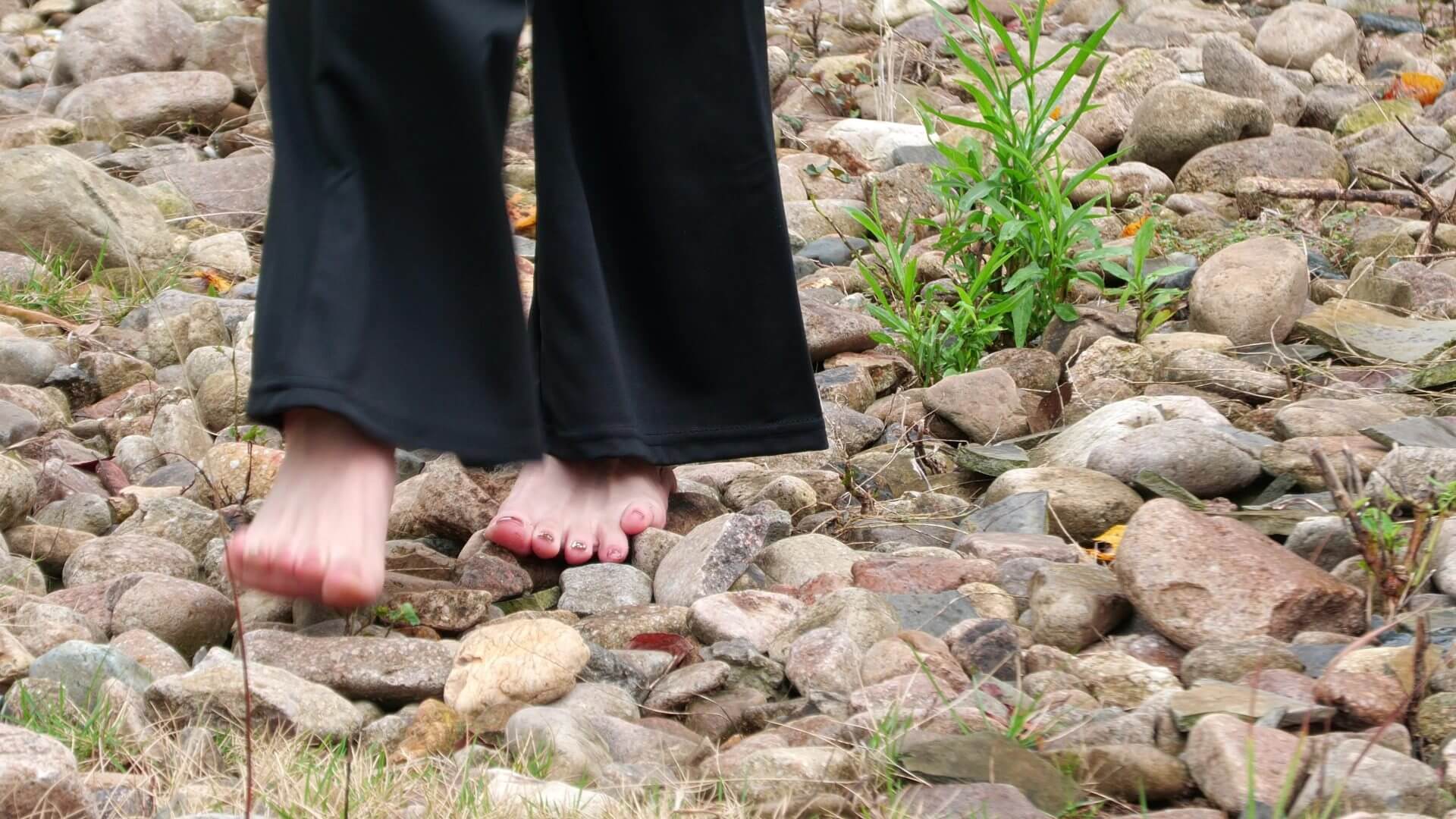 綿綿の雨天時の裸足での街歩き。公園まで歩き、岩だらけの窪地に入り、とても楽しそうに遊んでいました。合計動画10分を撮影しました。裸足運動愛好家の皆様の参考になれば幸いです。