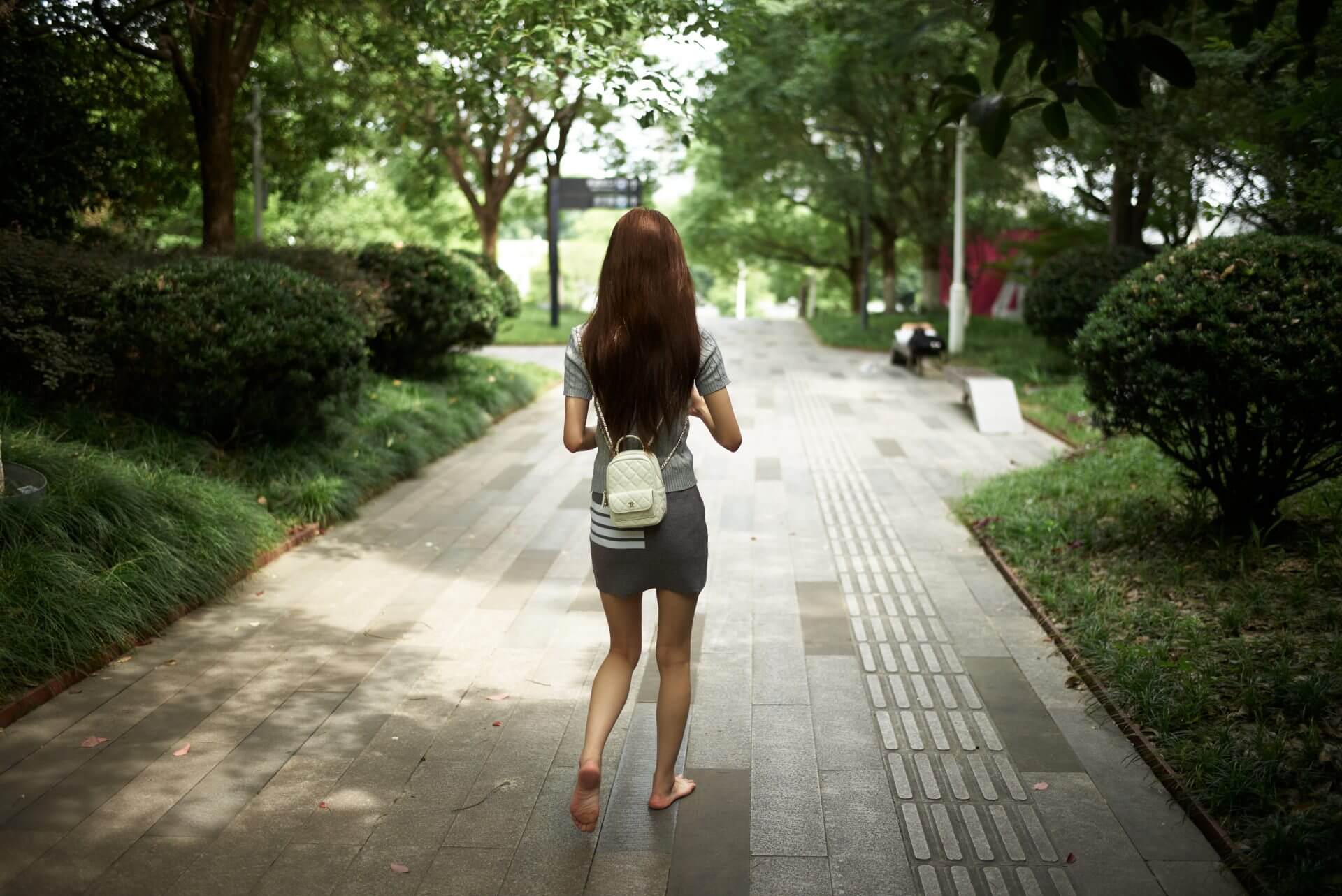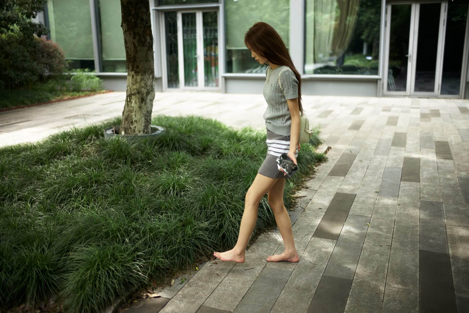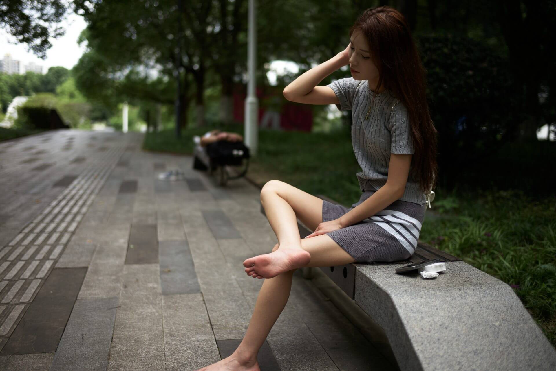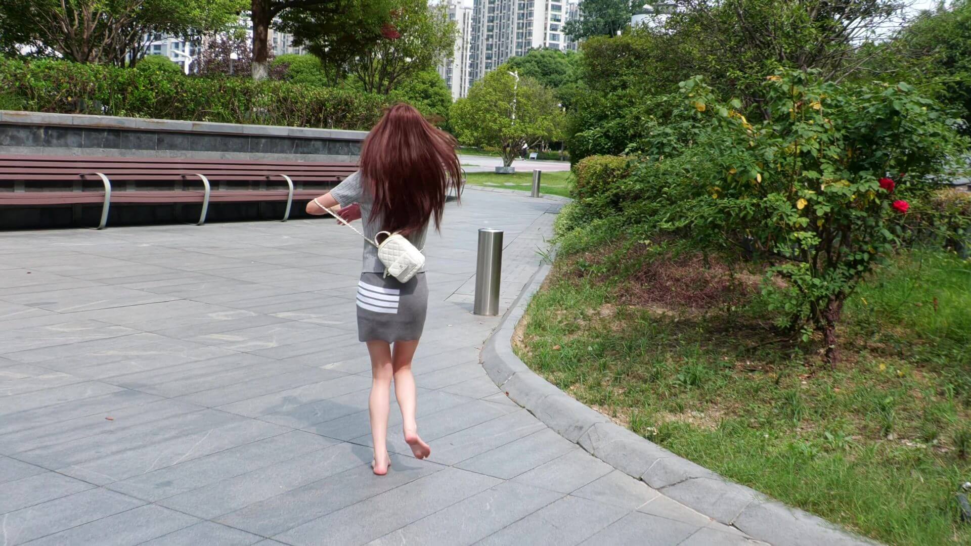 下車後、私たちは一緒に杭州東駅を出ました。私は彼女に東広場で裸足を試してみることを提案しました。彼女は少し躊躇しましたが、最終的にうなずいて承諾しました。しかし残念なことに、今は真夏の盛りで、広場の地面は太陽に照りつけられて熱くなっていました。初めて裸足を試みた小優はすぐに挑戦を感じました:彼女は歩いたり止まったりし、時折日陰に走って暑さを避け、顔には直接苦痛の表情が浮かびました。間もなく、彼女の足の裏は熱くて痛みを感じ、この体験を早めに終わらざるを得ませんでした。