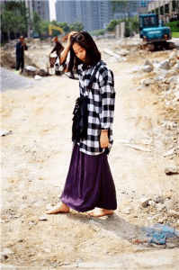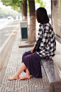 写真をいくつか撮りました。前方にバス停があり、そこにはベンチがあります。娜娜は歩いて行って座り、足を休めました。彼女は足をスカートの外に出し、自然に地面に置き、風が足の甲を吹き抜ける感覚を楽しんでいました。この時、彼女の足の裏はすでに黒くなり、指の間にもほこりがついていました。白い肌とほこりの対比に、私は思わず感嘆しました:彼女の写真を撮ることができて本当に素晴らしい!