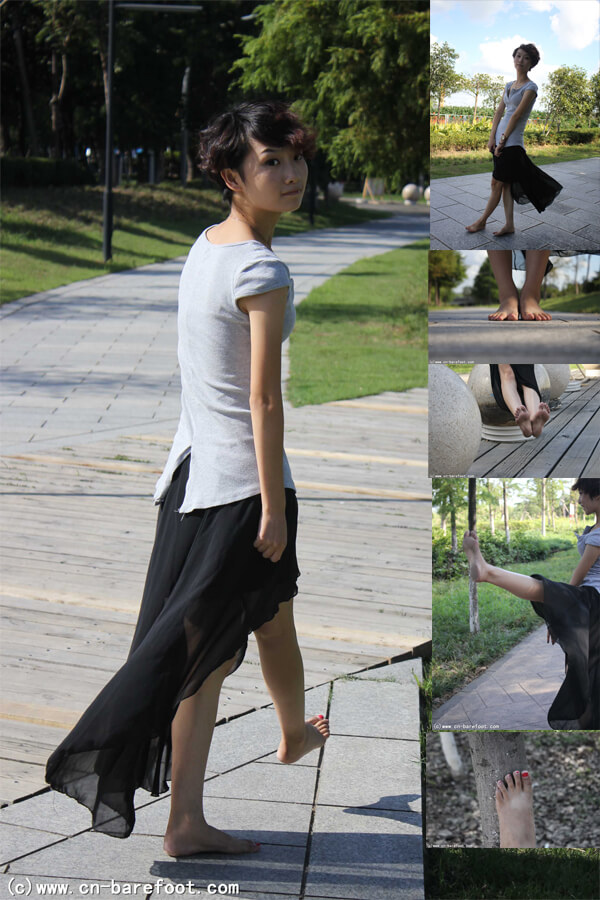 果果は公園で裸足で散歩し、芝生の柔らかさと大地の温かみを感じていました。歩いているうちに、彼女は突然楽しげに踊り始め、つま先で芝生の上を軽やかに旋回し、まるで自然と一体になったかのようでした。