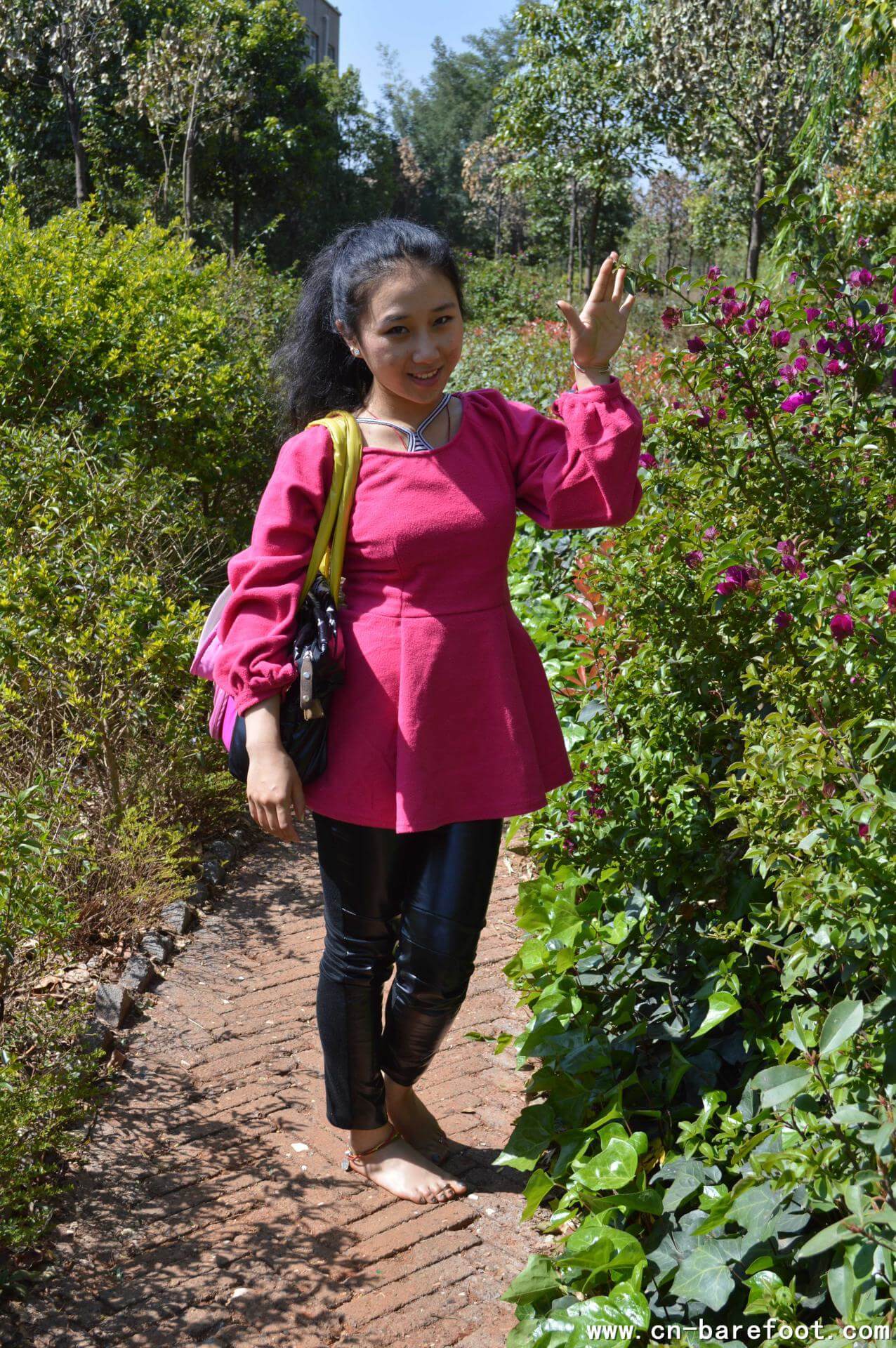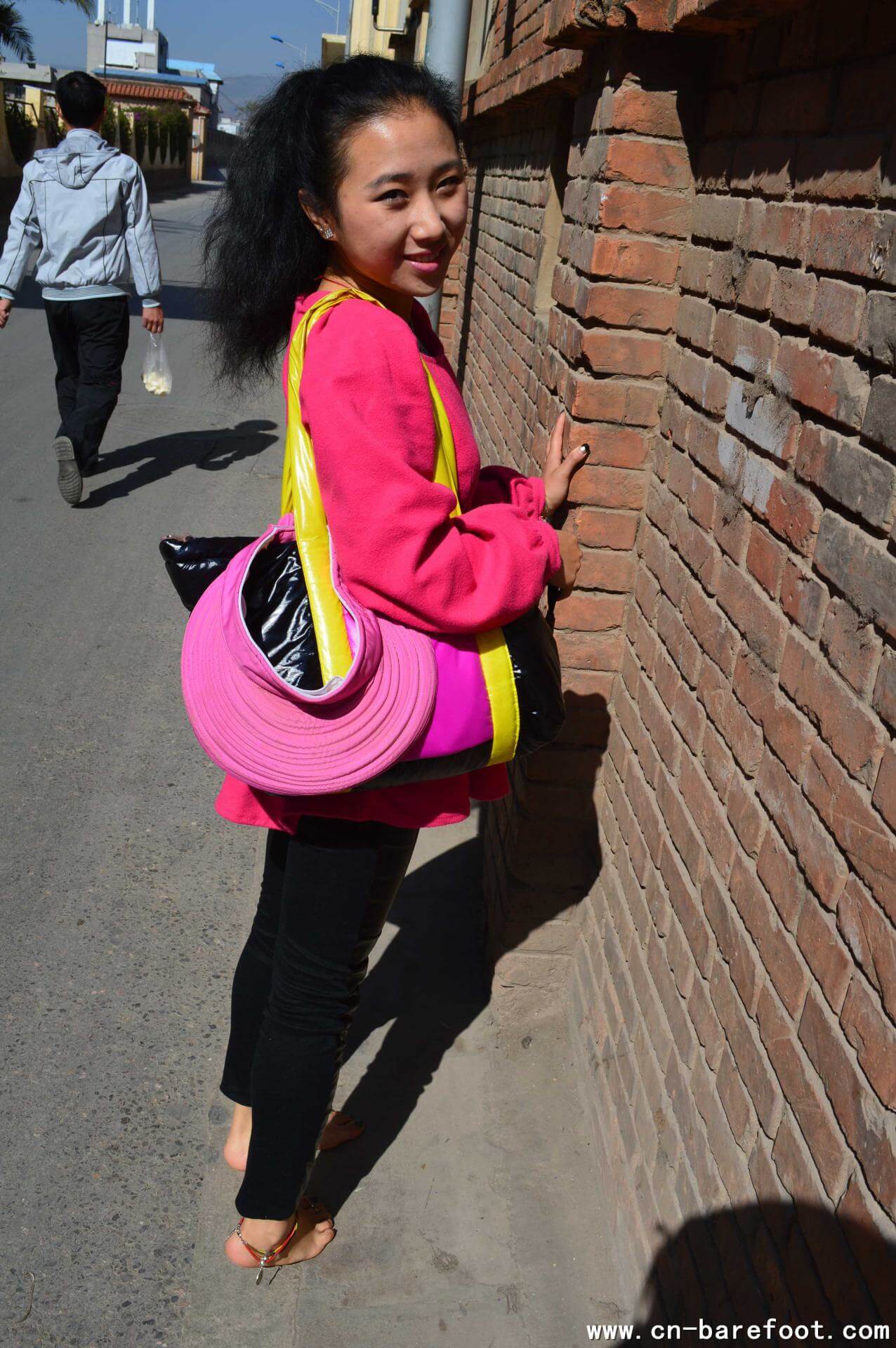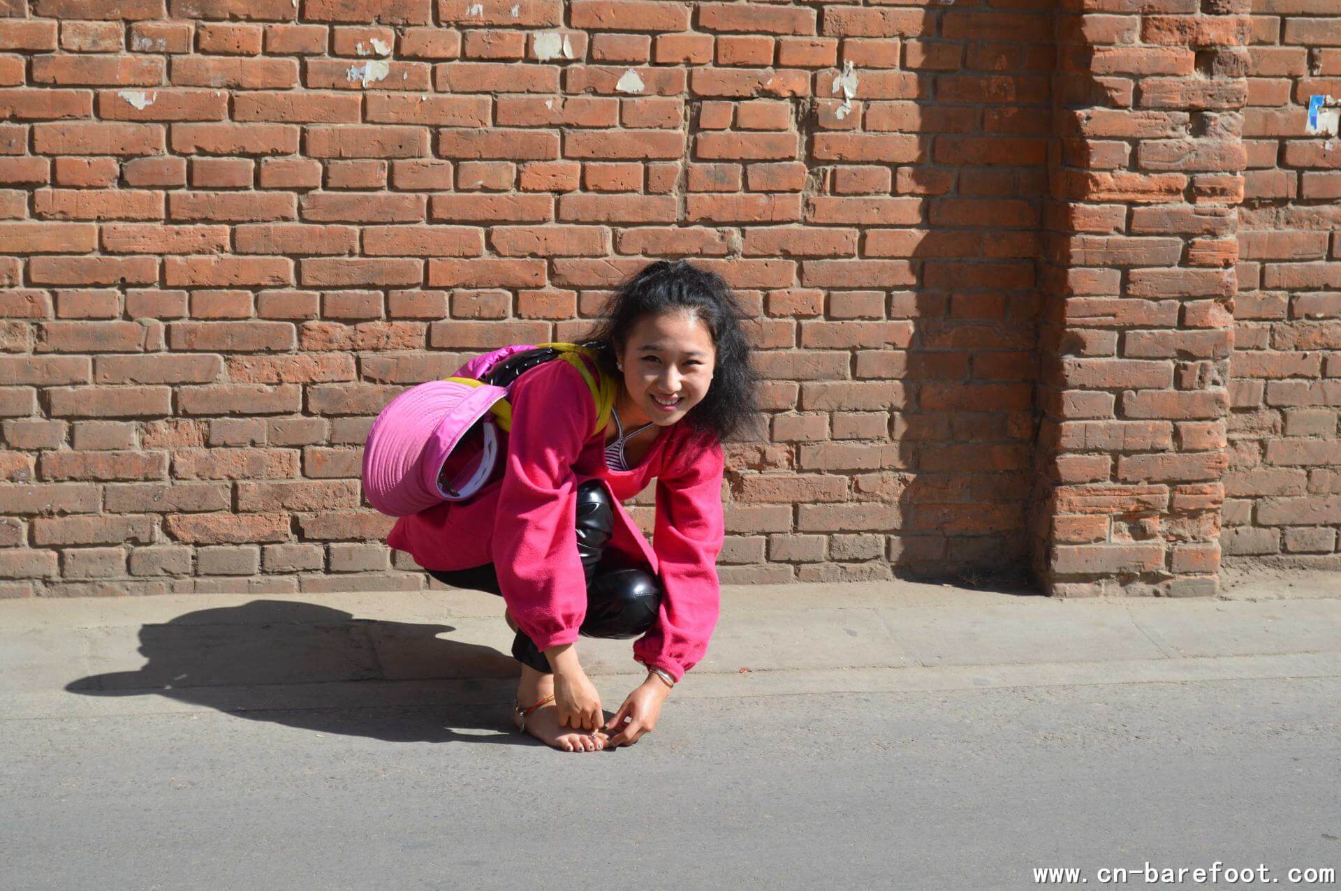 悠悠は街中で裸足になり、ビーフンと卵の上を踏みしめ、食べ物と足の裏の独特な触感を感じ、新しくて面白い裸足の冒険を体験しました。